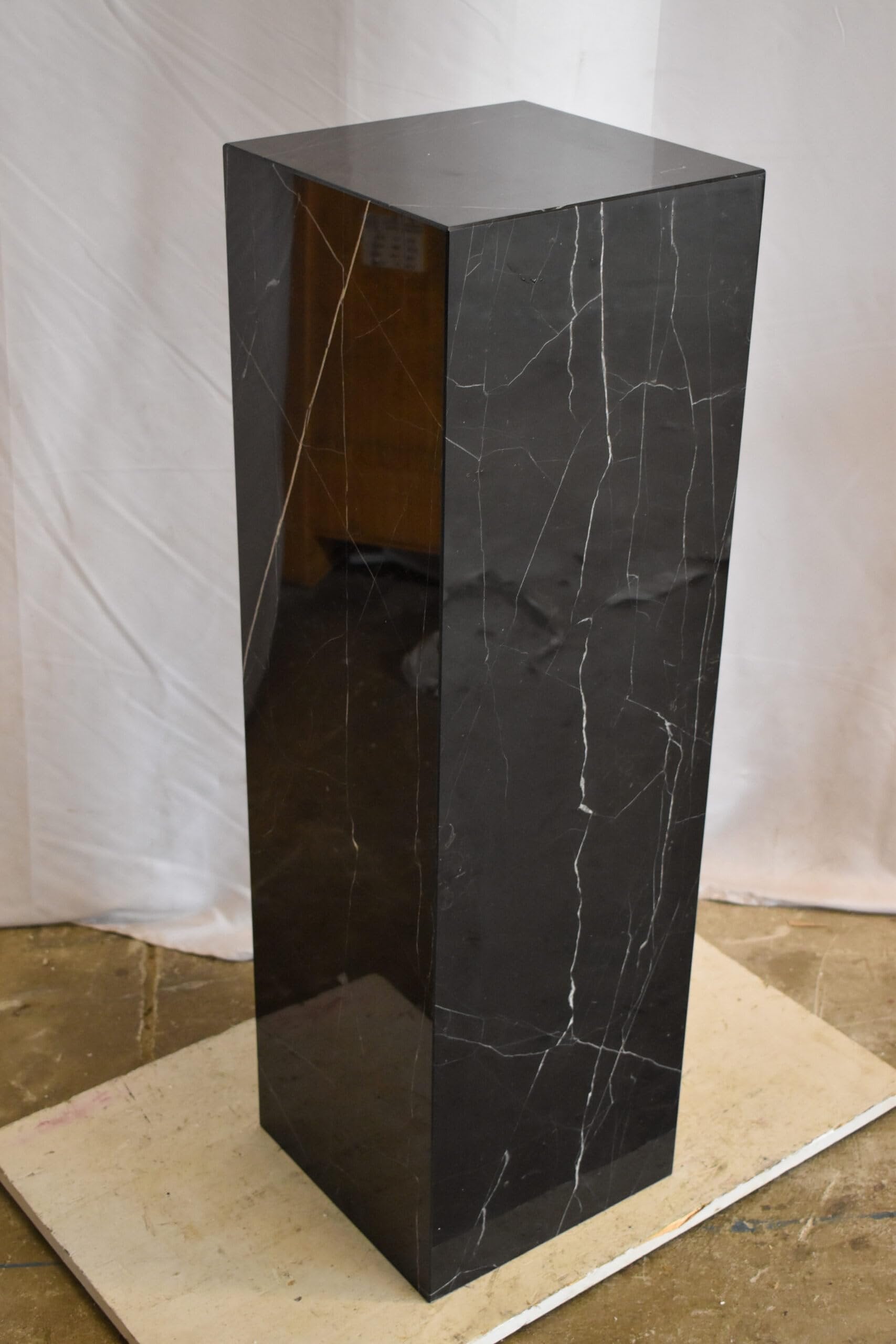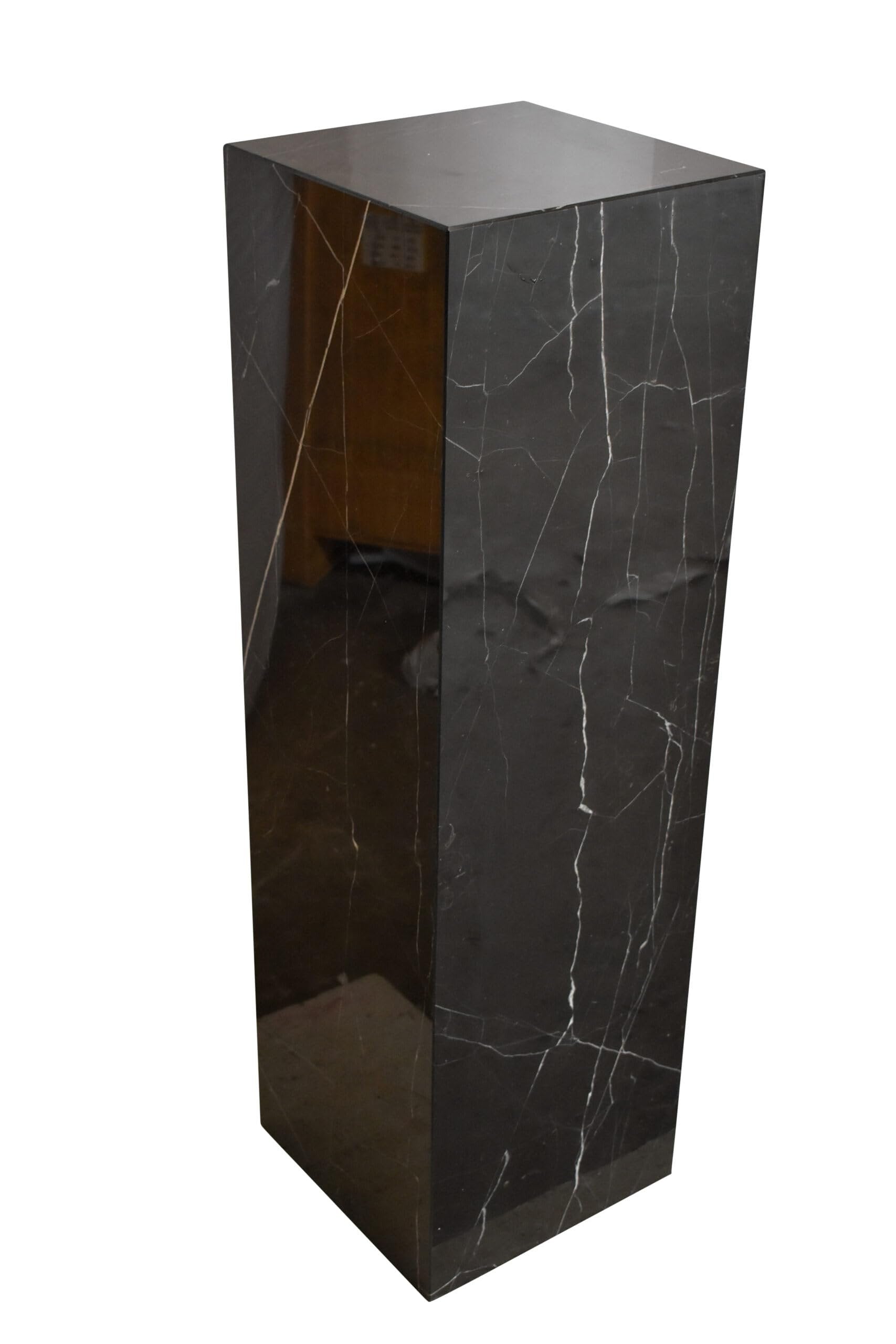 Introducing the sleek and modern look black and white marble stone pedestal - the perfect way to elevate your artwork, memorabilia, and more. Crafted from polished marble stone, this display pedestal is built for maximum durability and versatility. Whether you are looking for a pedestal for retail stores, museums, galleries, or home use, our pedestal will fit all your needs. Size: 12"L x 12"W x 39"H. Weight is: 105Lb