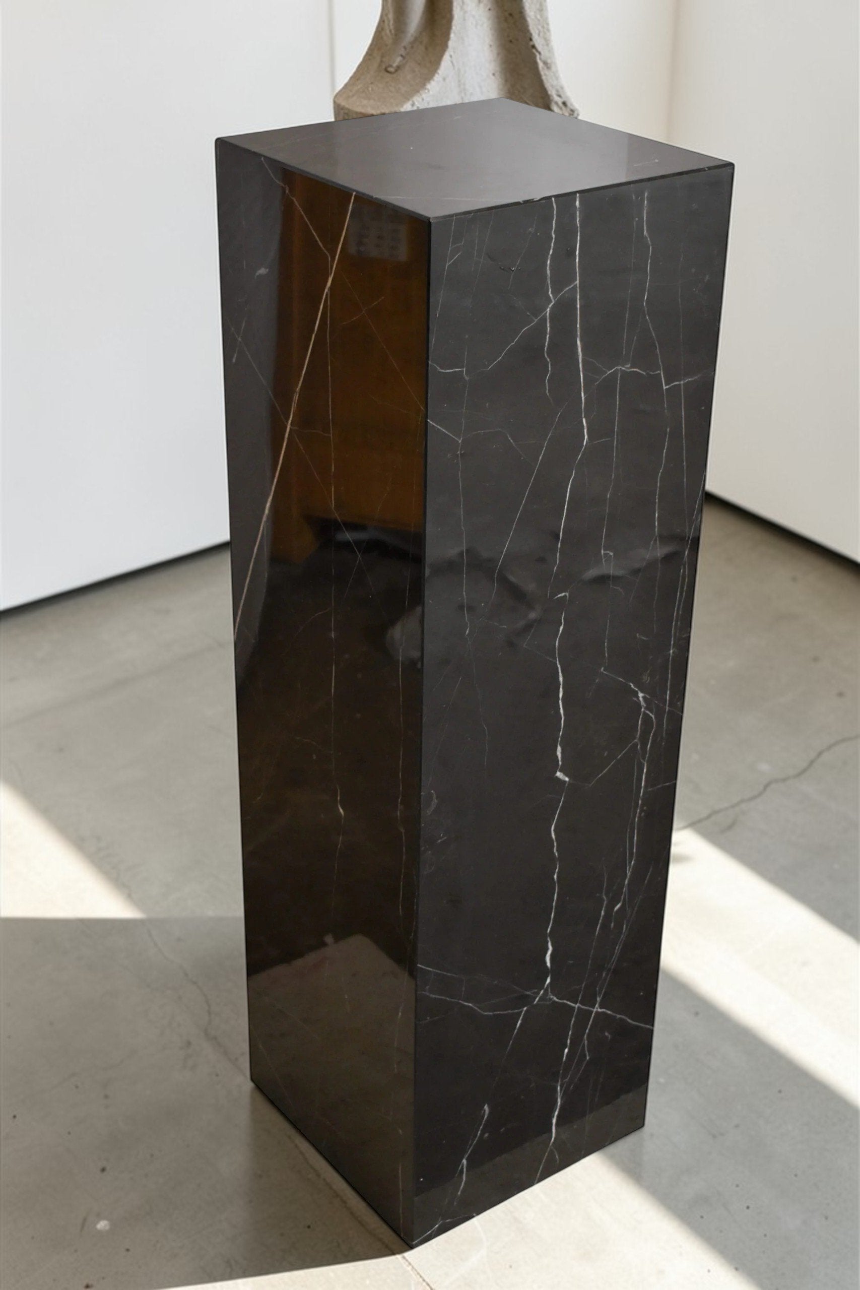 Pedestal For Artwork, Modern Black and White Marble Stone 12" x 12" x 39"H