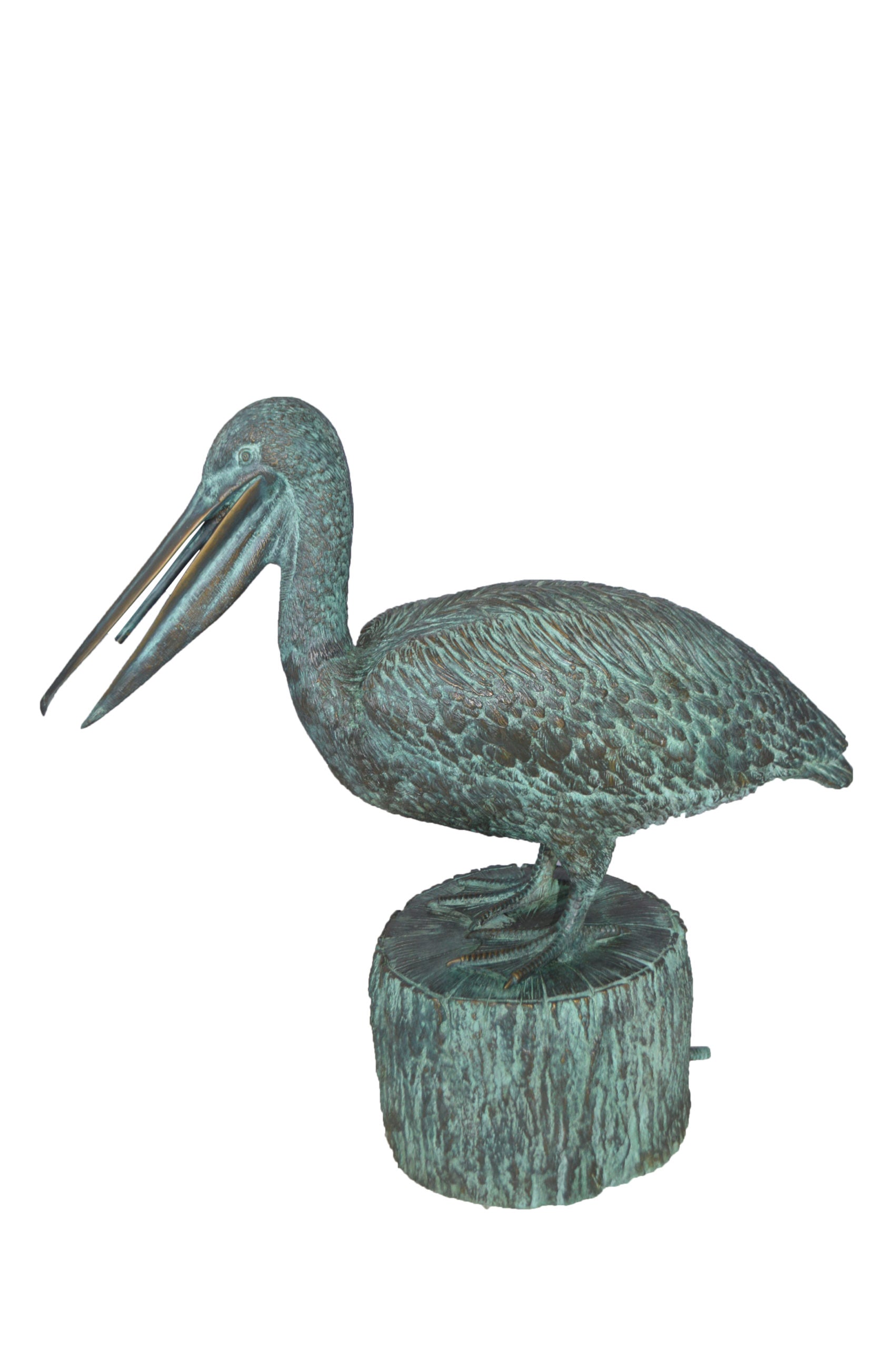 Pelican on a Tree Stump fountain bronze statue - Size: 30"L x 16"W x 30"H.