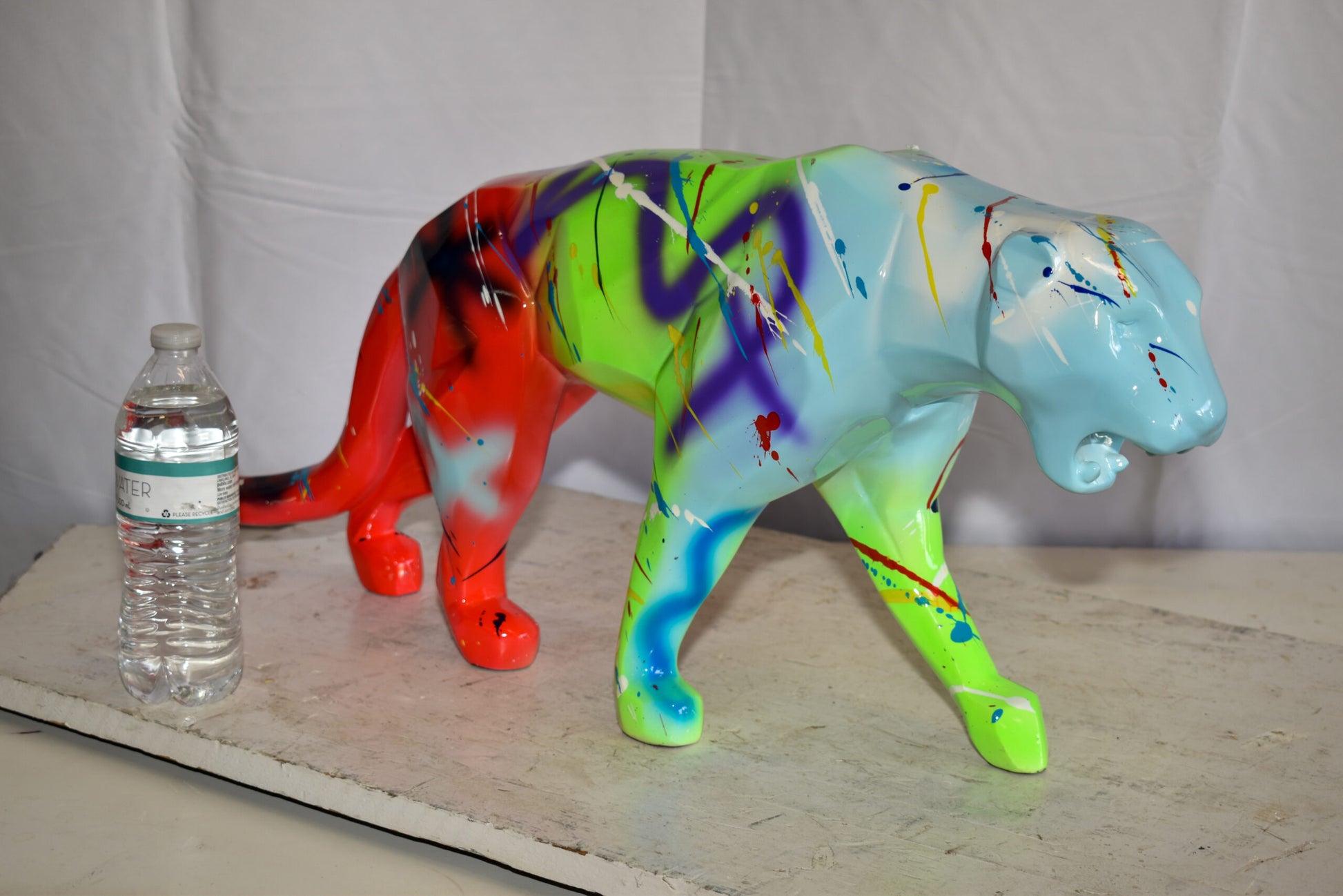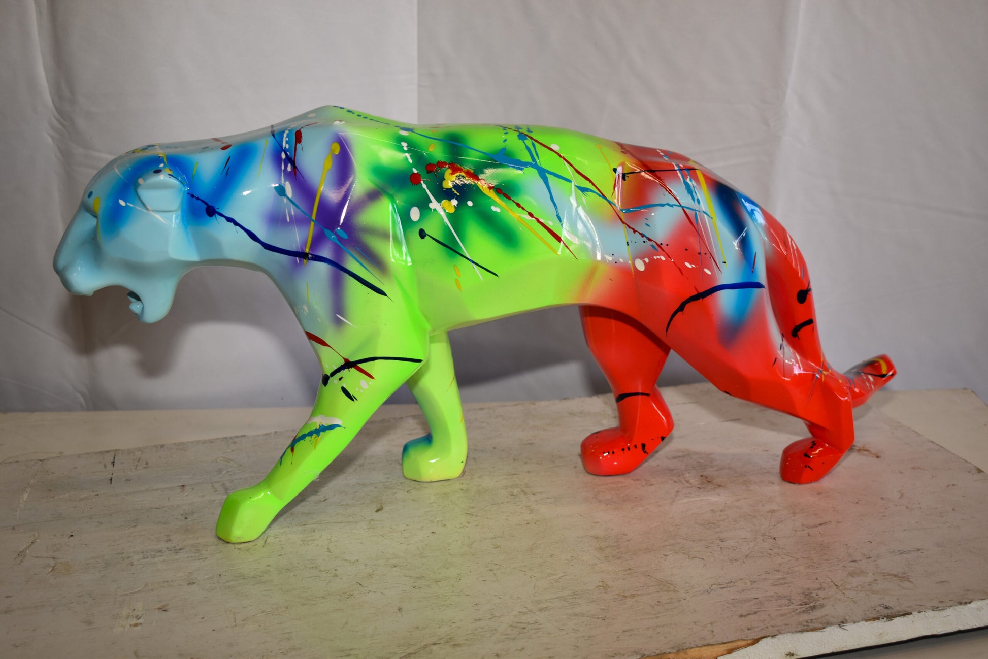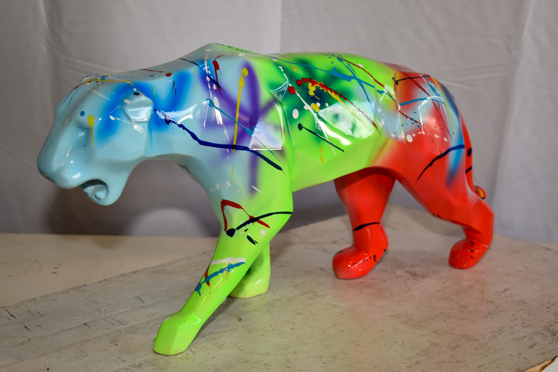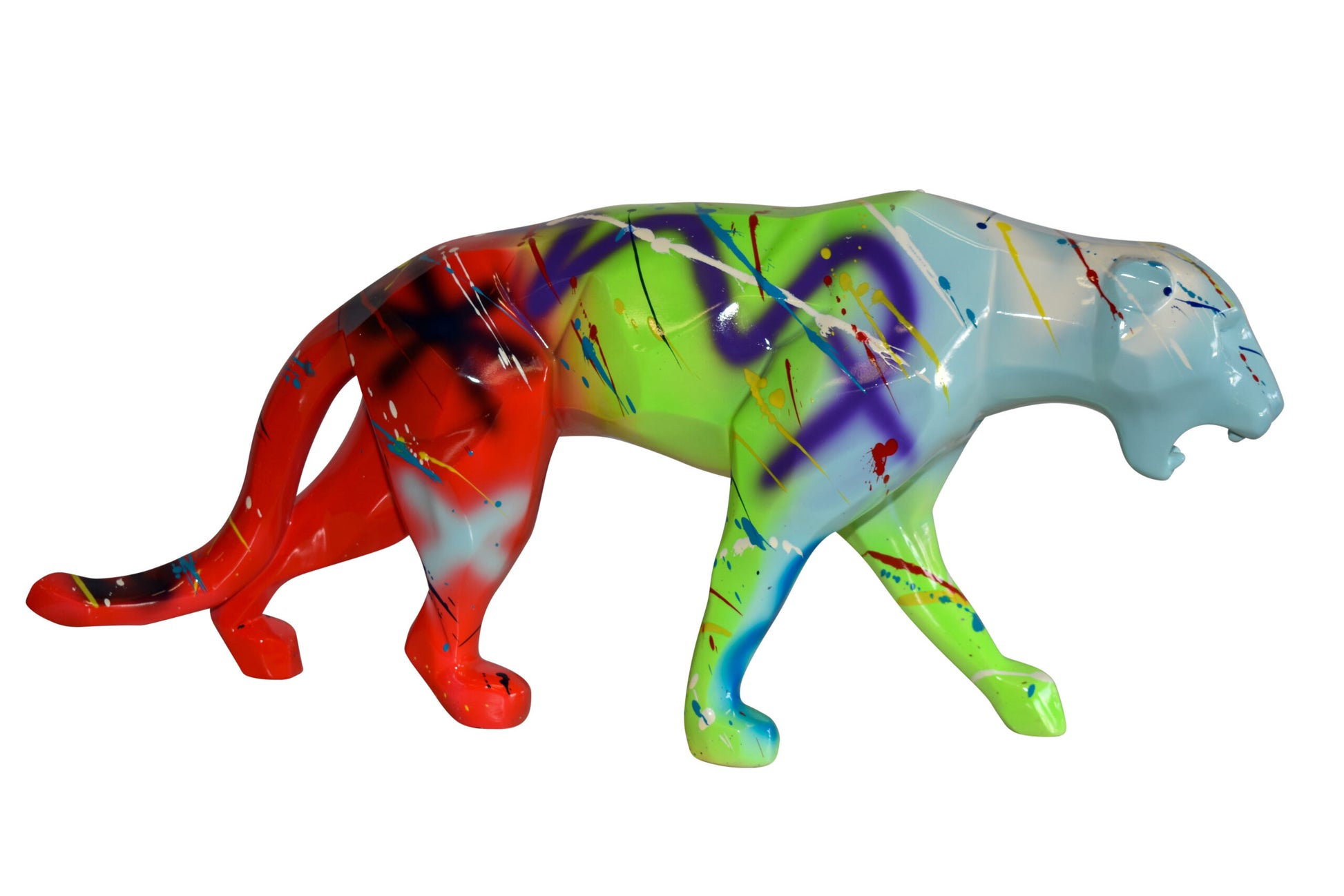 Roaming Graffiti and Splatter paint Jaguar Resin Statue 28" x 7" x 12"H