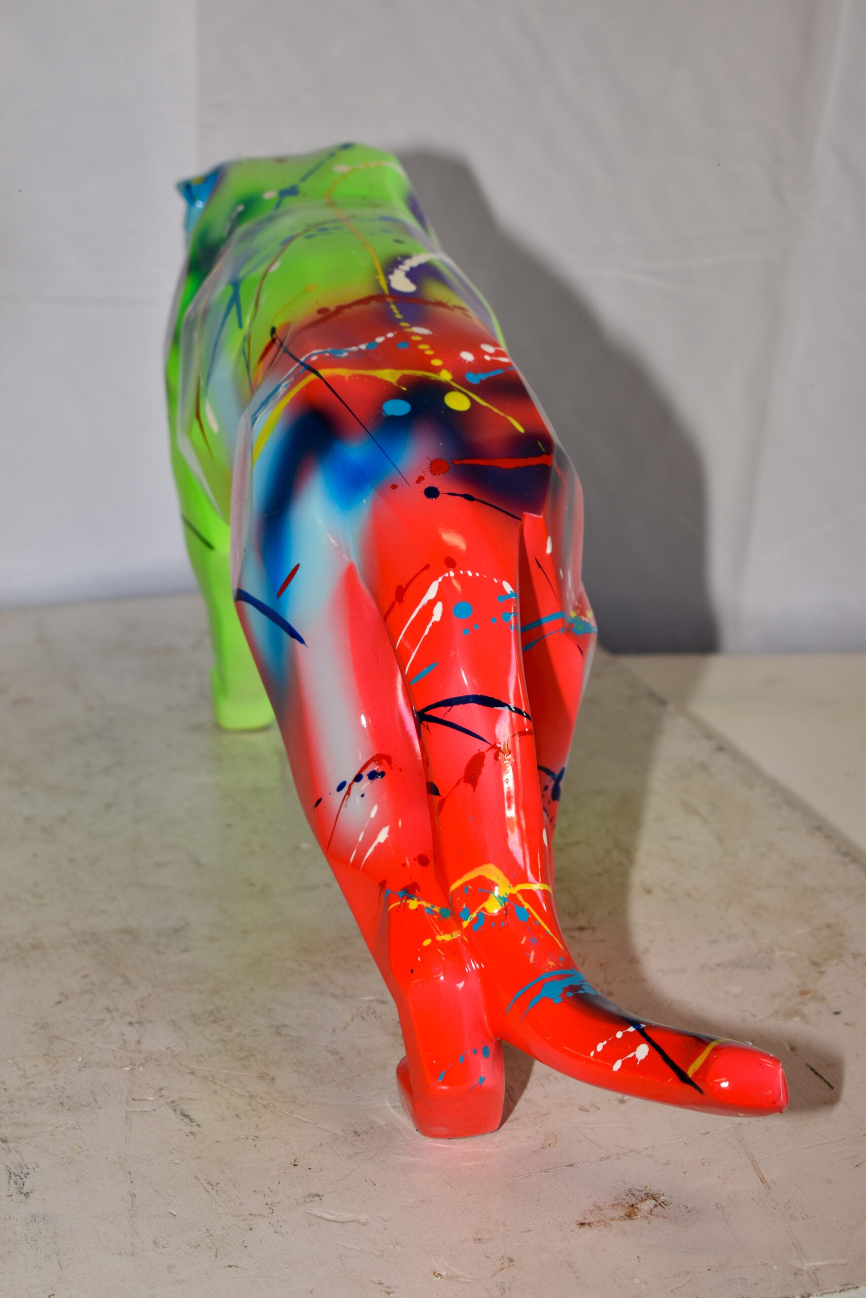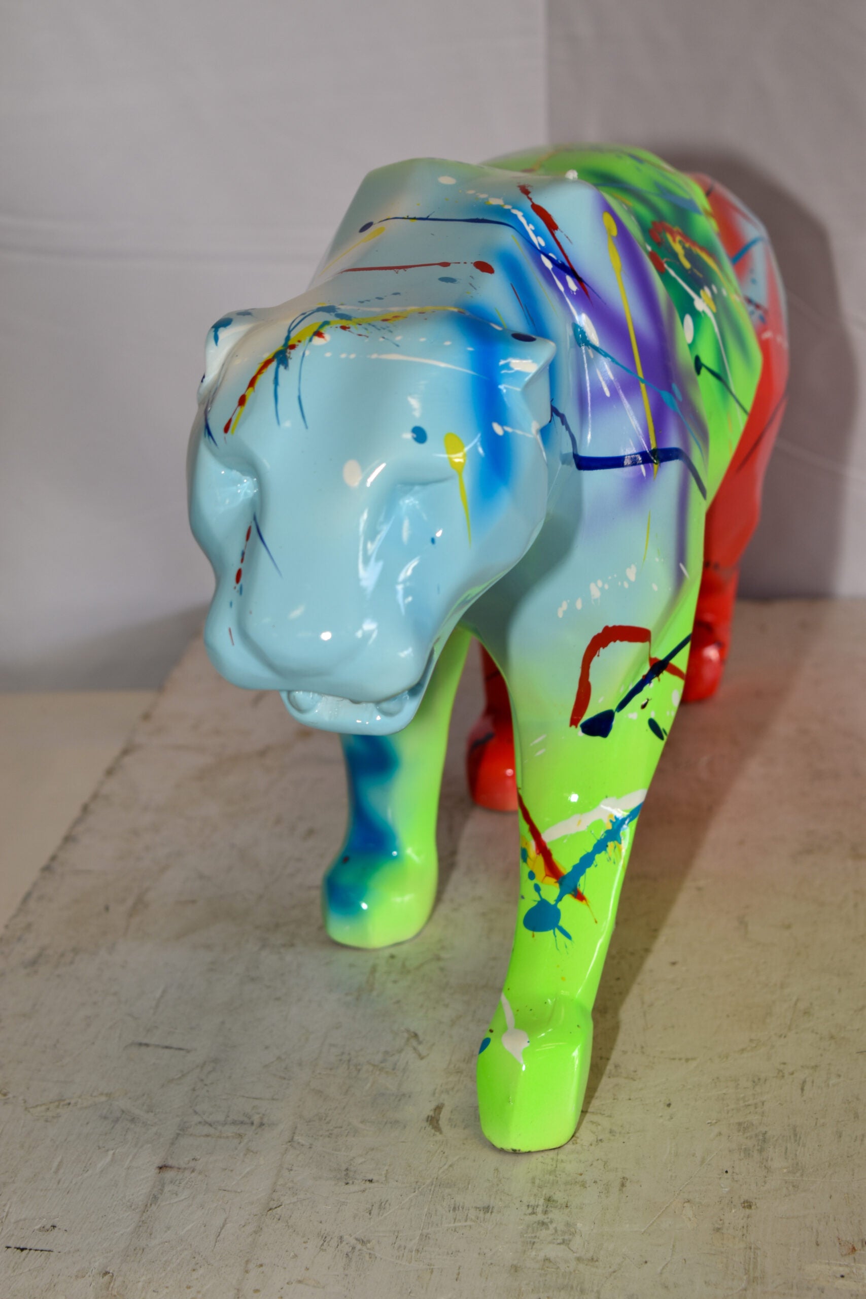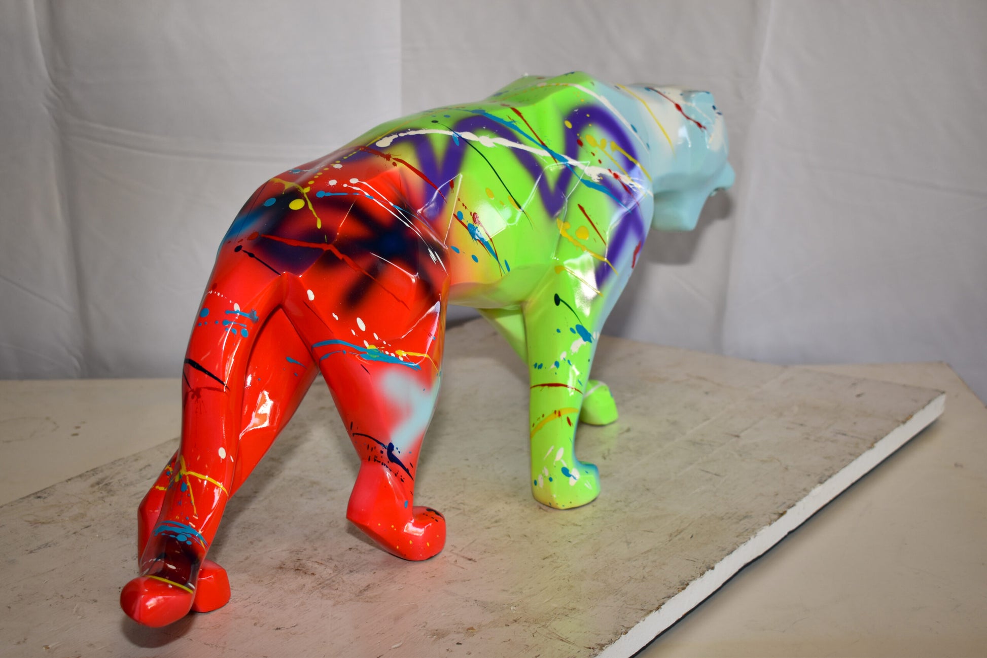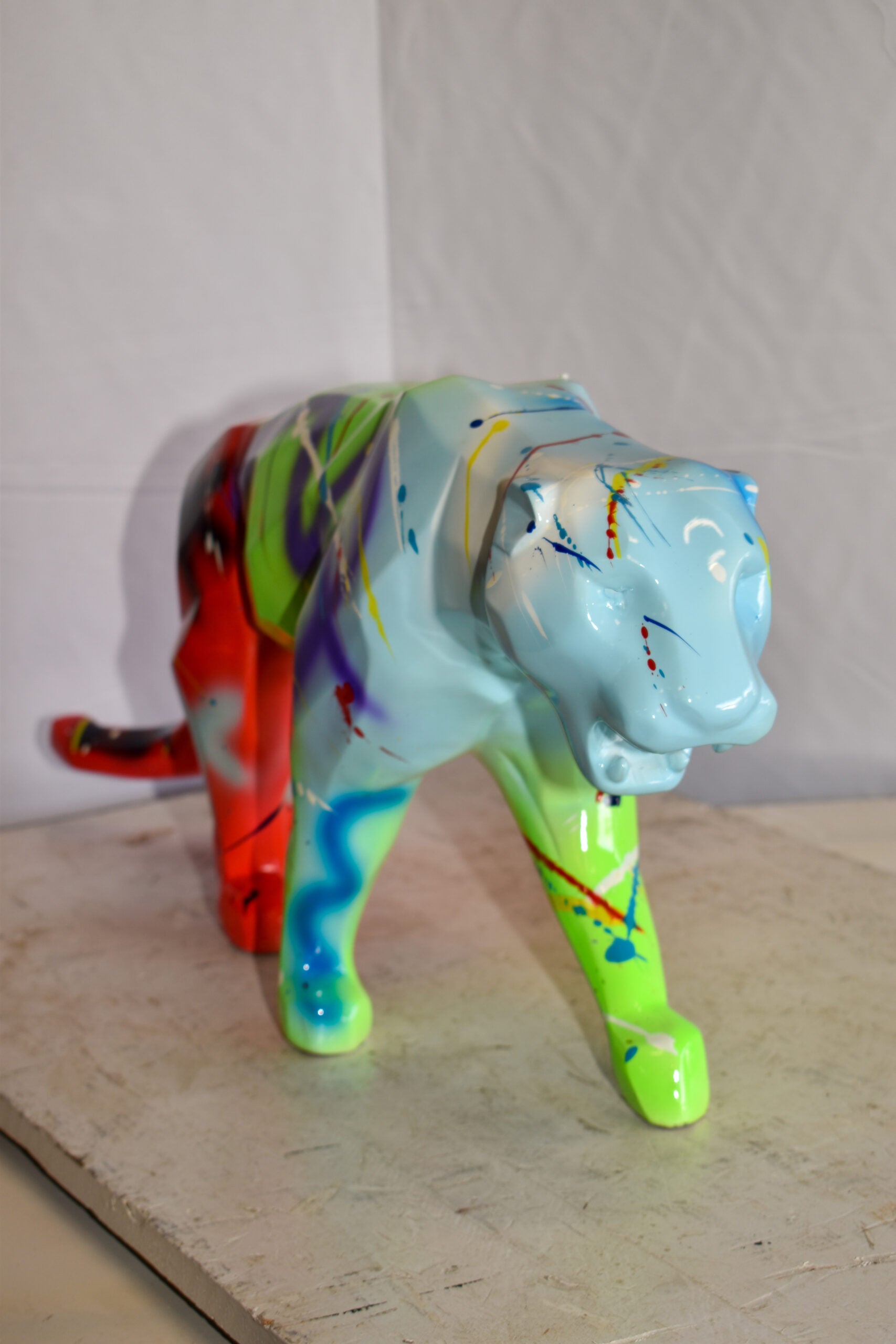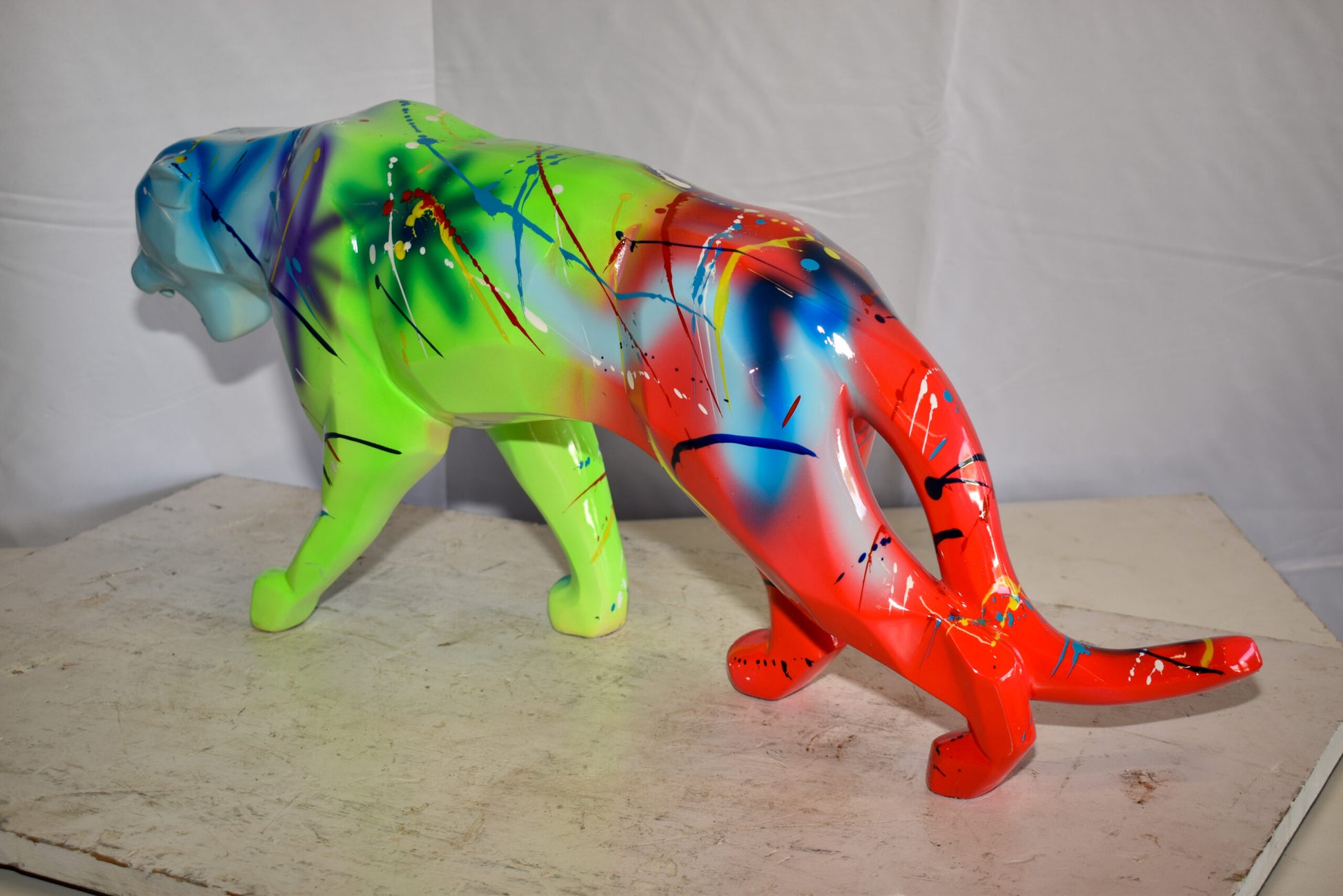 Roaming Graffiti and Splatter paint Jaguar Resin Statue 28" x 7" x 12"H