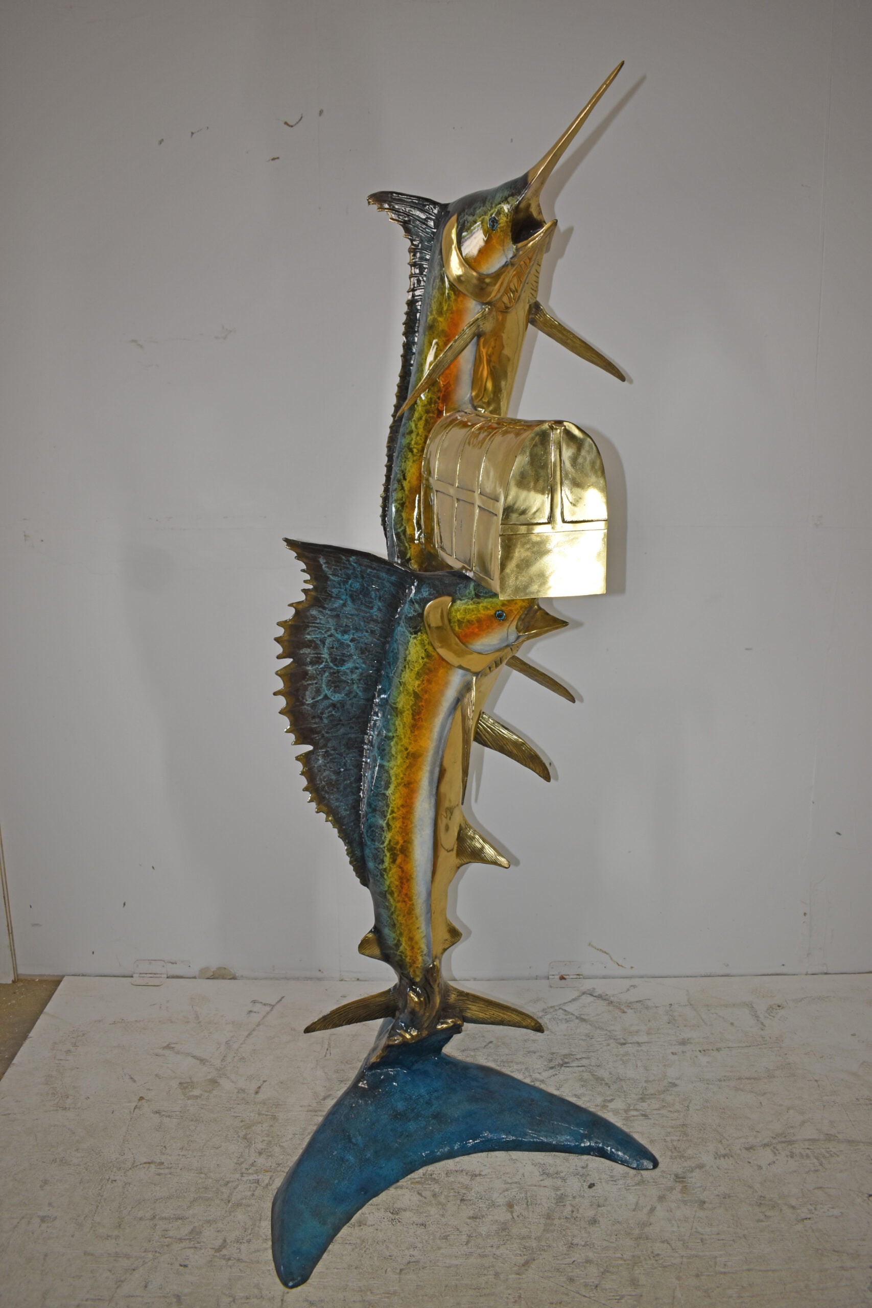 Sailfish and marlin fish Bronze Statue - mailbox Size: 29" x 35" x 77"H