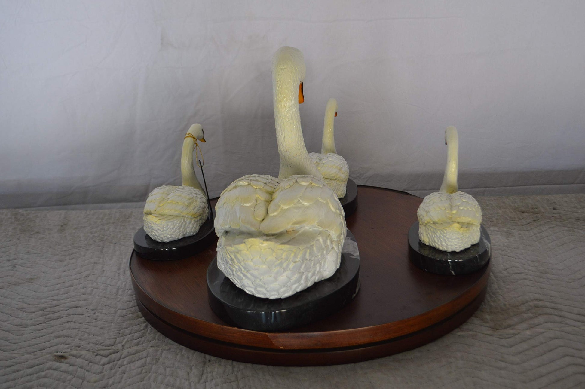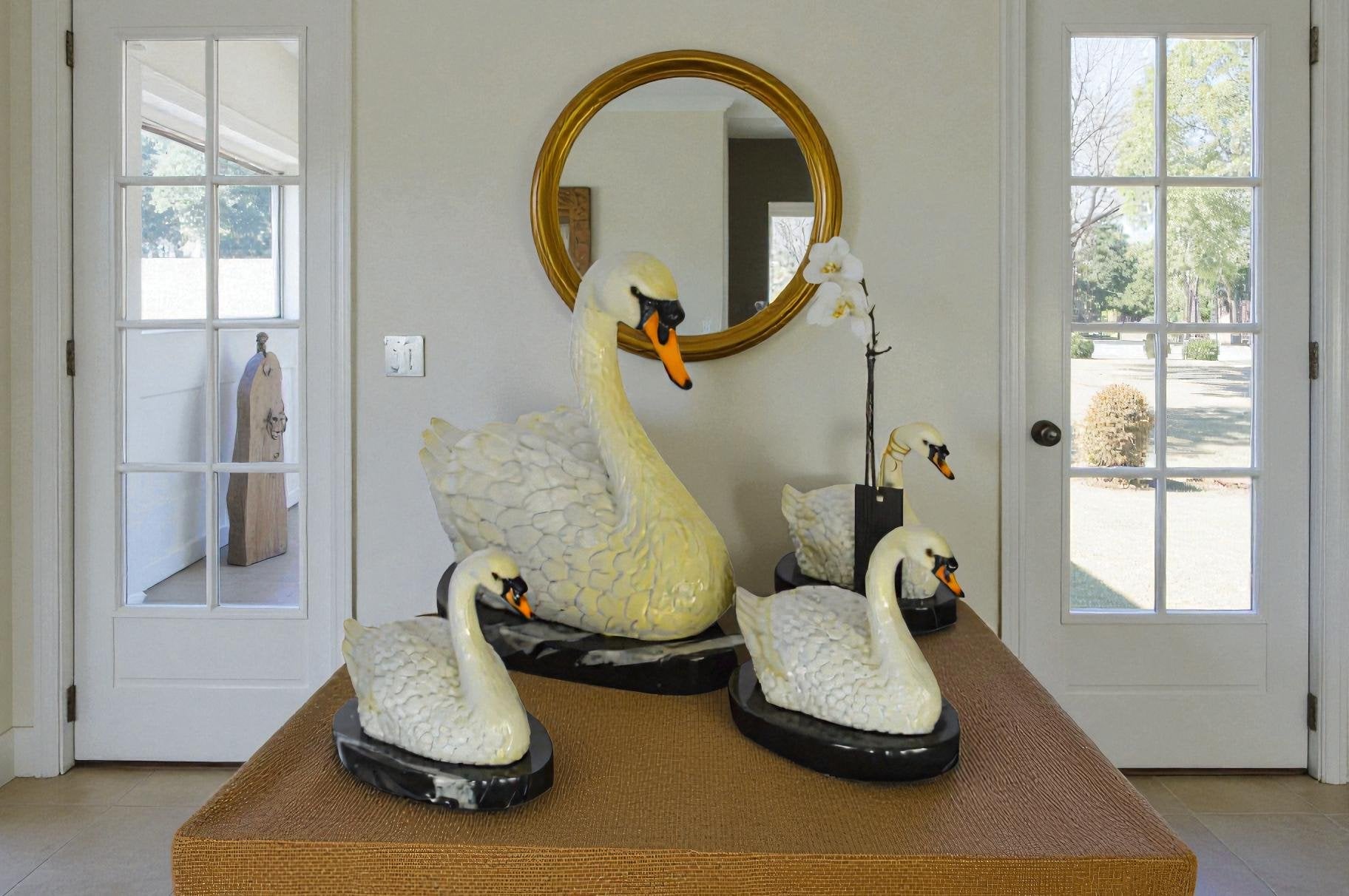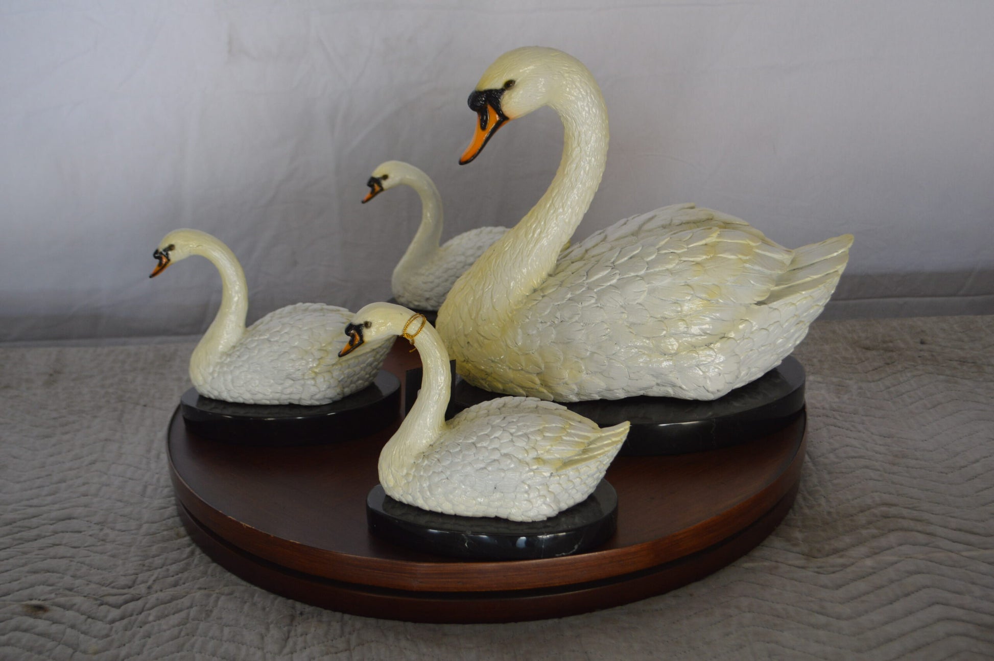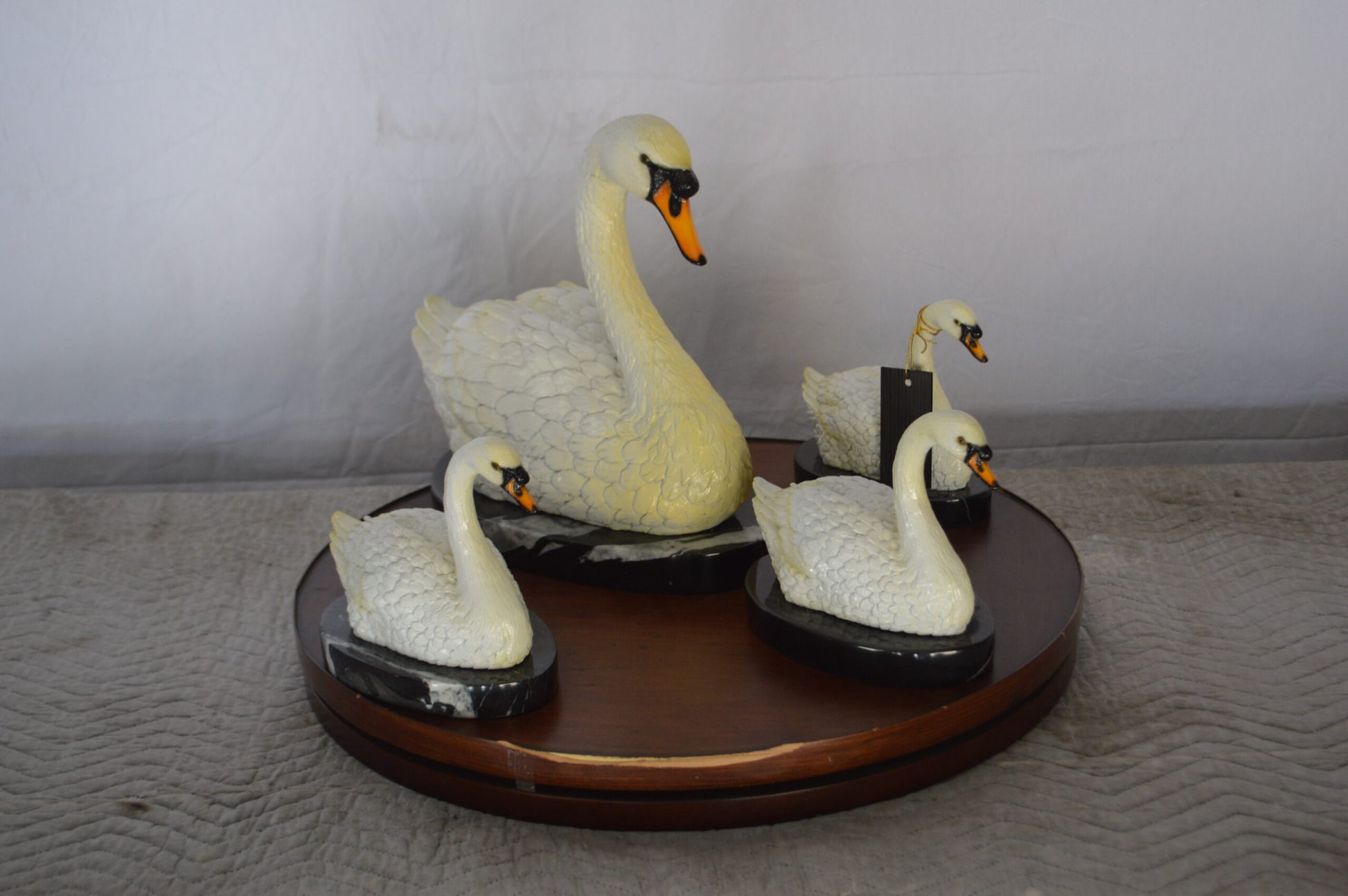 Set of White Swans each on Mable Base bronze statue - Size: 9"L x 18"W x 15"H.