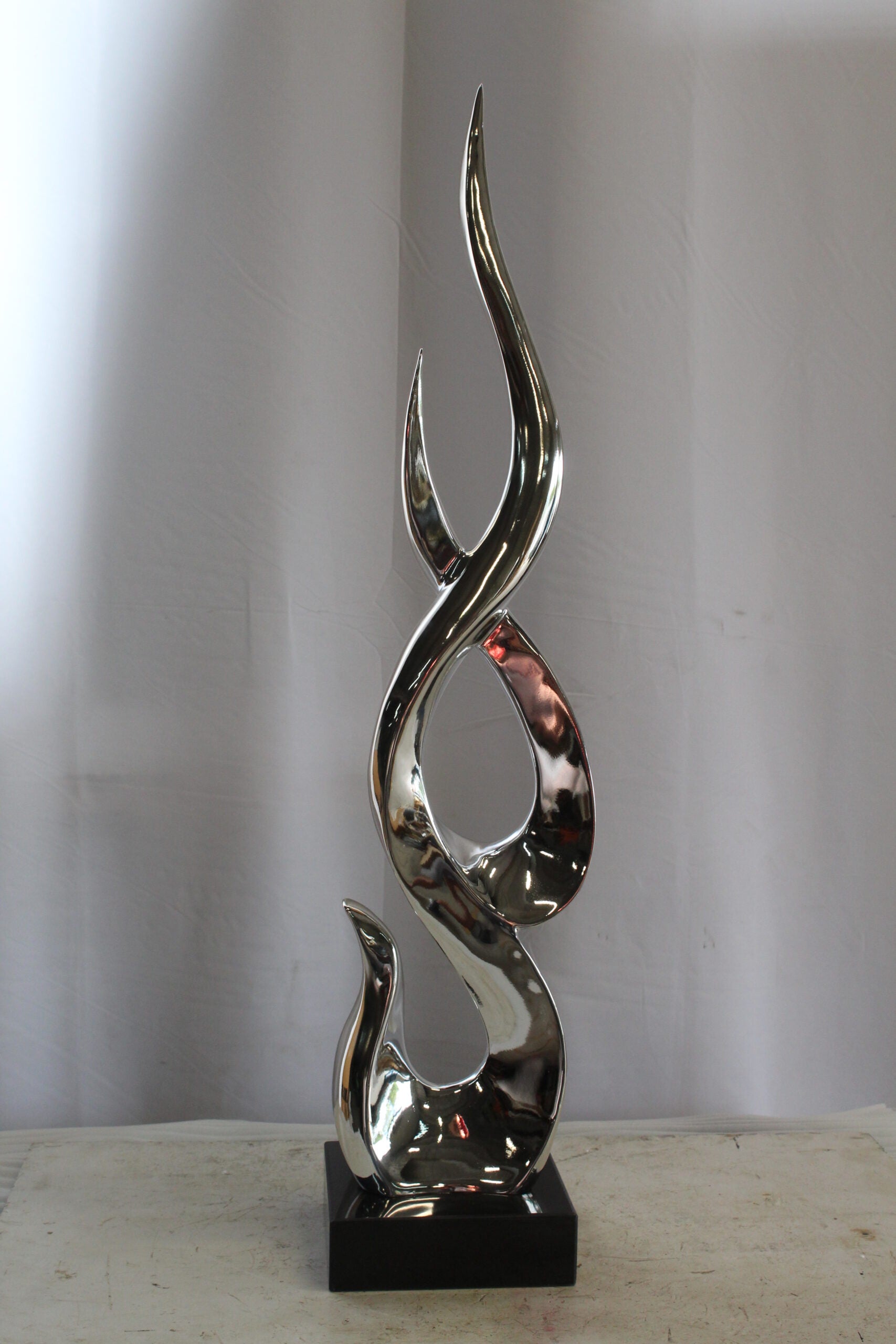 Silver Abstract Intertwined Resin Statue on Marble Base 9" x 7" x 38"H
