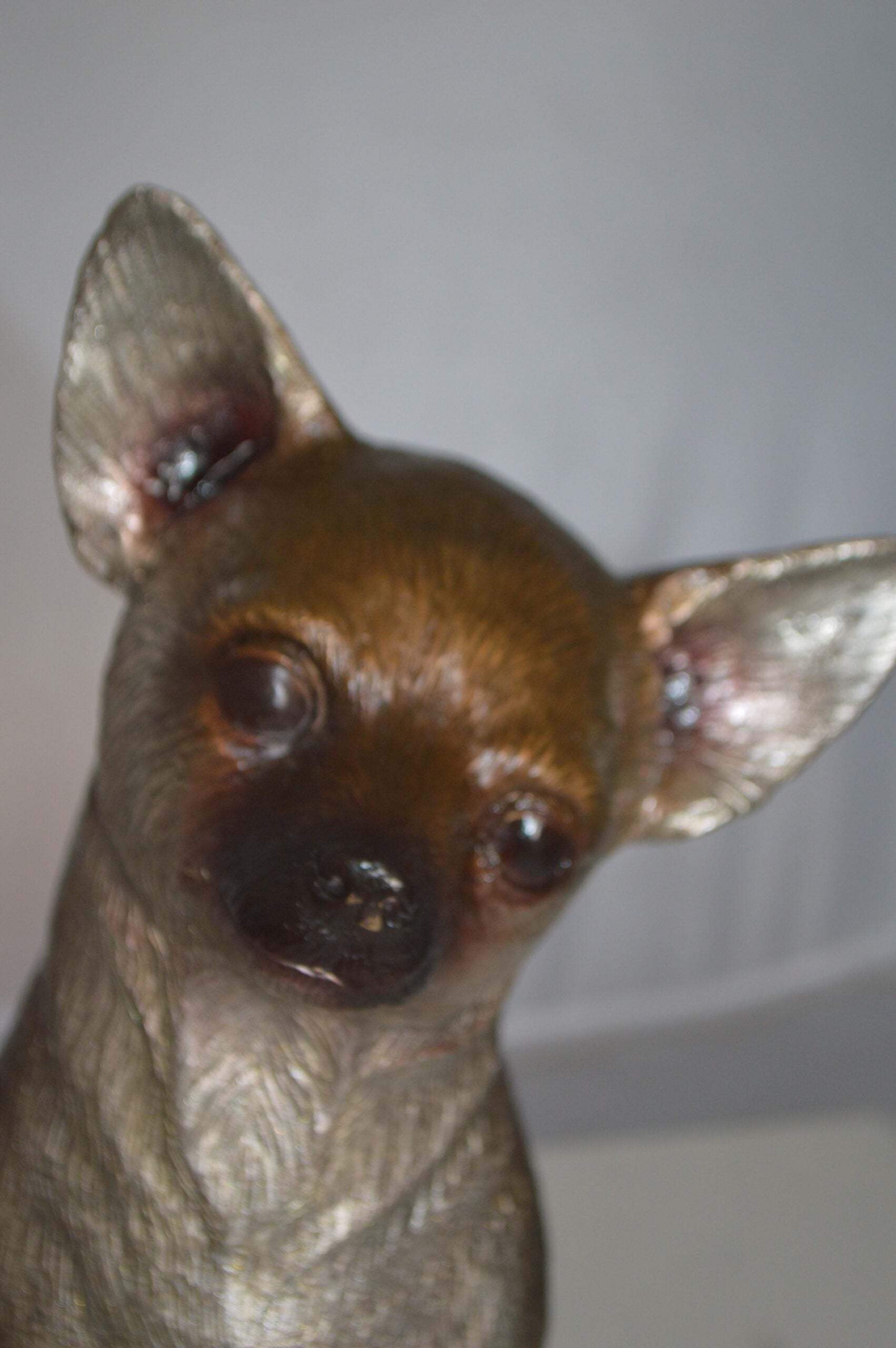 Sitting Chihuahua Bronze Statue - Size: 6"L x 15"W x 15"H.