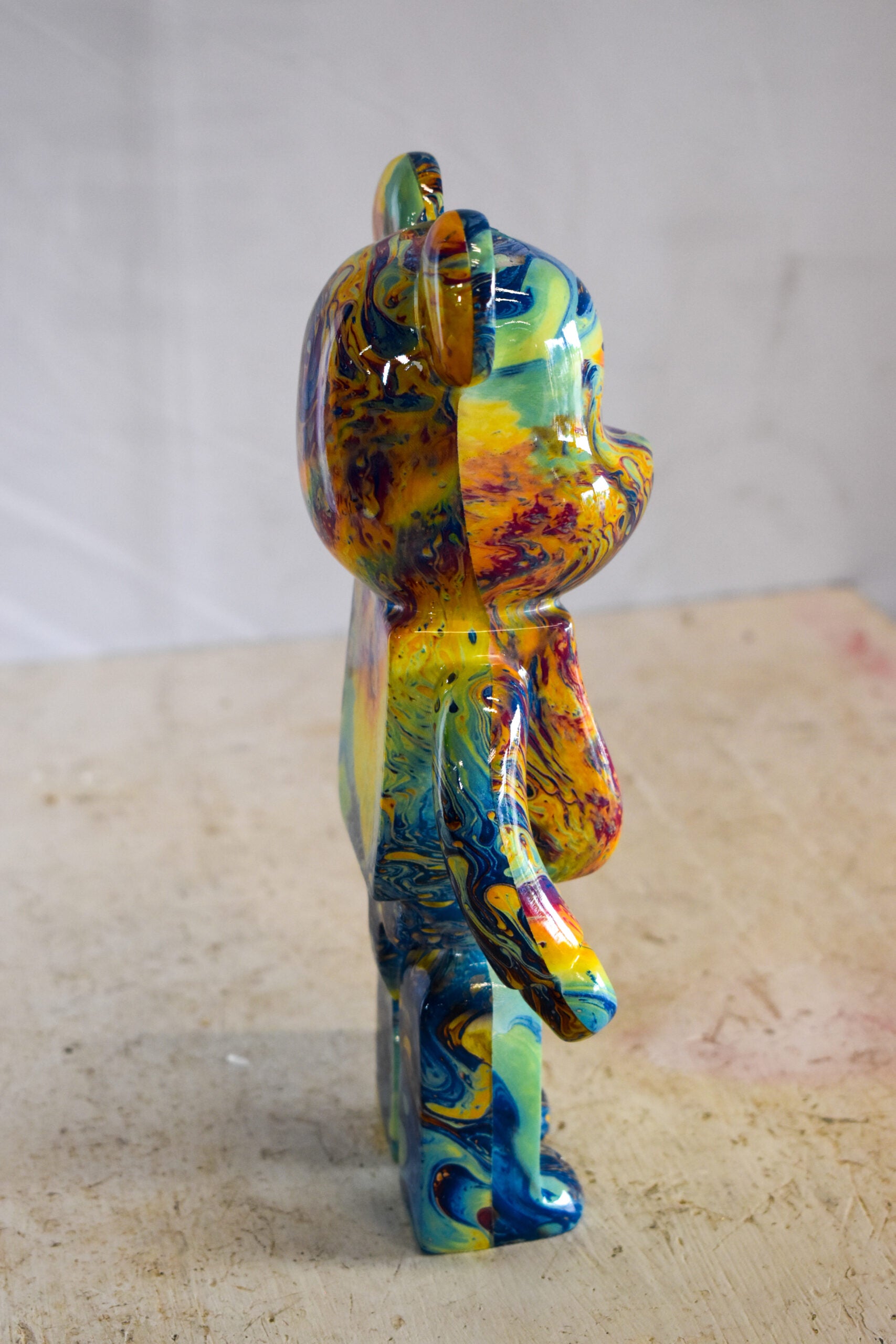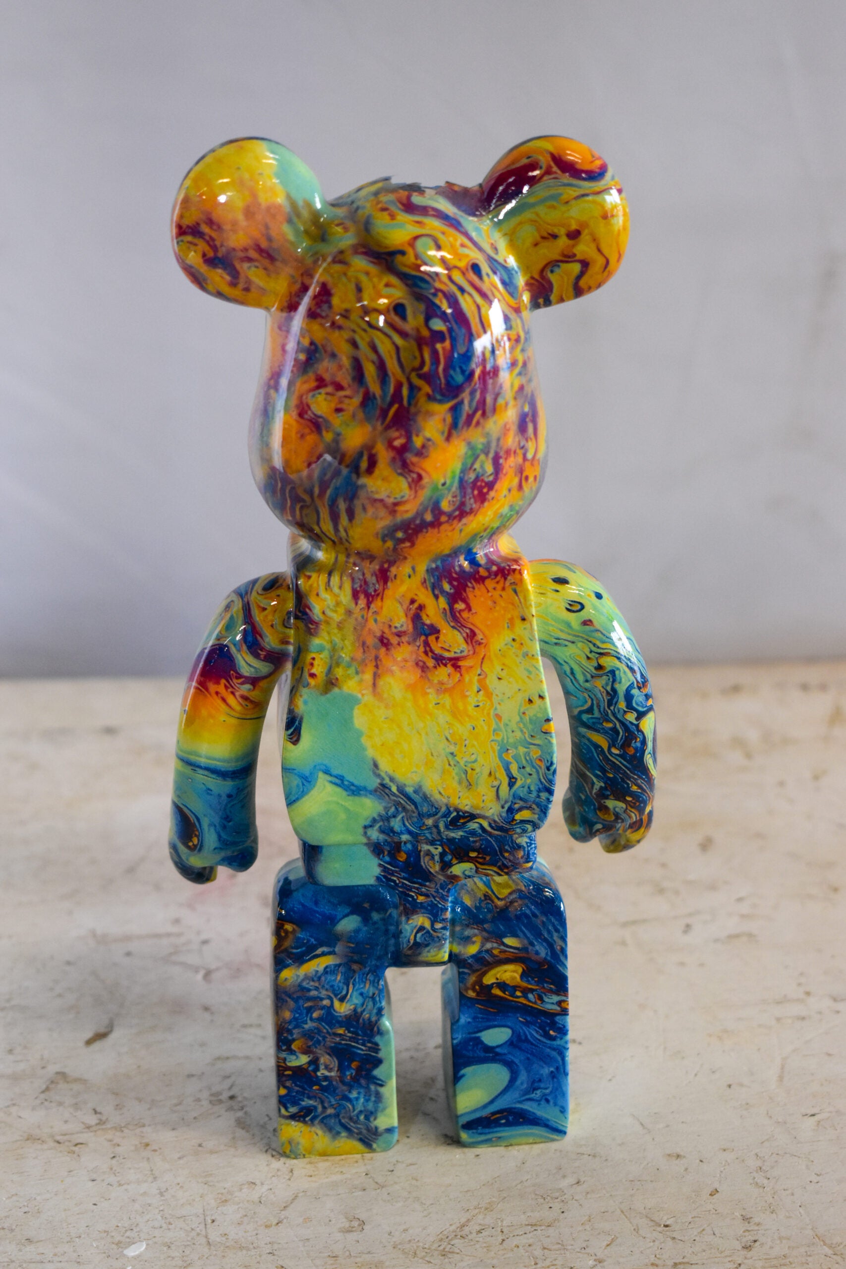 Mimicking the popularity and uniqueness of the bearbrick trend, this statue combines this design with a unique multicolored coating to bring a distinctive and modern small resin statue to your space. Size: 5"L x 3"W x 10"H. Weight is: 1Lb