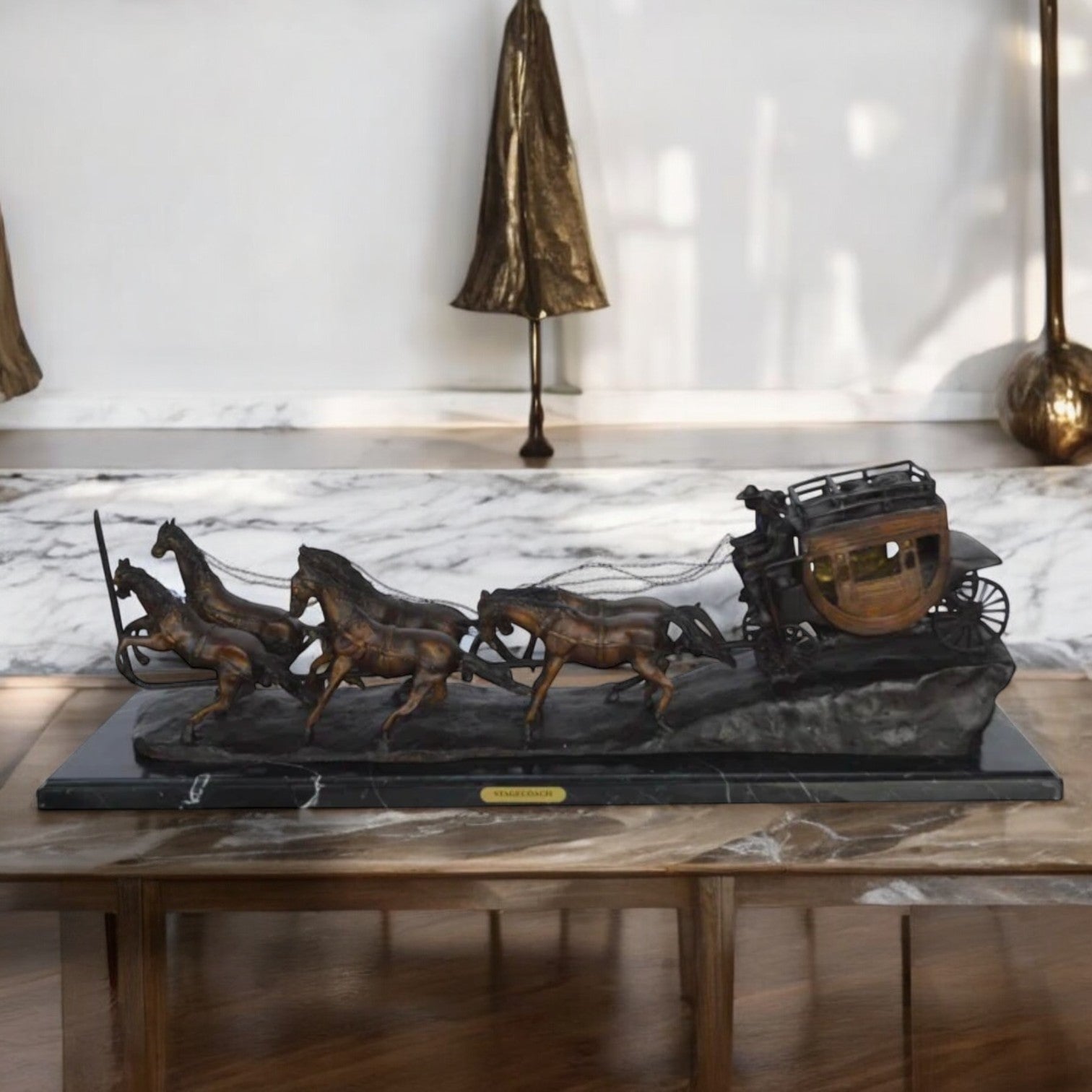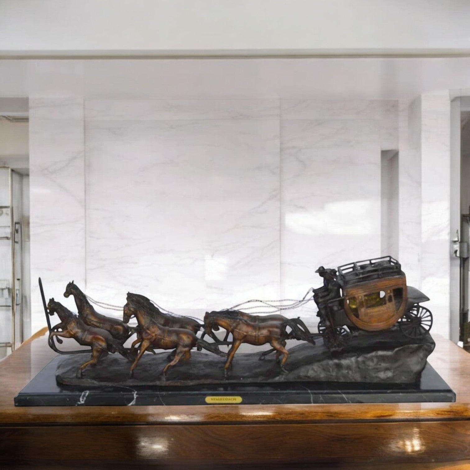 Stagecoach by M. Russell Replica Bronze Statue - Size: 38"L x 10"W x 12"H.