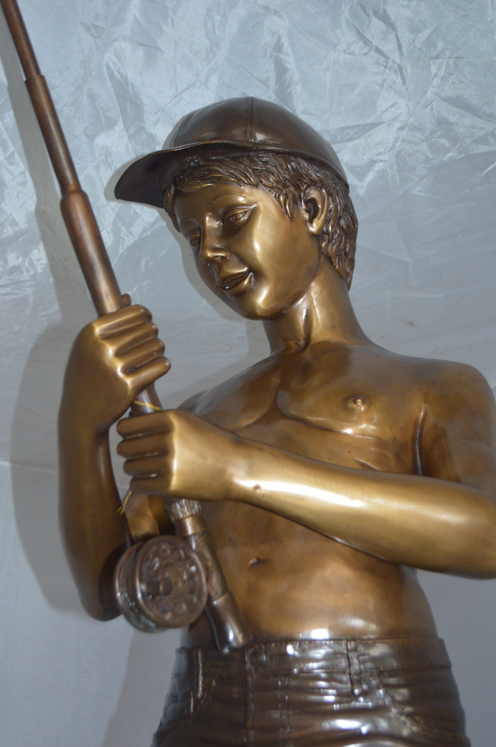 Standing Boy Fishing Fountain Bronze Statue - Size: 58"L x 25"W x 72"H.