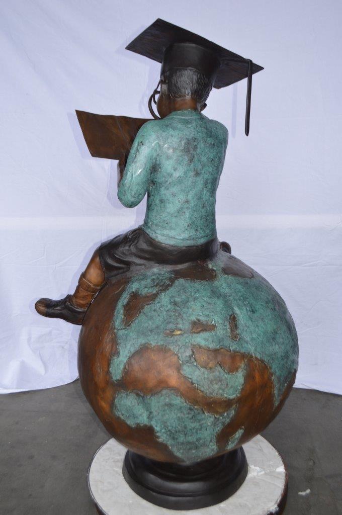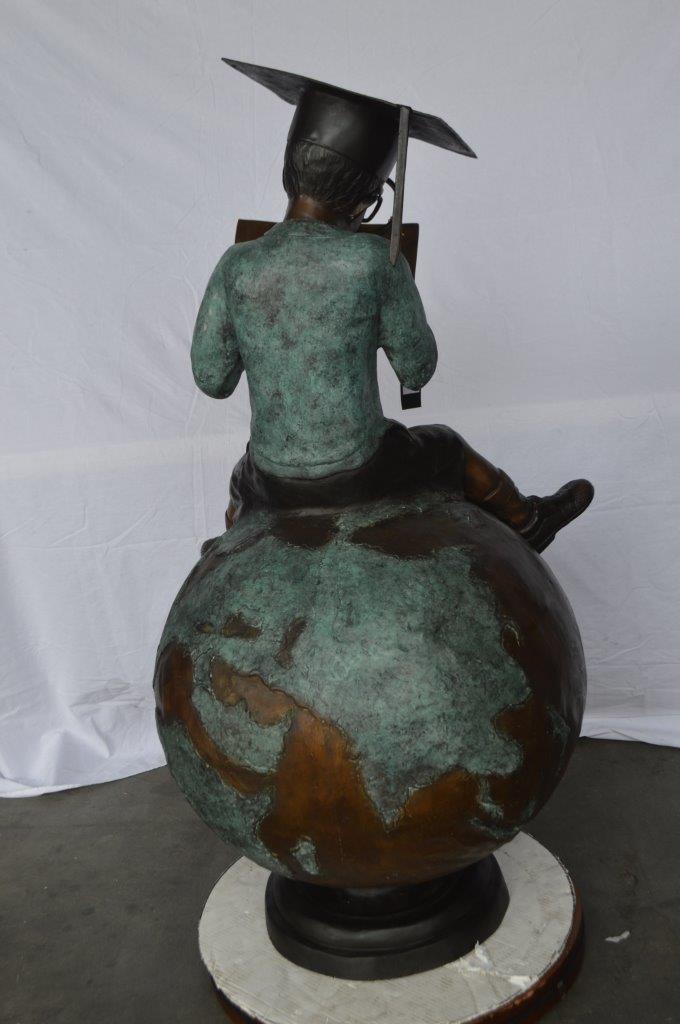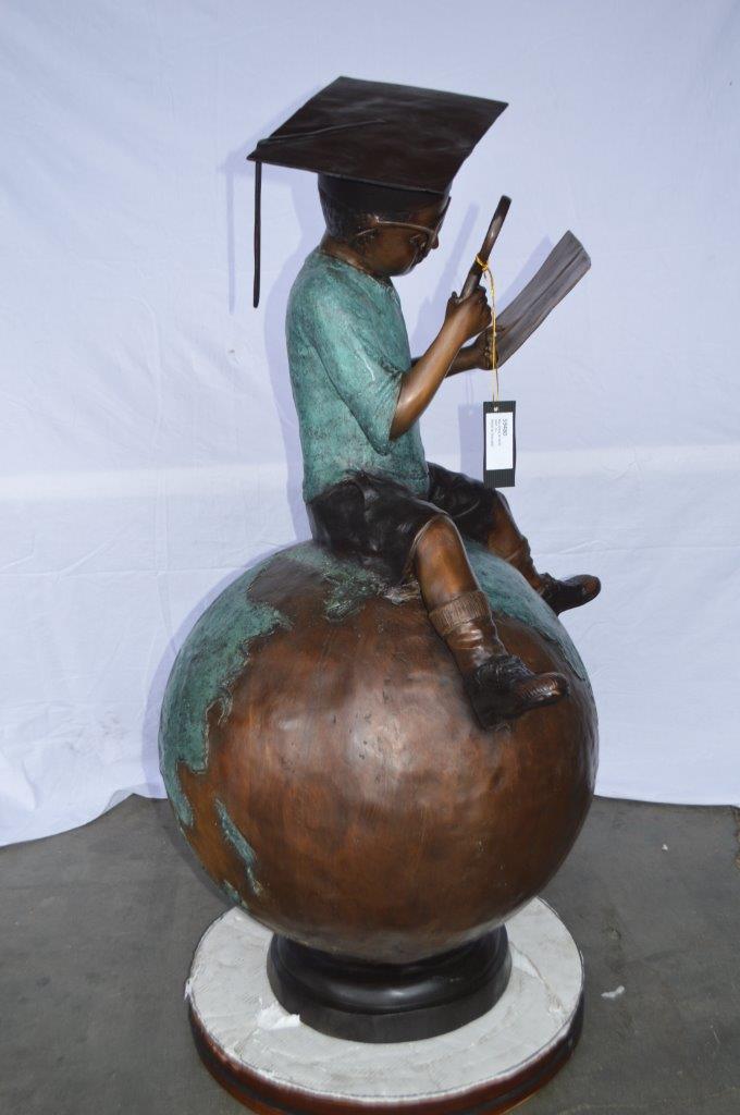 Student learning on top of world bronze statue - Size: 28"L x 24"W x 52"H.