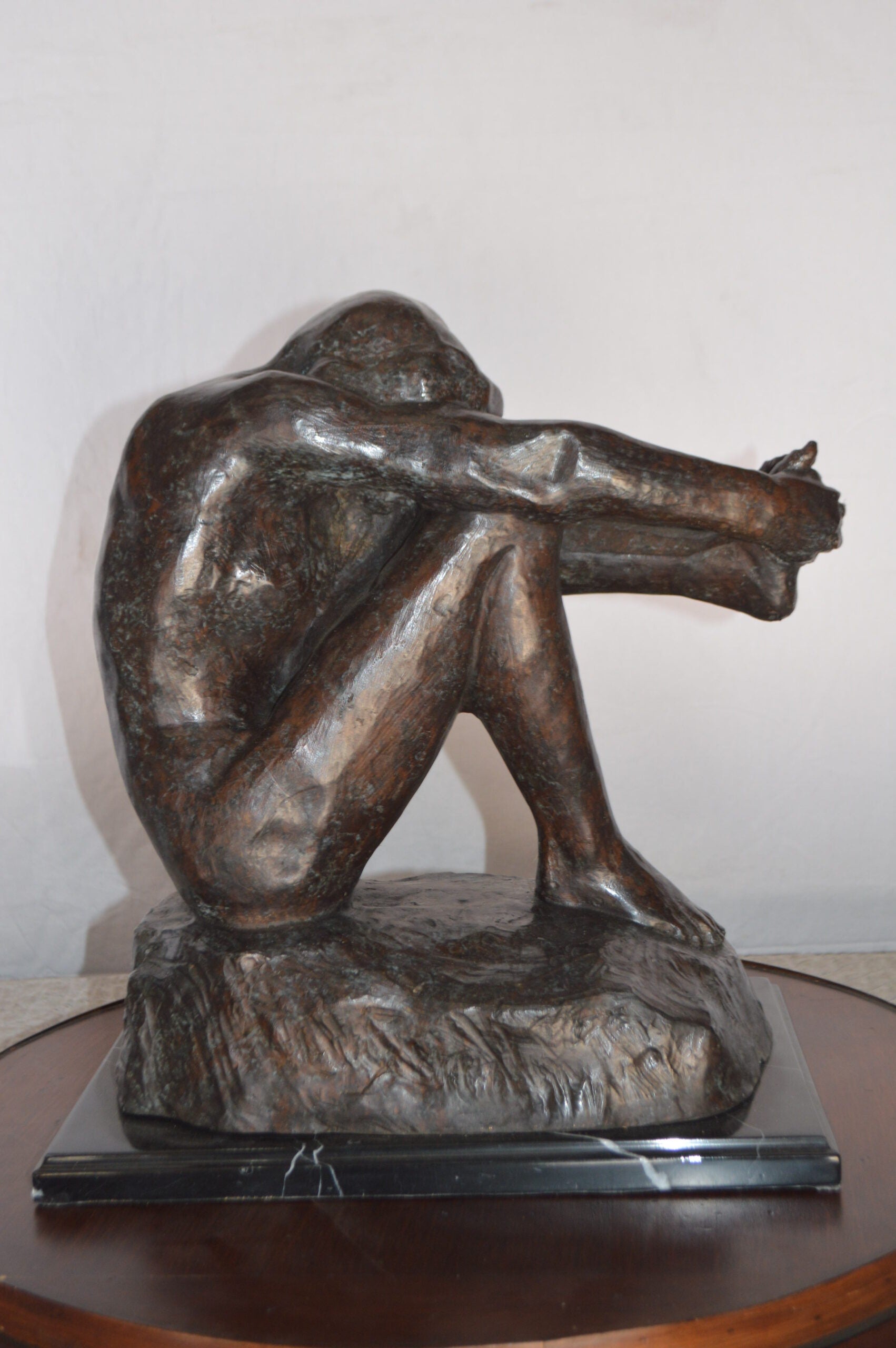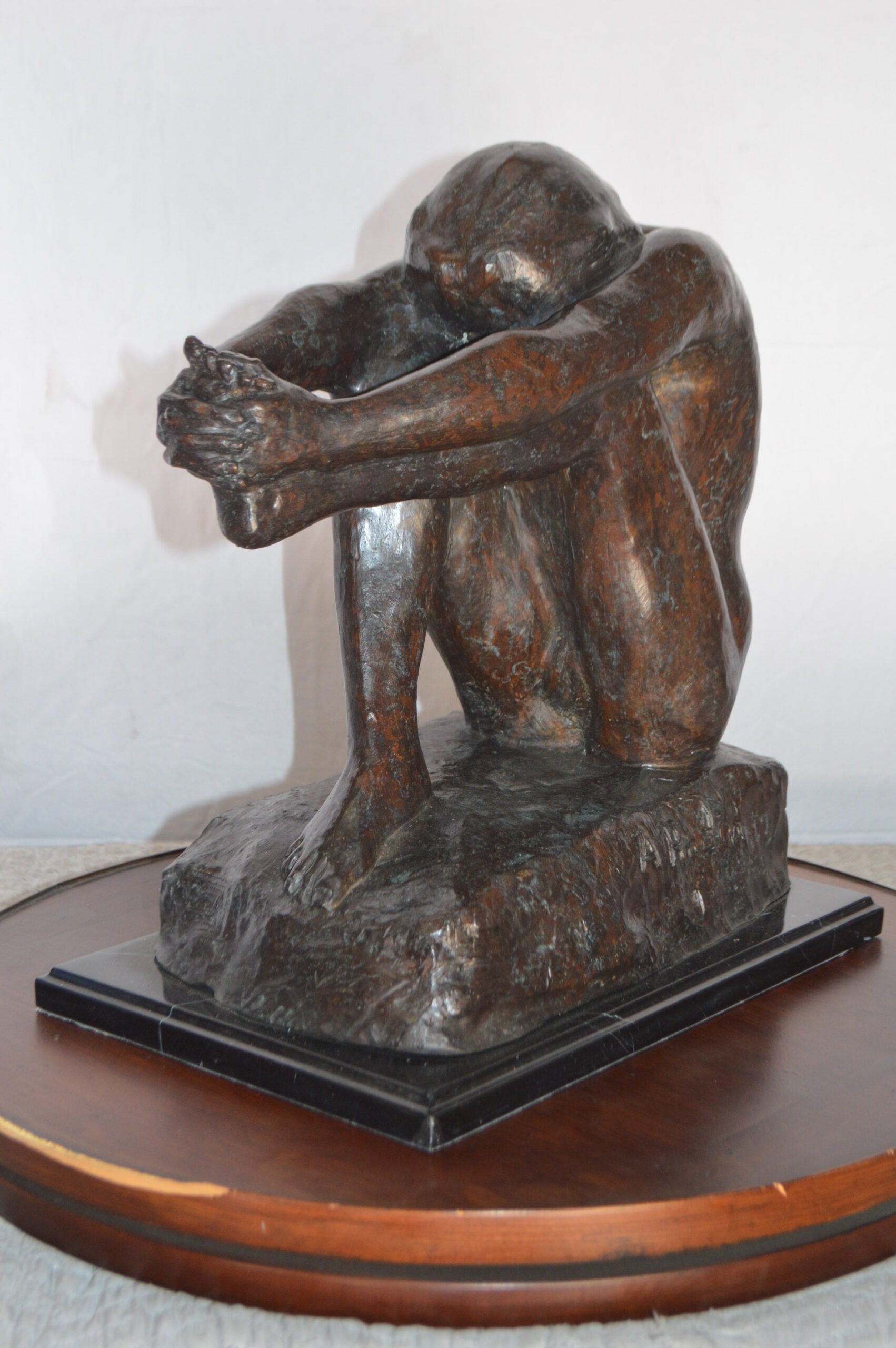 The Despair Rodin Replica Bronze Statue - Size: 12"L x 11"W x 19"H.