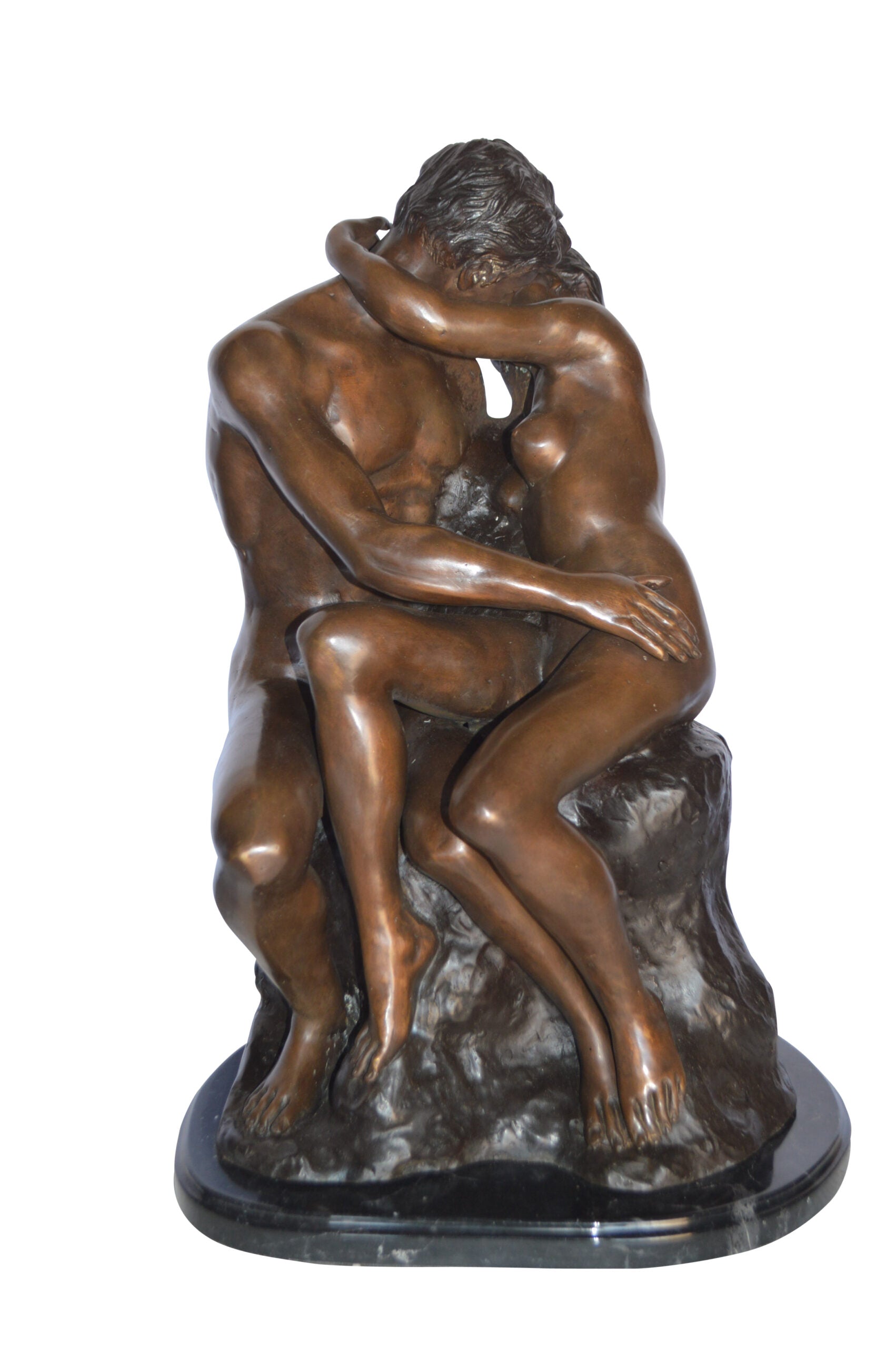 The Kiss replica by Rodin Medium Bronze Statue - Size: 15"L x 14"W x 22"H.