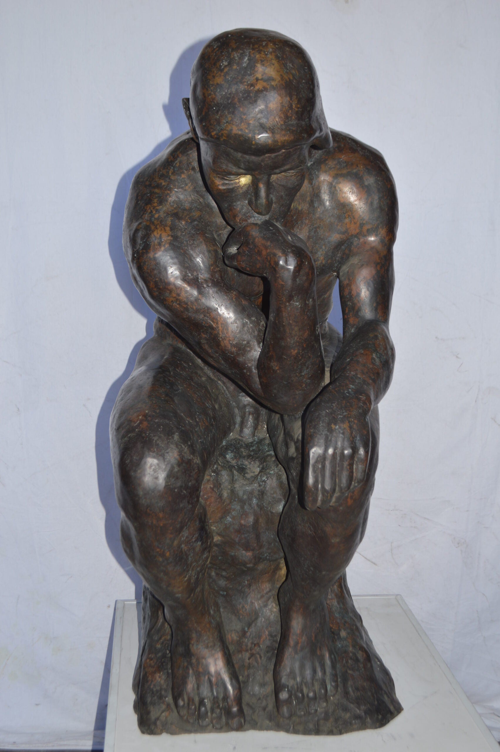 The Thinker is considered by many to be Rodin's most celebrated work. It was conceived as part of his monumental Gates of Hell, inspired by Dante's Divine Comedy. Originally titled "The Poet," The Thinker represents Dante himself. This reproduction was made from the heroic size bronze original sculpture by Rodin. This impressive Bronze Statue will be a permanent fixture on the grounds of your estate for years to come. Size: 37"L x 21"W x 48"H. Weight is: 167Lb