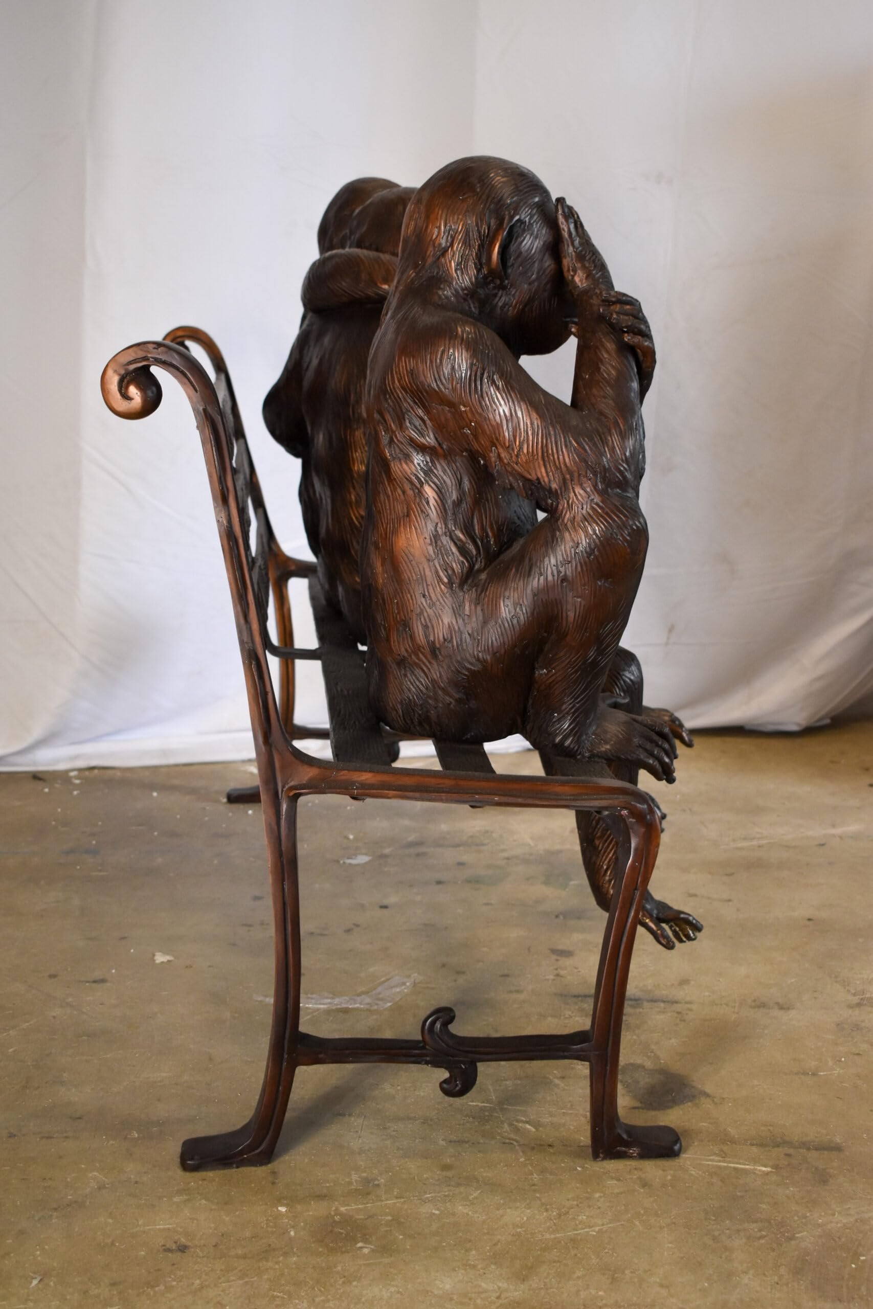 Three Emotional Monkeys on Bench Bronze Statue 57" x 20" x 43"H