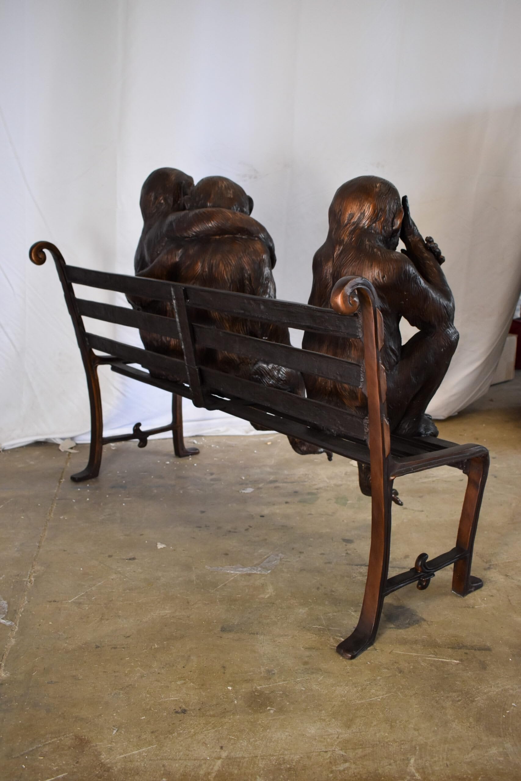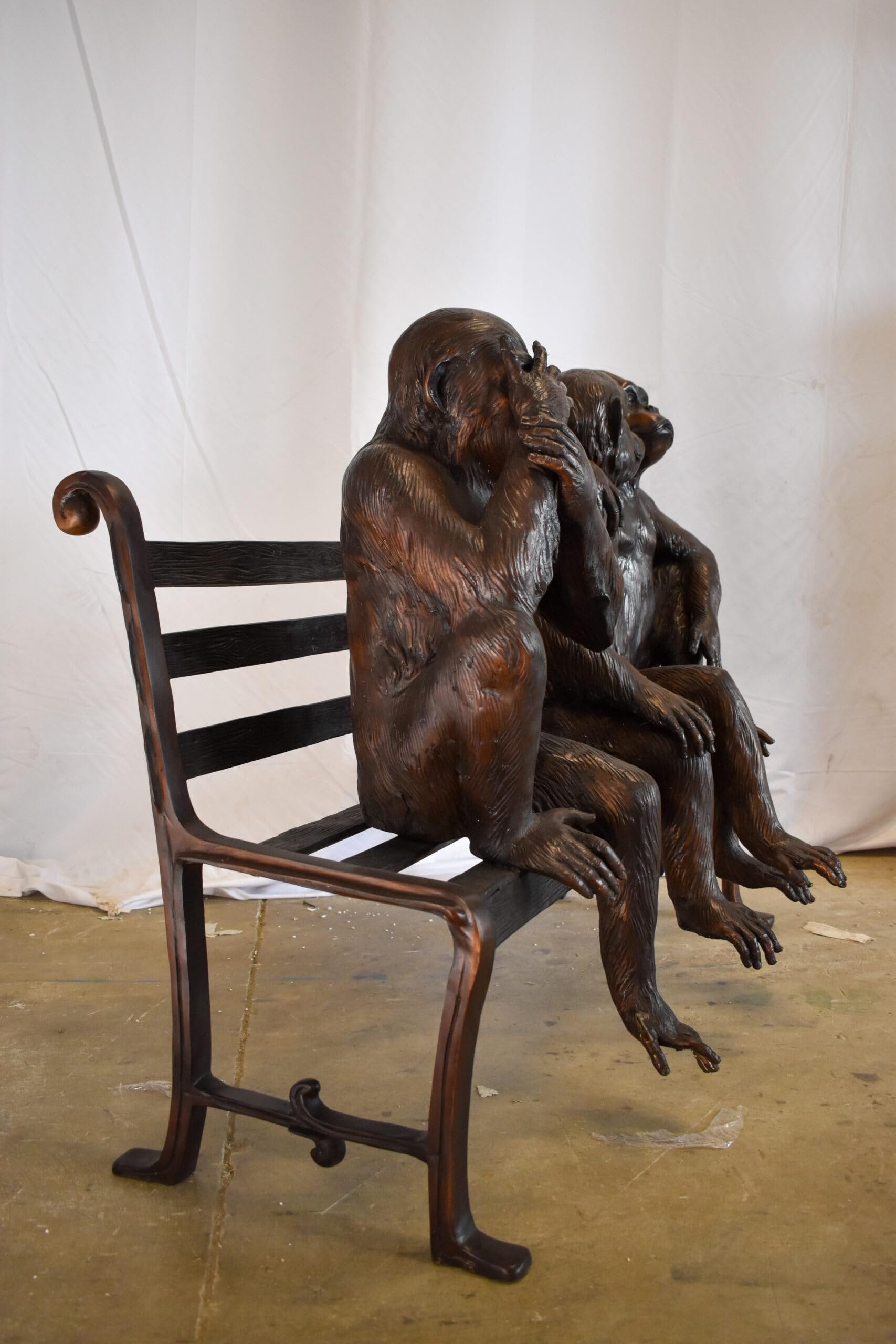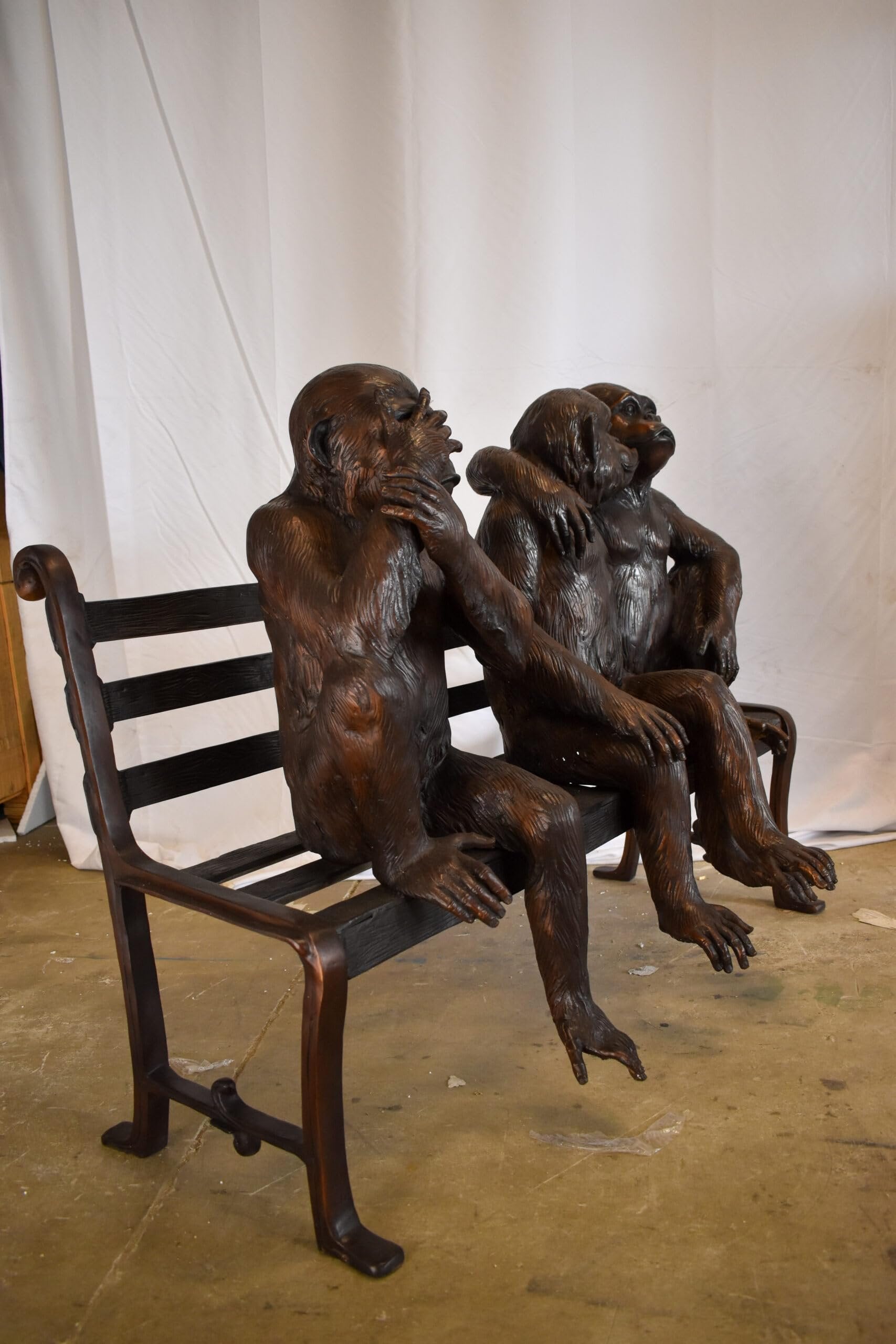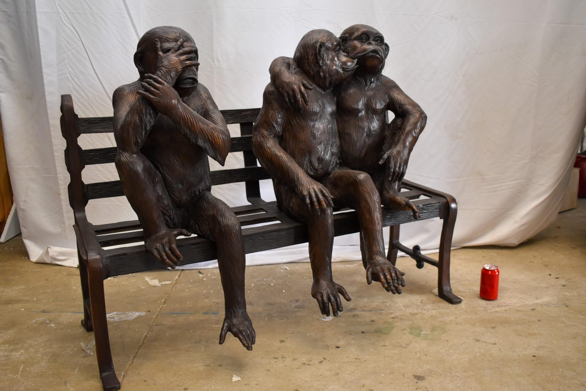 This life sized statue of three emotional and realistic monkeys combines humor, creativity, and pure artistic genius into one bronze statue. Size: 57"L x 20"W x 43"H. Weight is: 196Lb