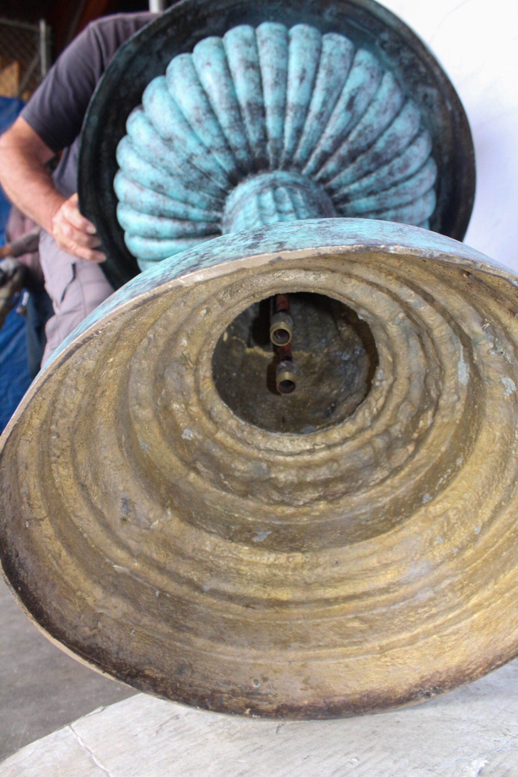 Explore the elegance of Three Sailfish Bronze Fountain with Green Patina Finish. Handcrafted and casted using traditional lost wax method. Enhance your space with its serene aquatic charm (pump not included). Size: 29"L x 29"W x 50"H. Weight: 97Lb