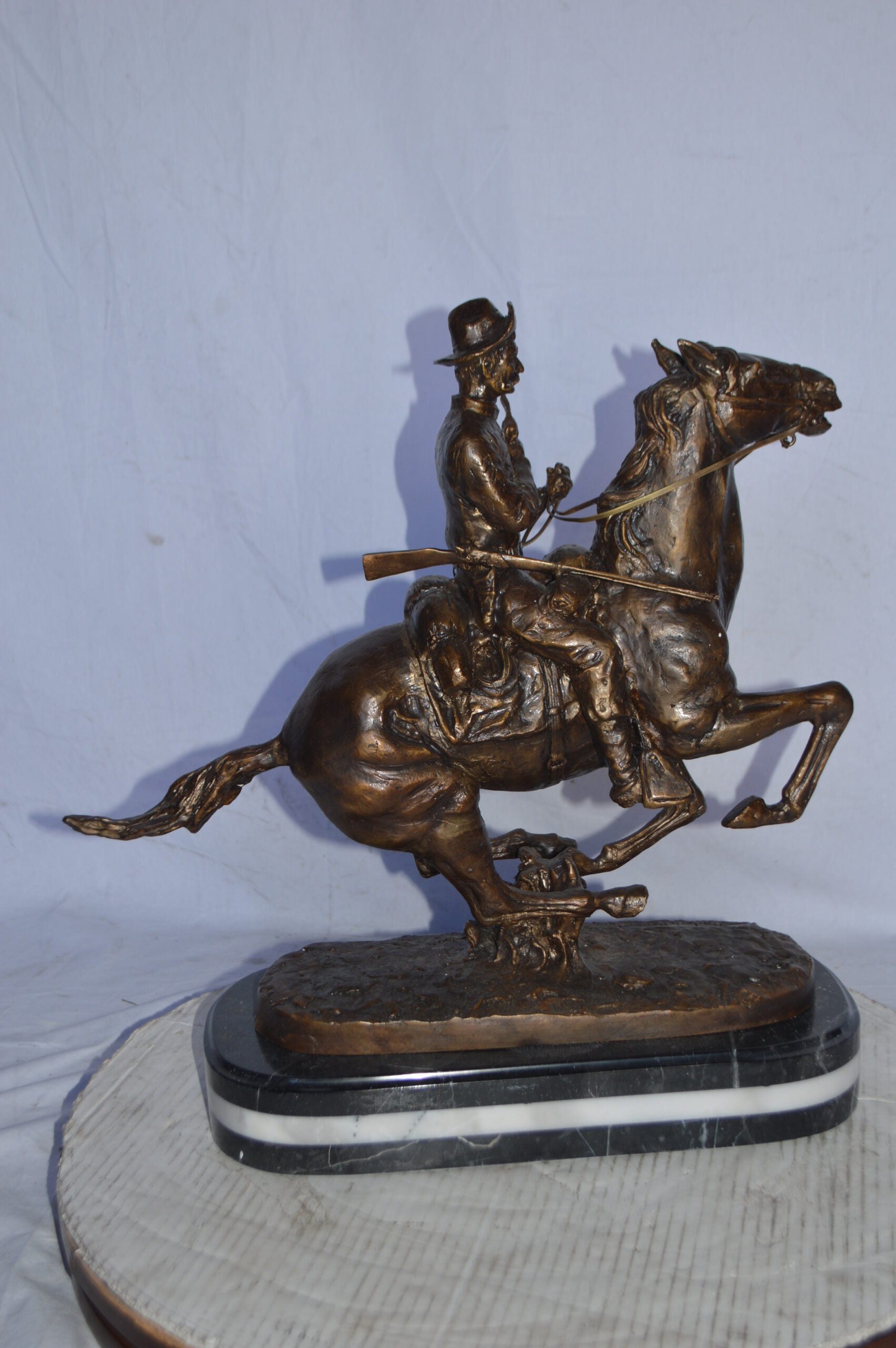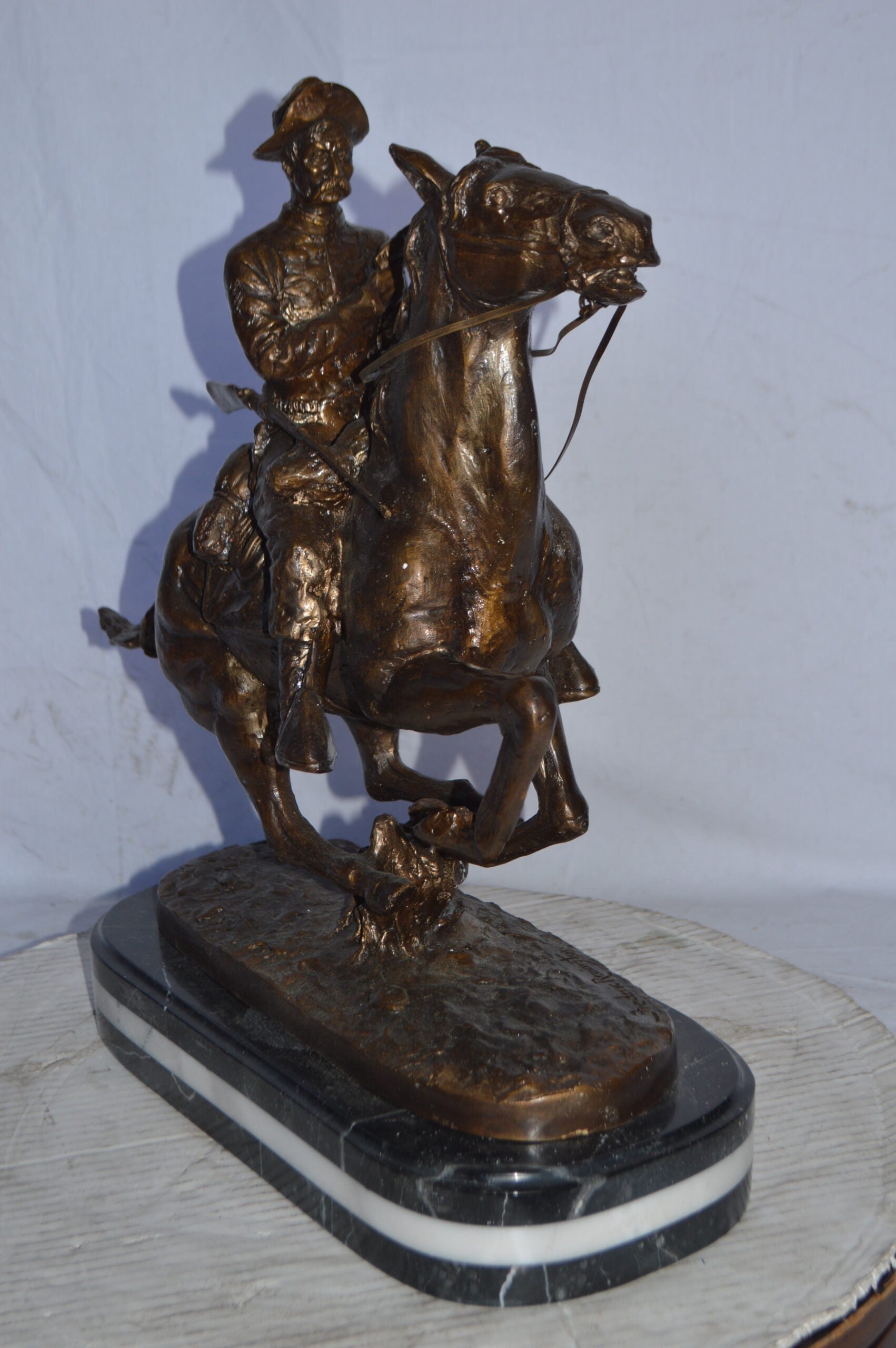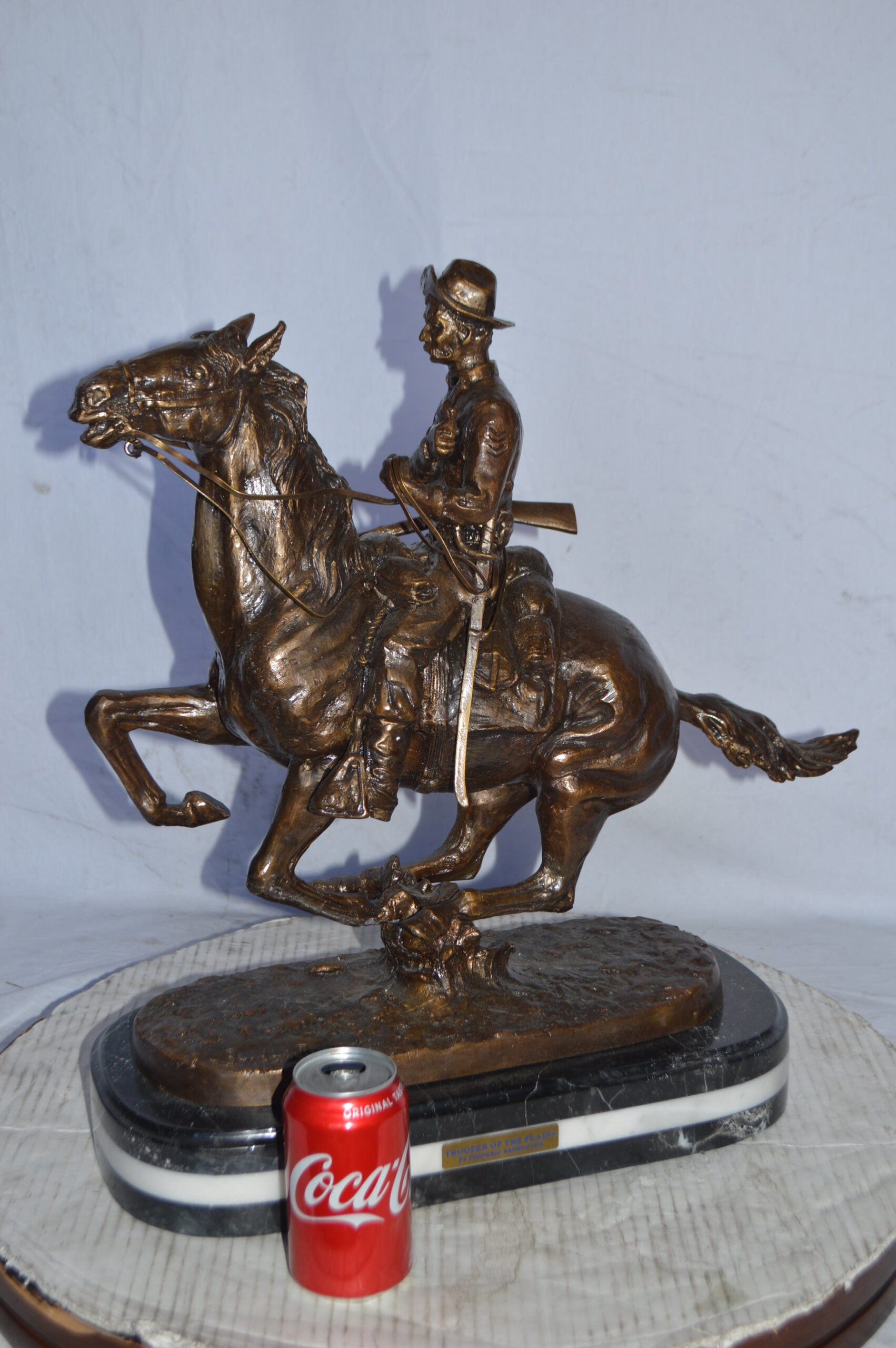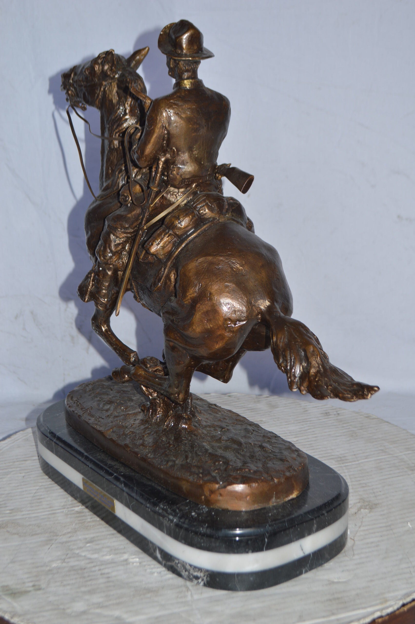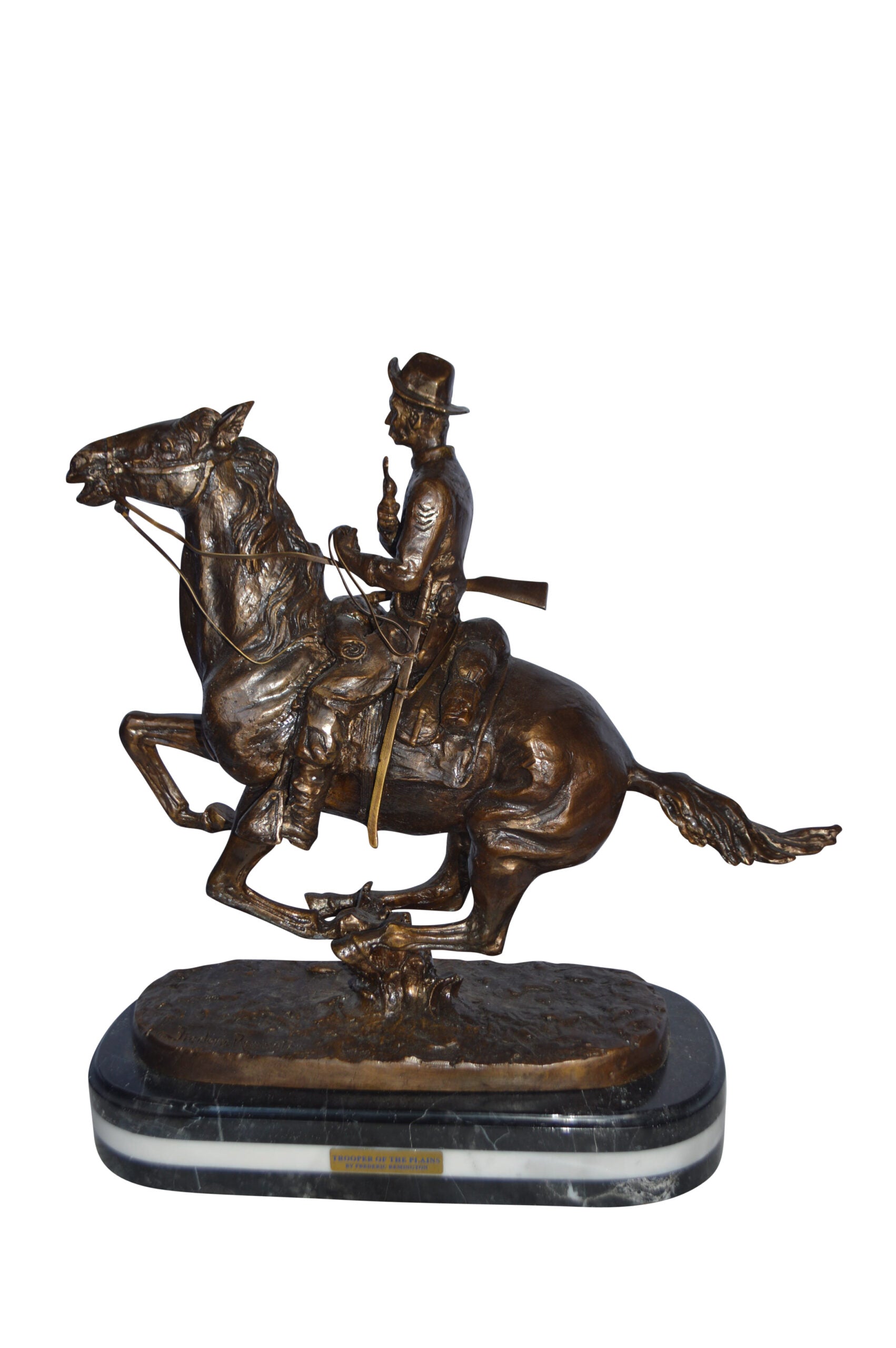Trooper of the plains Bronze replica by Remington - Size: 20"L x 8"W x 21"H.