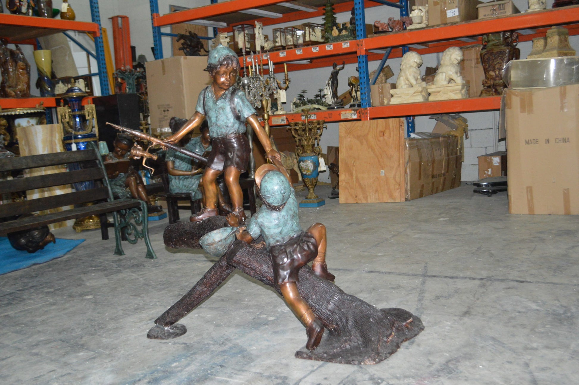 SKU:TwoBoysFishingonTreeLogBronze1138