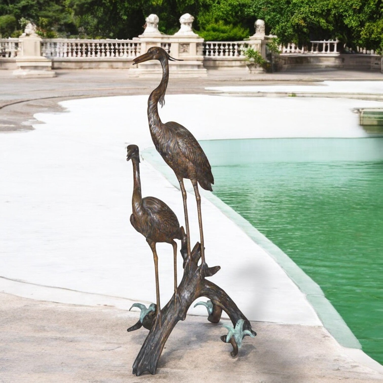 Two Herons on a three Bronze Fountain Statue - Size: 32"L x 24"W x 67"H.