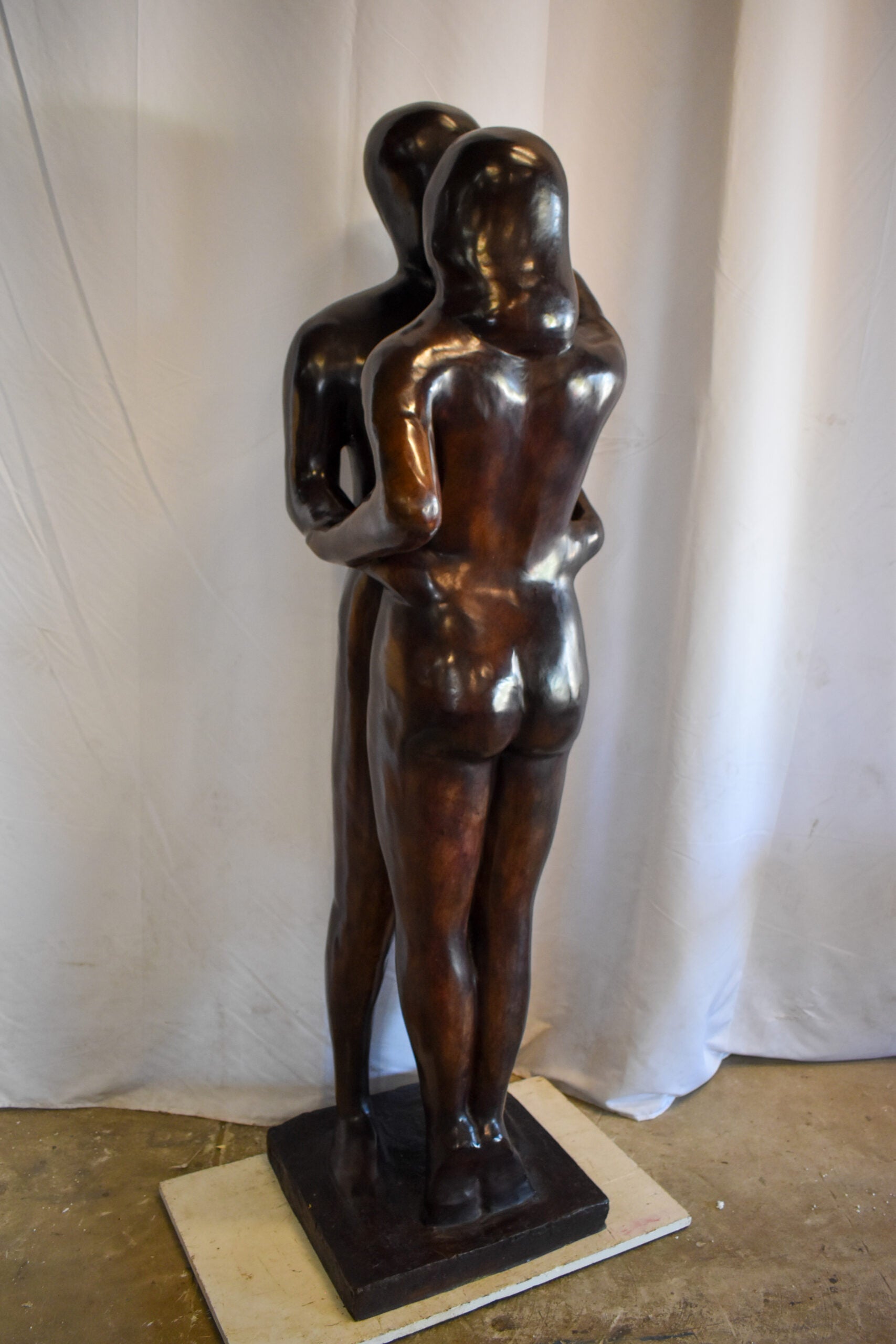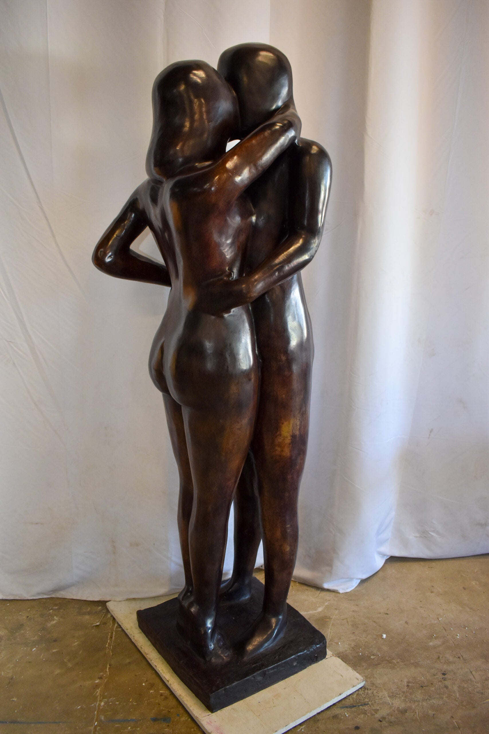 Two Lovers Embracing Standing Up Bronze Statue 22" x 19" x 73"H