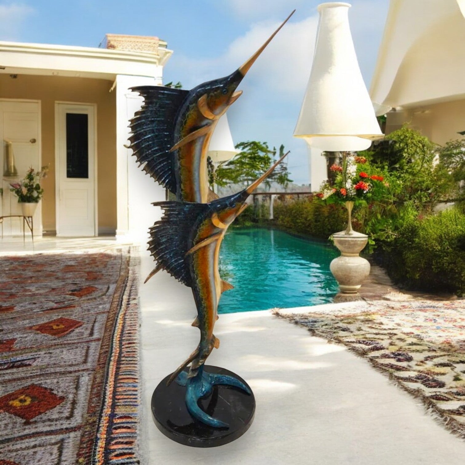 Two Sailfish 56"H Bronze Statue On A Marble Base