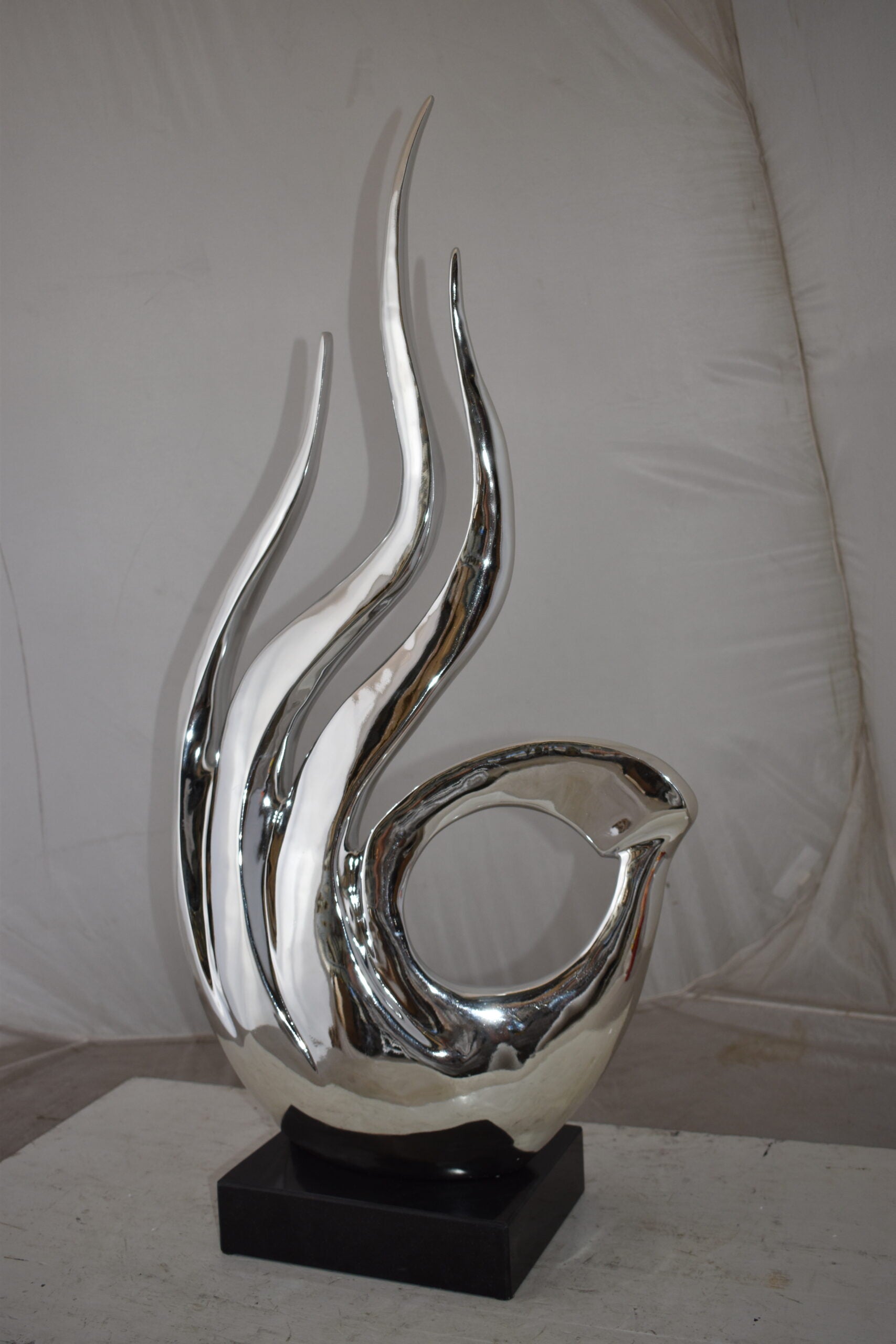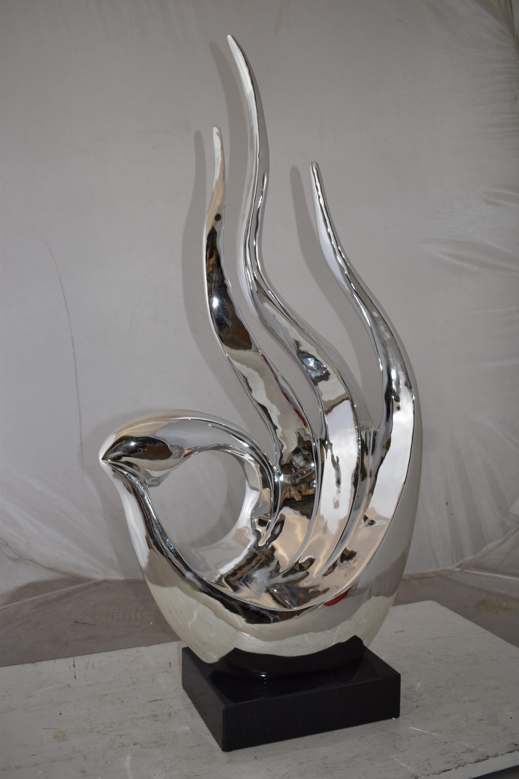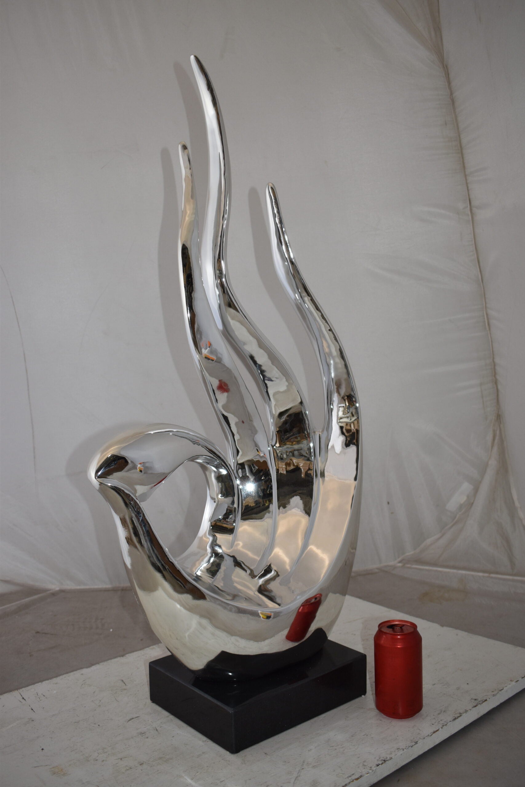 Unique Abstract Silver Finish Resin Statue Size: 19" x 11" x 36"H