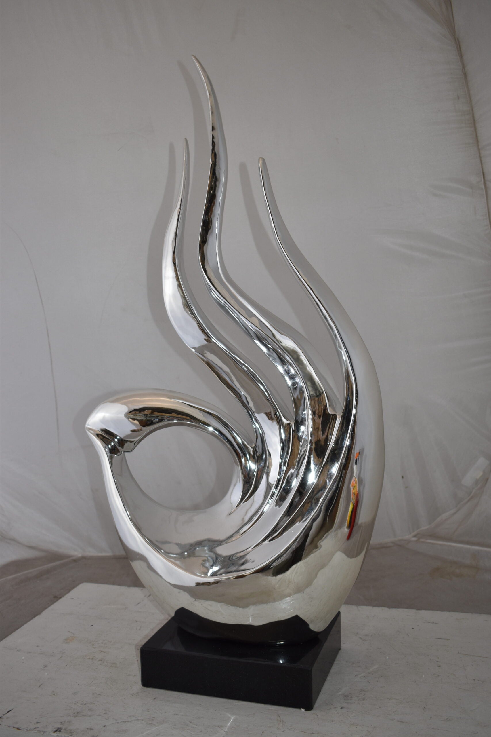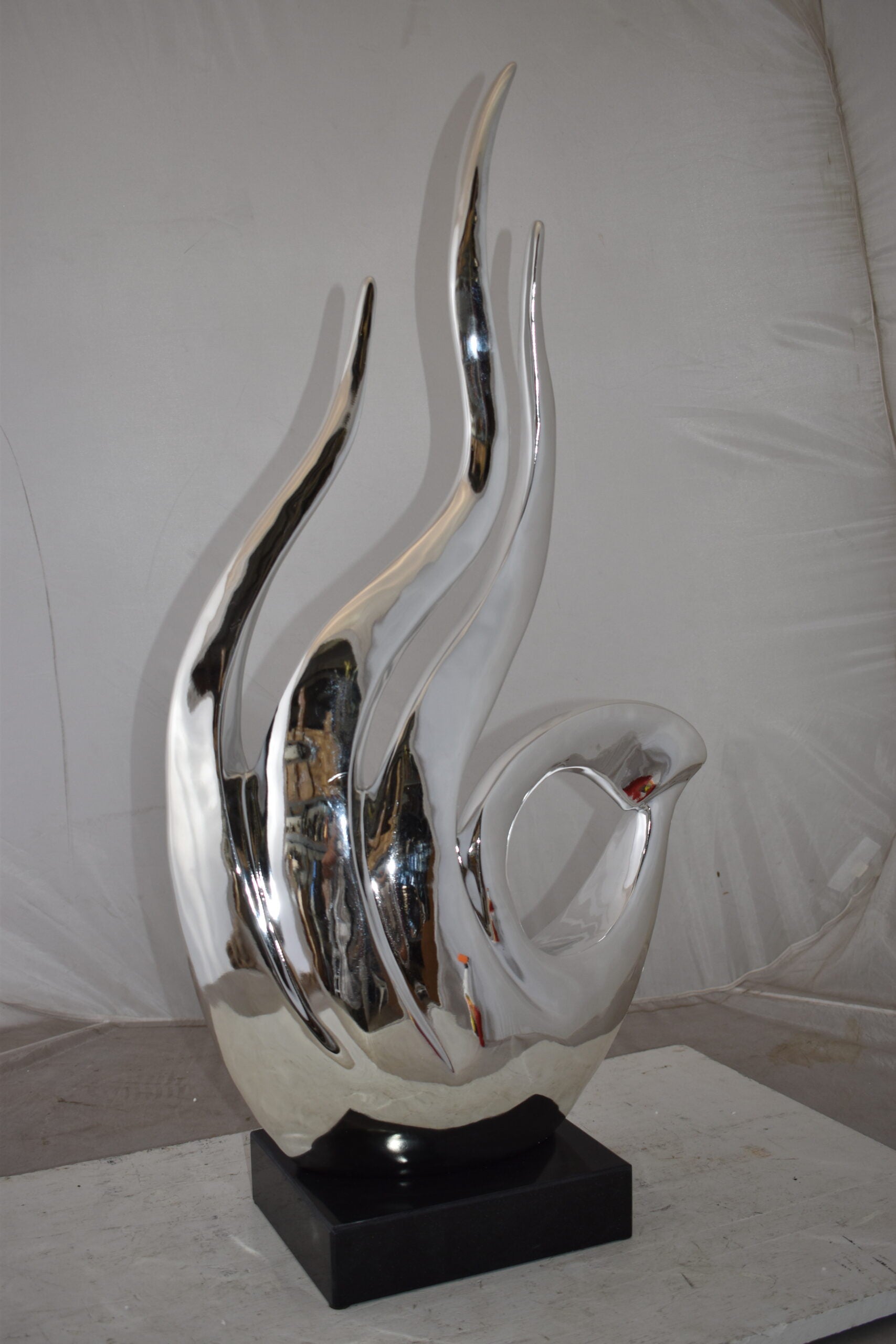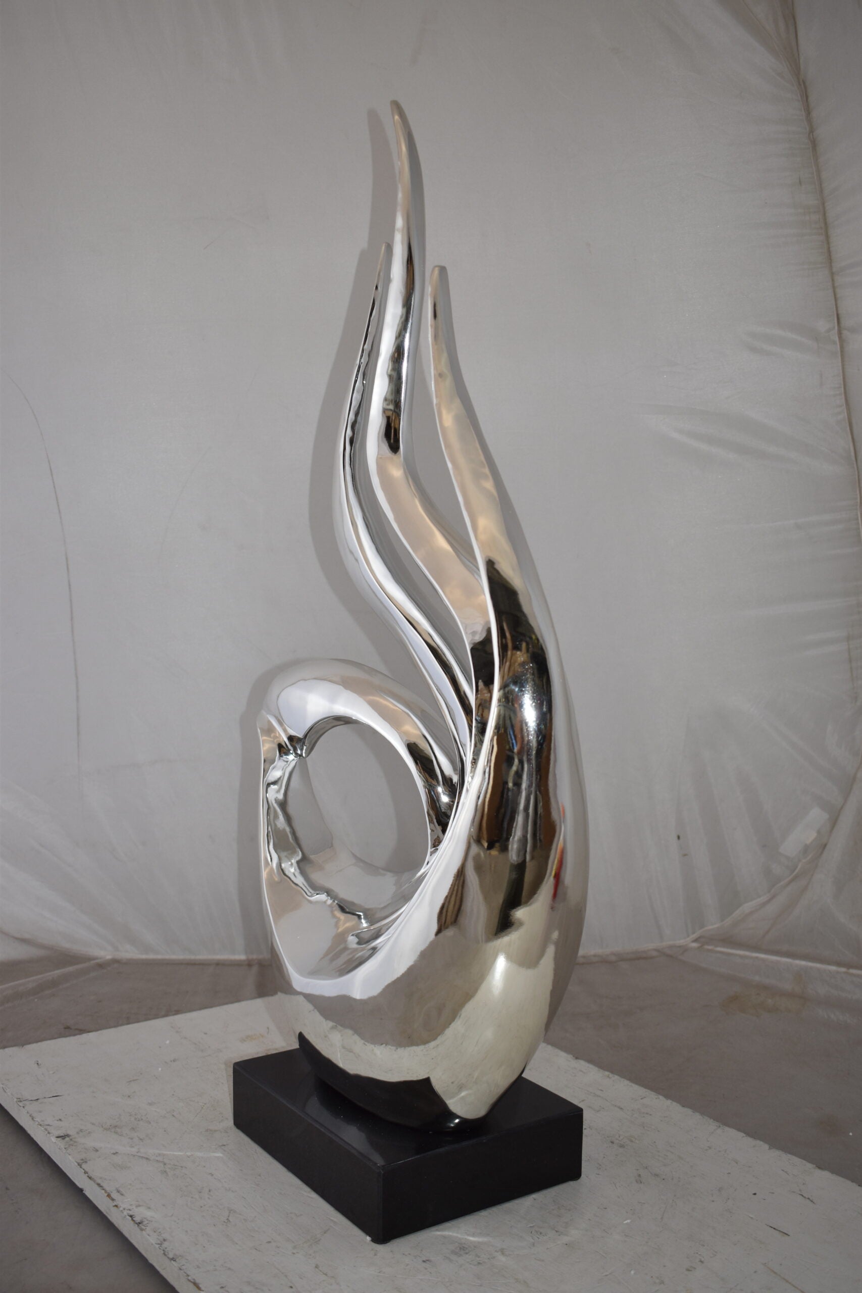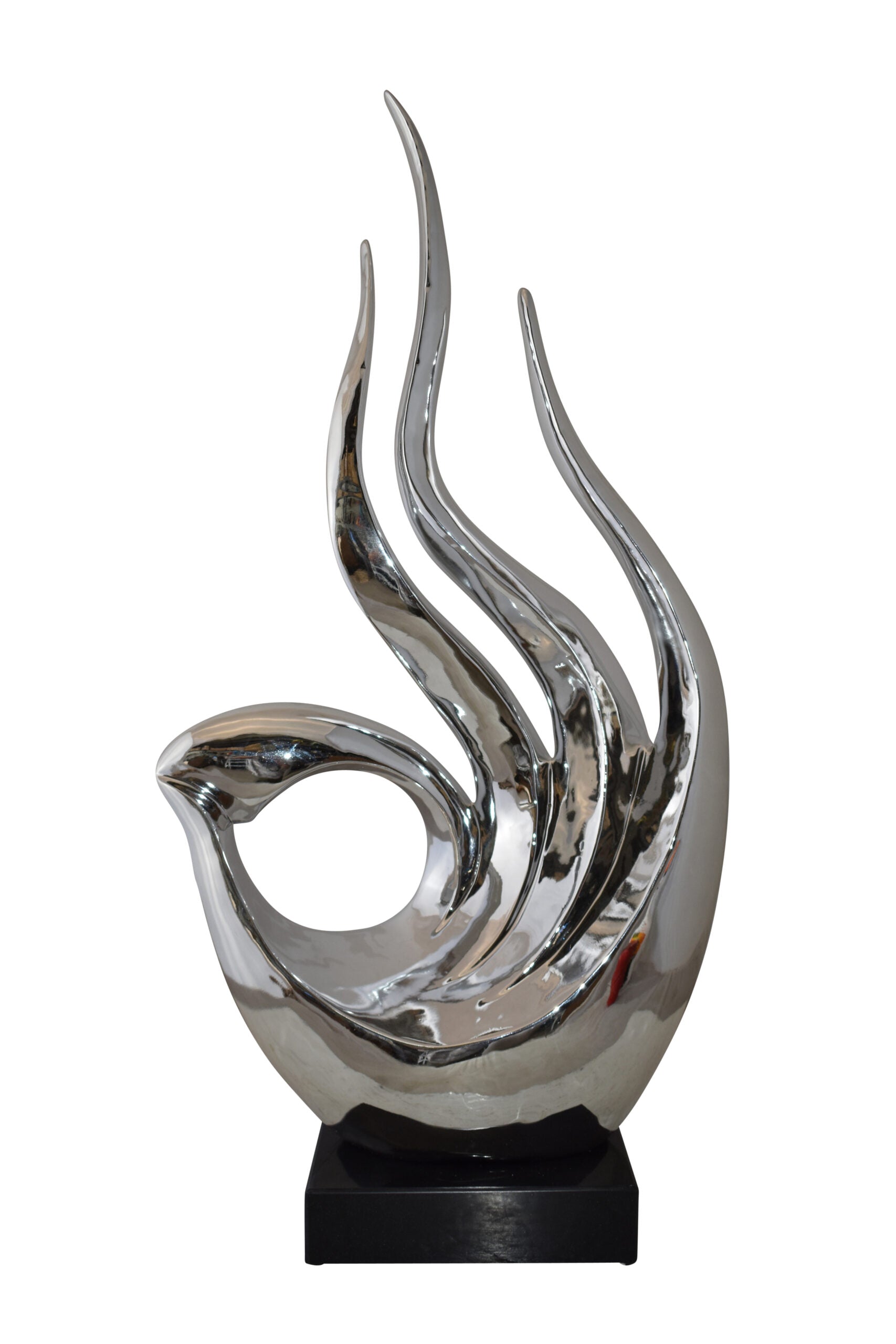 Unique Abstract Silver Finish Resin Statue Size: 19" x 11" x 36"H