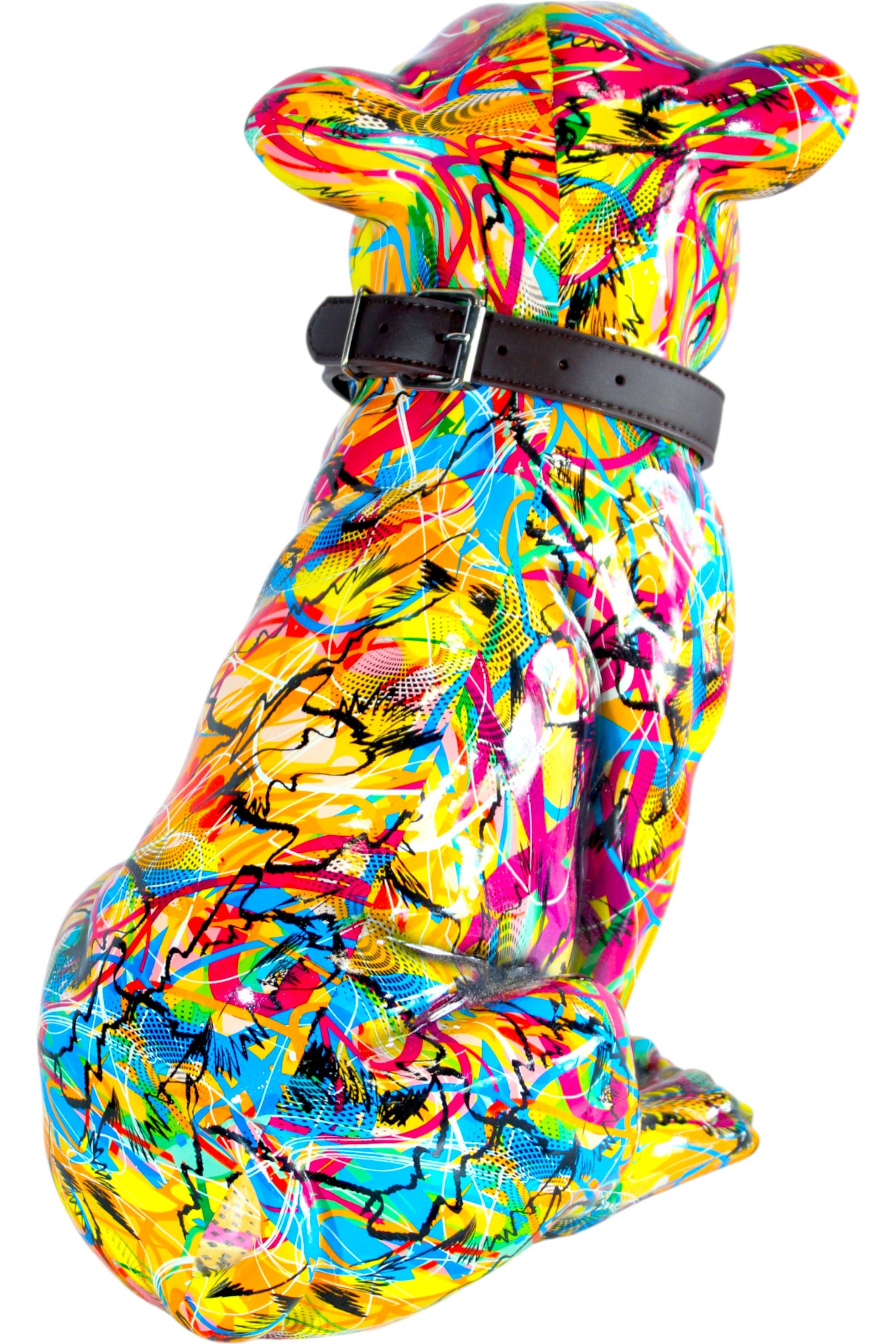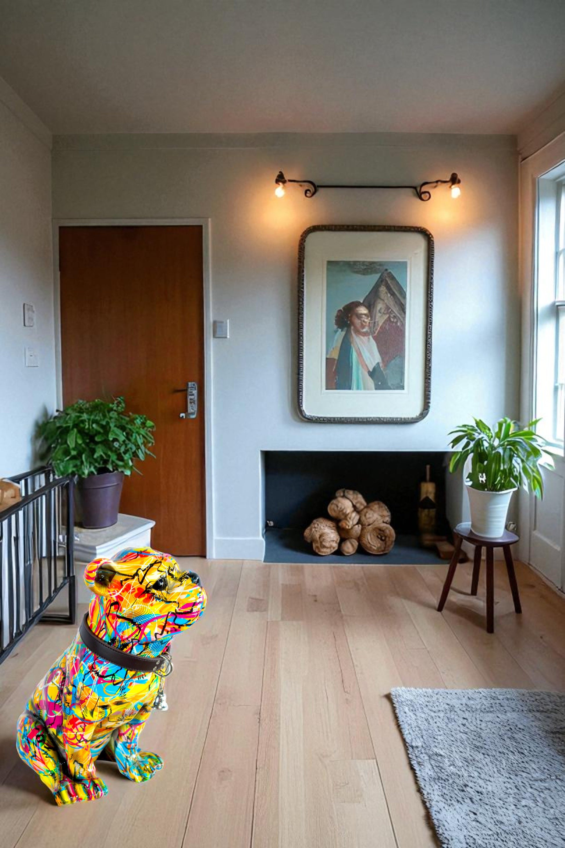 Bold and playful this bulldog statue adds a burst of color to any room. Crafted from resin with a glossy finish and a pop art pattern in lively tones, it brings modern energy to shelves consoles and office spaces. Sculpted details and a collar accent complete the look. Place it in an entry living room or studio to spark conversation. Durable resin construction. Clean with a soft dry cloth. A great pick for dog lovers and contemporary art fans. Size: 18"L x 11"W x 19"H. Weight: 8Lb Bold pop art bulldog adds playful color and modern energy to any room Crafted from durable resin with a glossy finish for a vibrant stand out look Sculpted details and a collar accent create a lively contemporary conversation piece Versatile decor for entry living room office or studio fits shelves consoles and desks Easy care clean with a soft dry cloth for long lasting display and everyday enjoyment Size 18 L x 11 W x 19 H weight 8 lb great gift for dog lovers and modern art fans