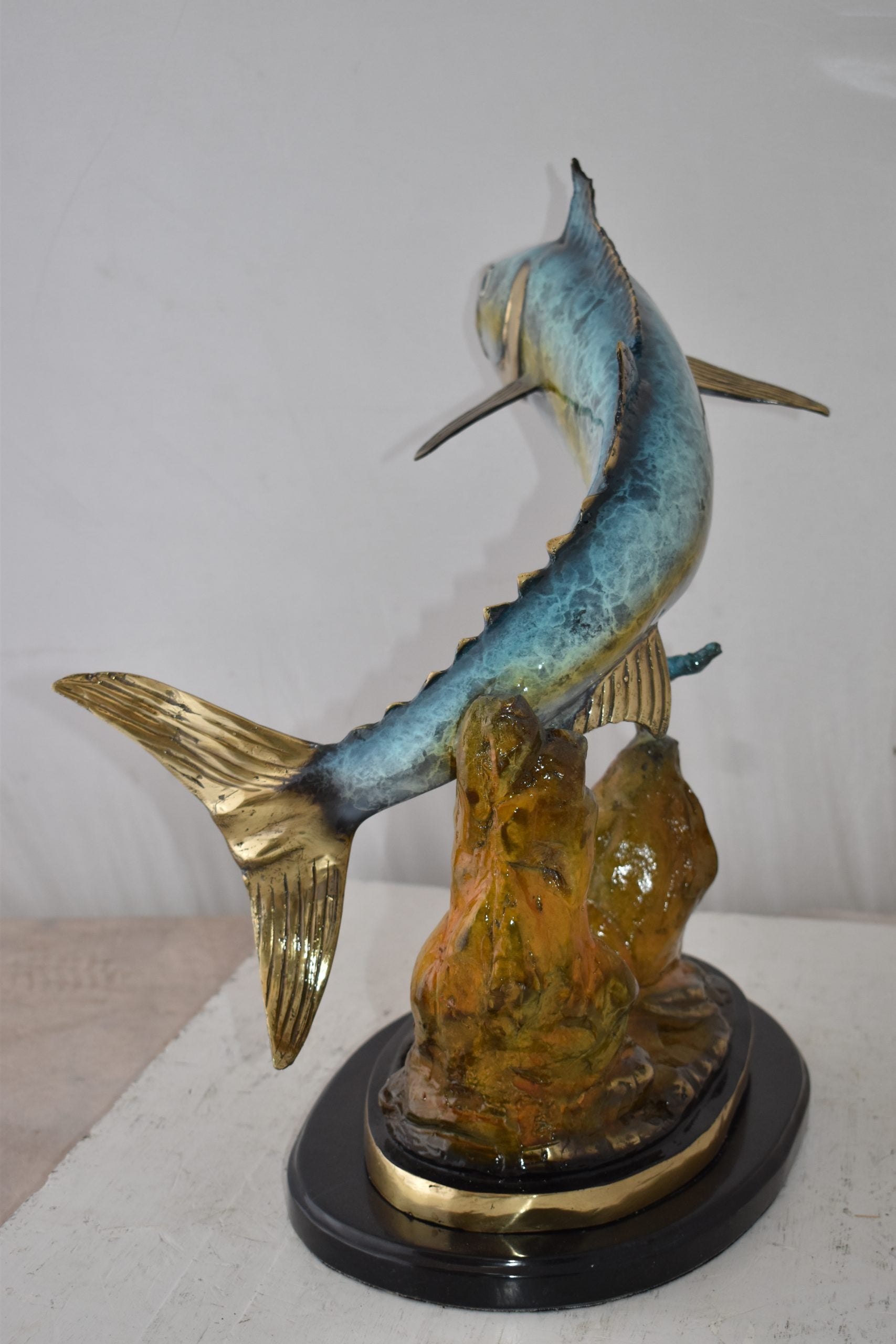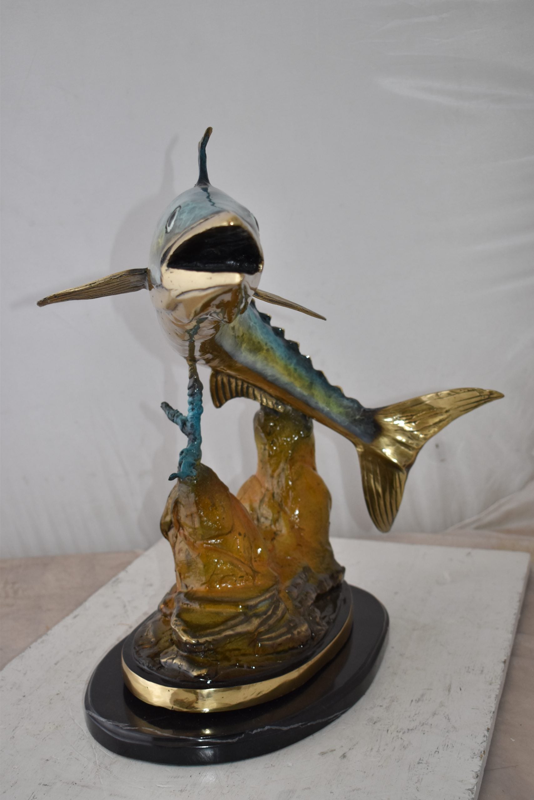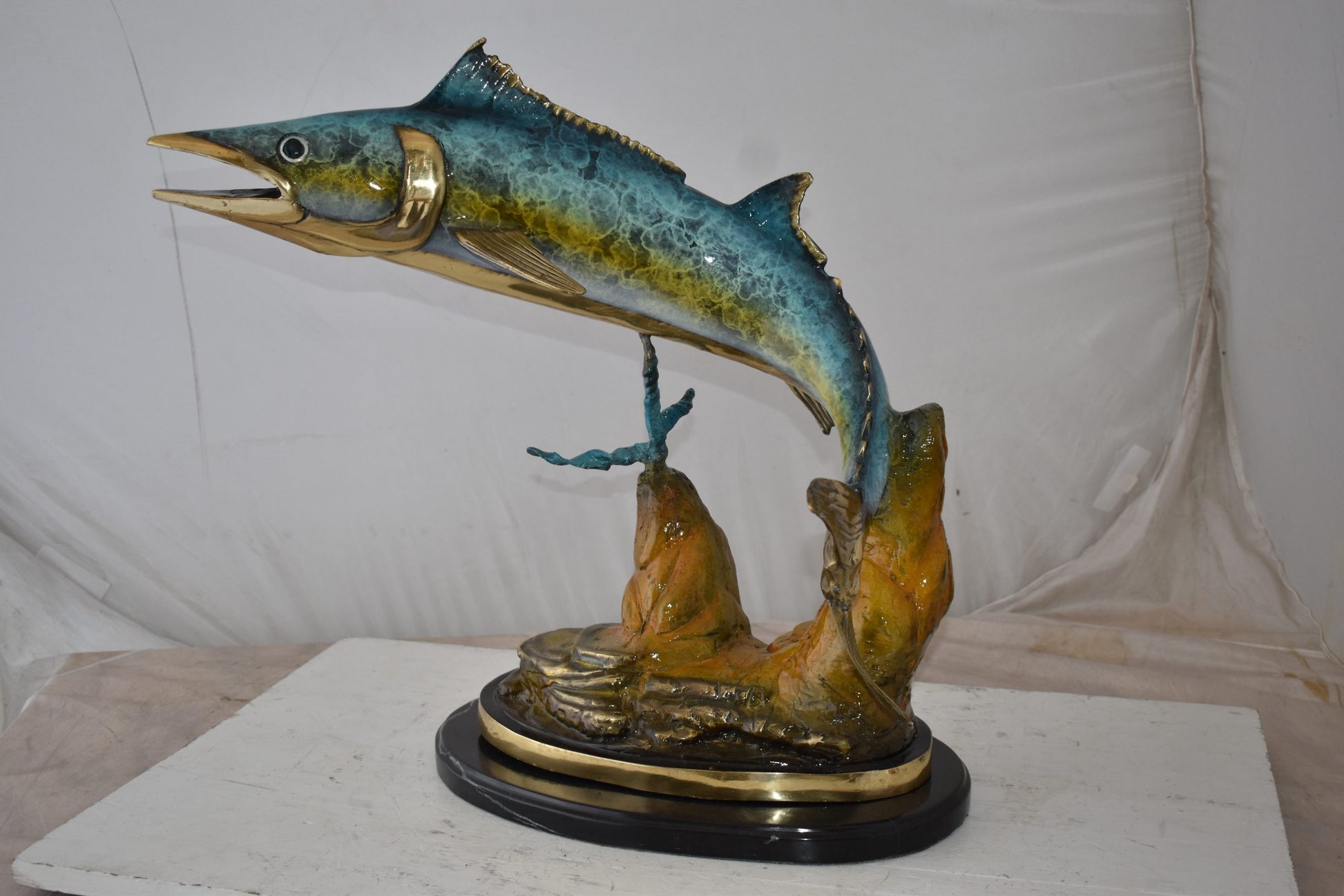 Wahoo Fish Swimming in The Ocean Bronze Statue Size: 17" x 25" x 20"H
