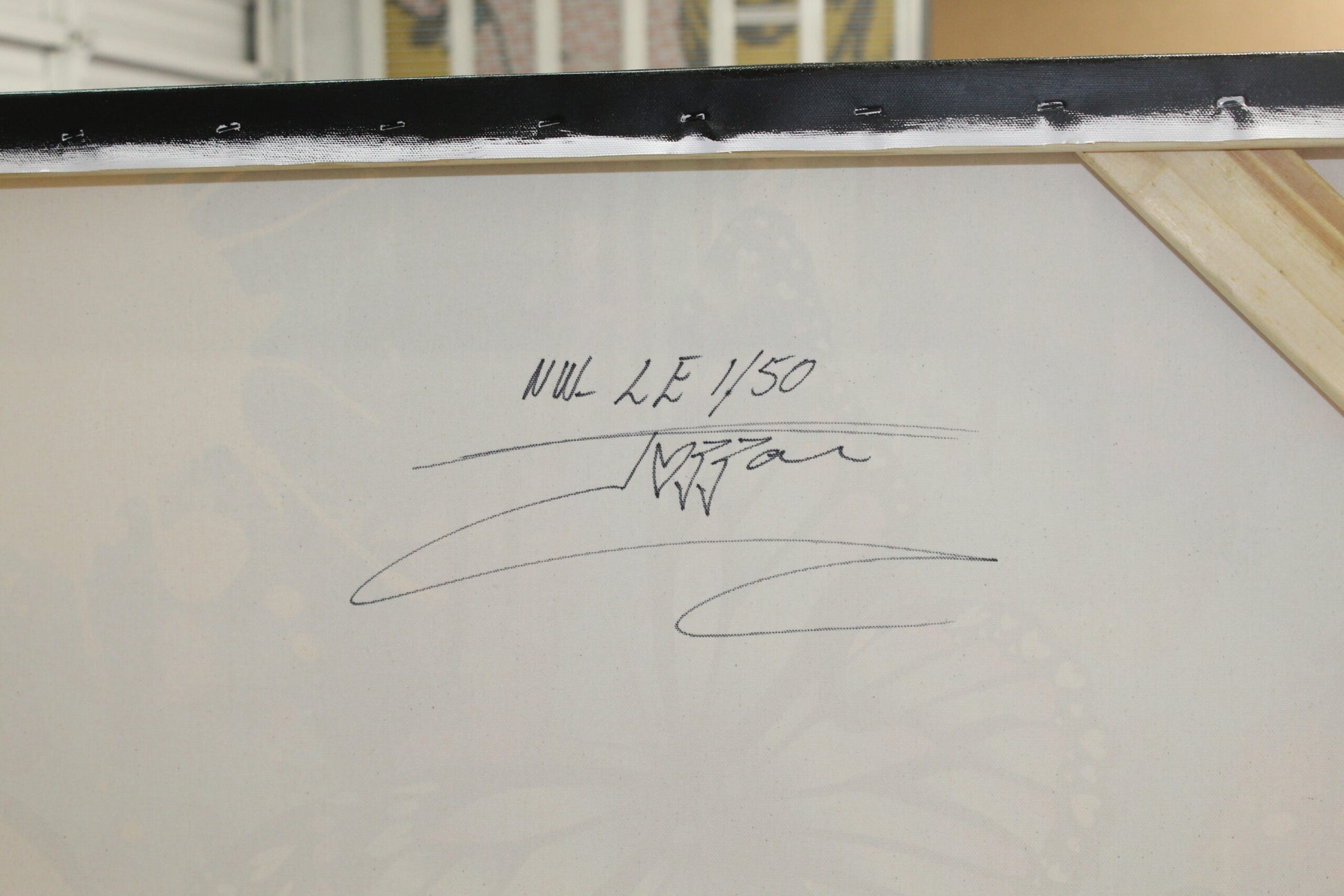 Wedding Kiss, A Wall Art Painting by Jozza, Original Acrylic print on Canvas, hand signed and numbered by the artist. Jozza, born in 1958 in Hidrolandia, a small town located in central Brazil, one of the most exciting Pop Artists in the world today, creates his artistic vision with vibrant imagery and combinations of bright color and hard-edged abstract subjects. This artwork comes gallery wrapped, stretched ready to hang Size: 40"L x 40"W x 1"H. Weight is: 5Lb