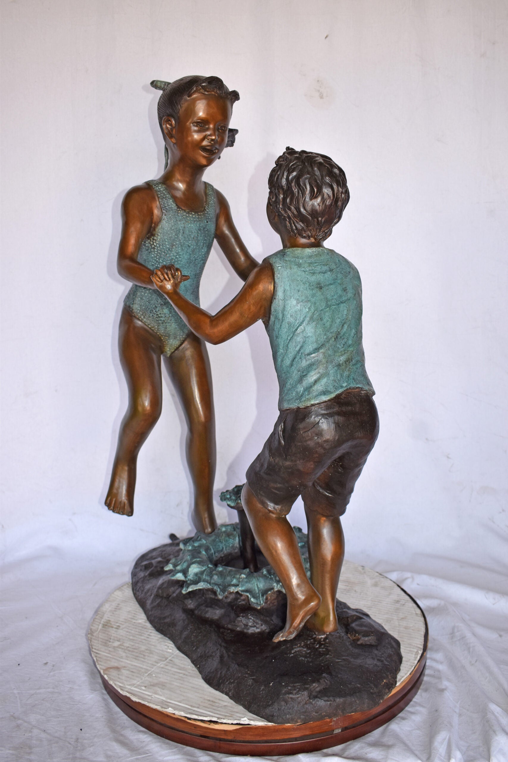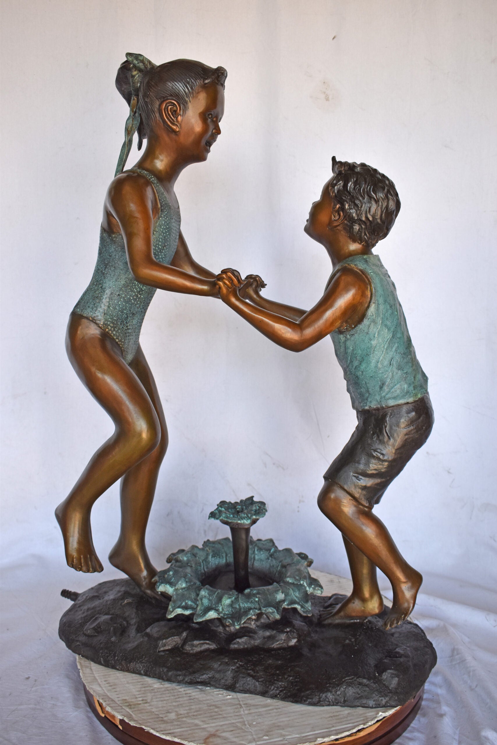 Young Boy and girl dancing around fountain bronze statue-Size 28" x 13" x 38"H
