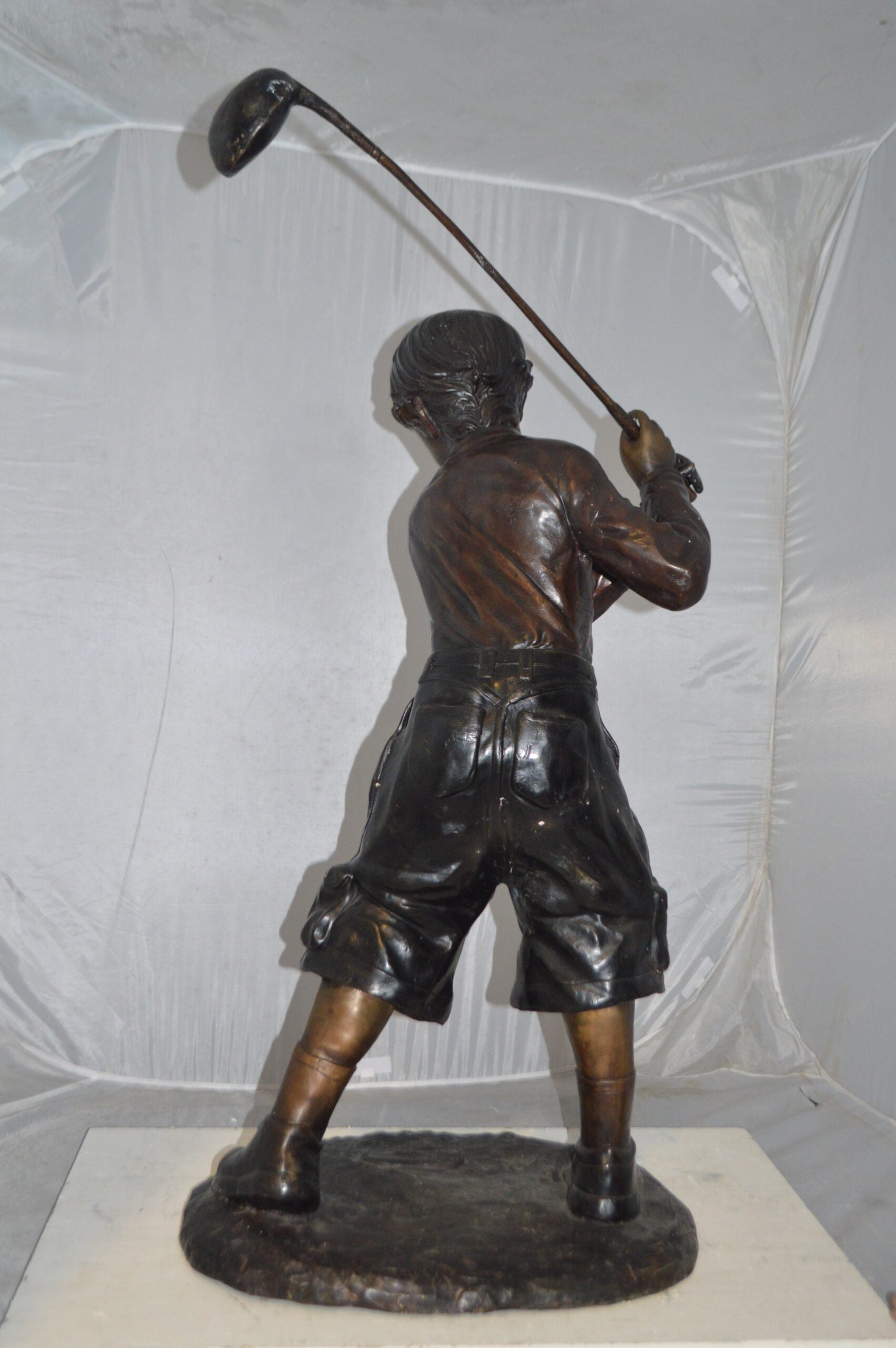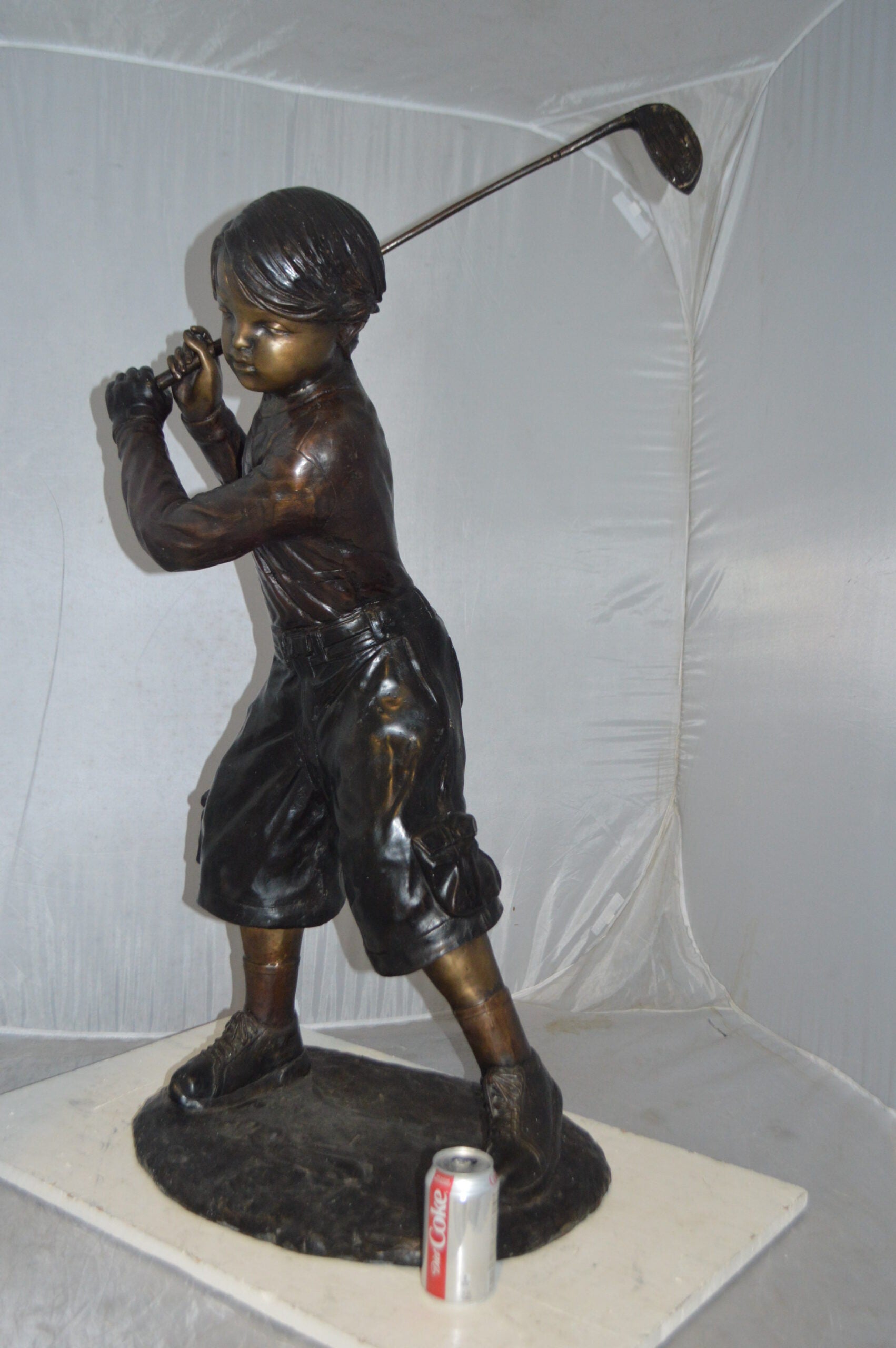 Young Boy Plays Golf Bronze Statue - Size: 19"L x 21"W x 45"H.