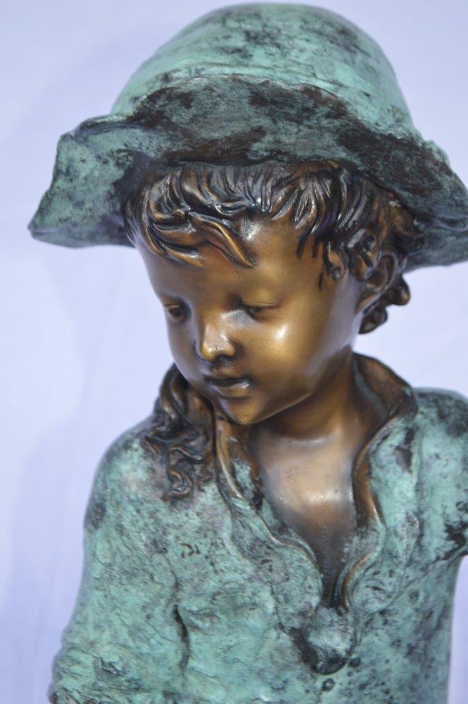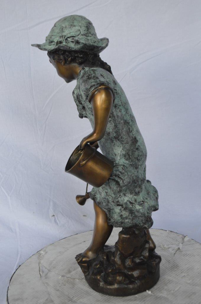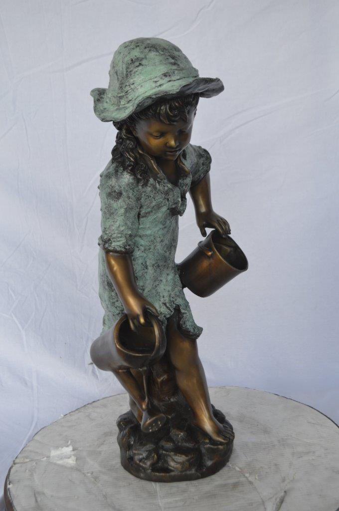 Young girl gardening bronze fountain statue - Size: 12"L x 14"W x 28"H.