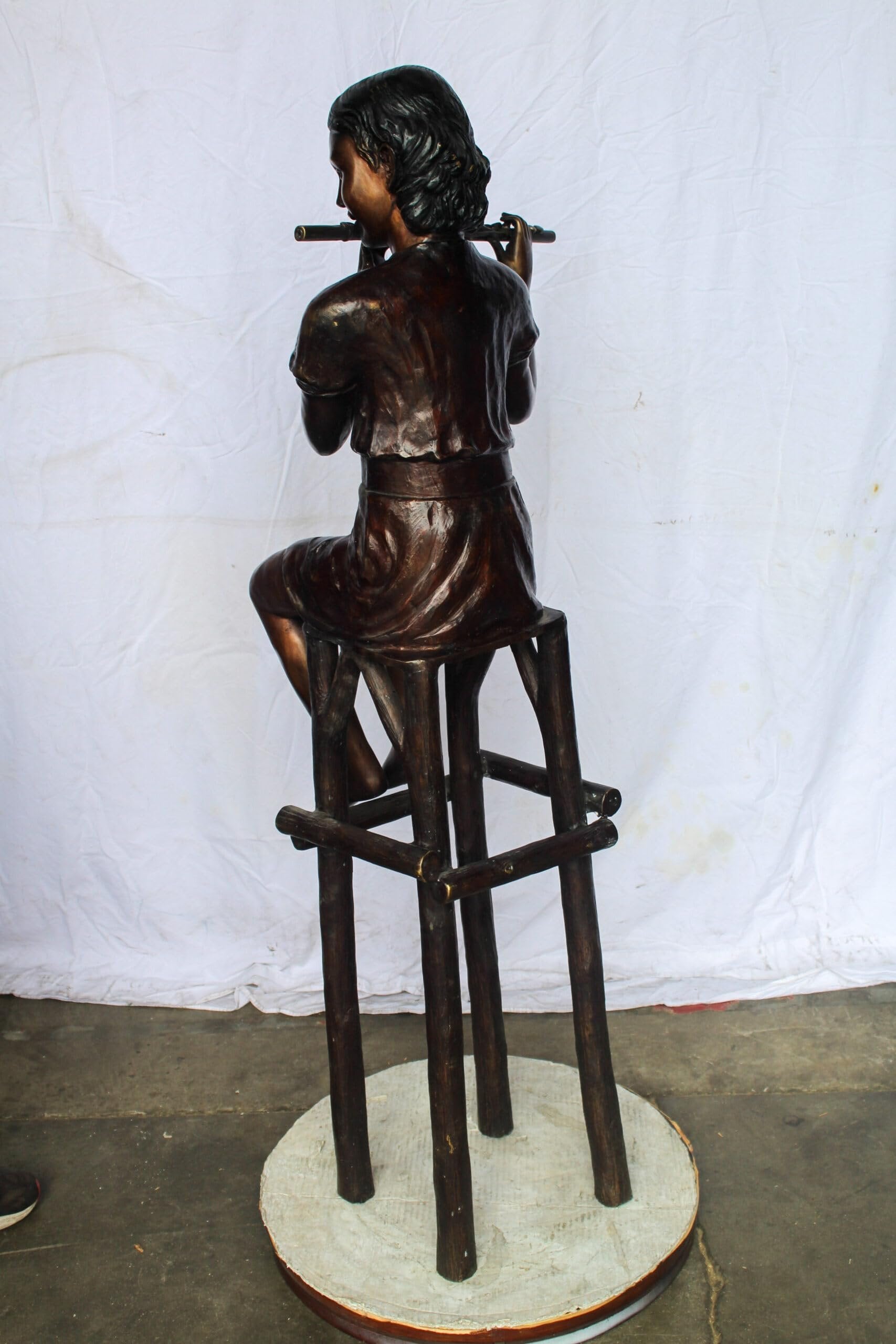 Young Girl Playing the Flute sitting on a Chair Bronze Statue 24" x 16" x 58"H