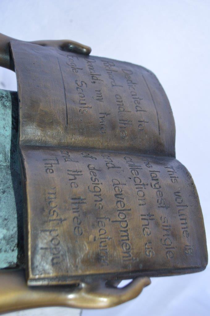 Magnificent large size bronze of a girl sitting and reading a book. The joy of youth, lost in a book and putting thoughts to paper, will make your landscape come alive. The sculpture tones are finished in a lacquer patina on a heavy bronze base. This is a perfect addition to a home, and reminds us of the simple things in life. Size: 16"L x 12"W x 27"H. Weight is: 38Lb