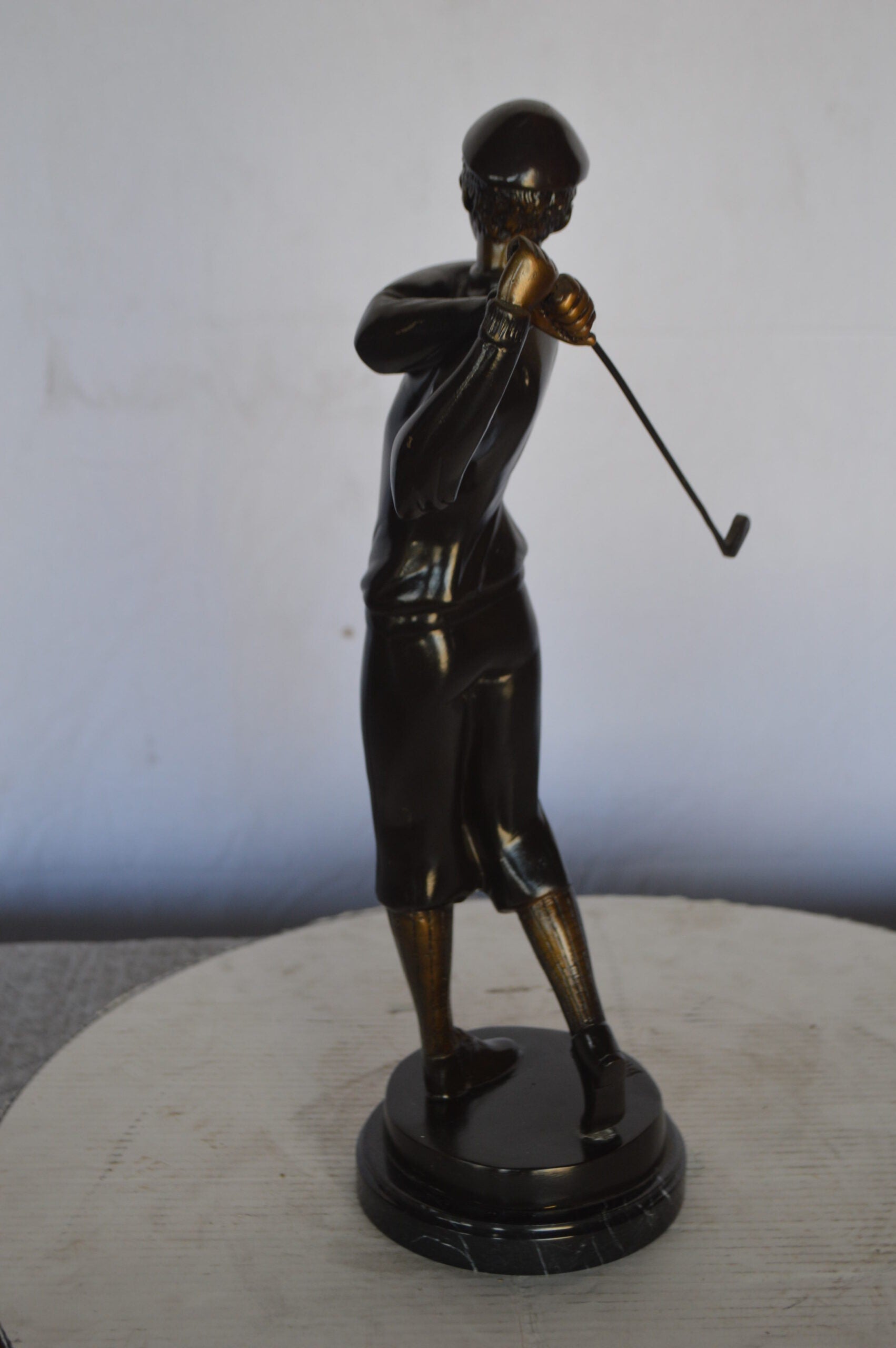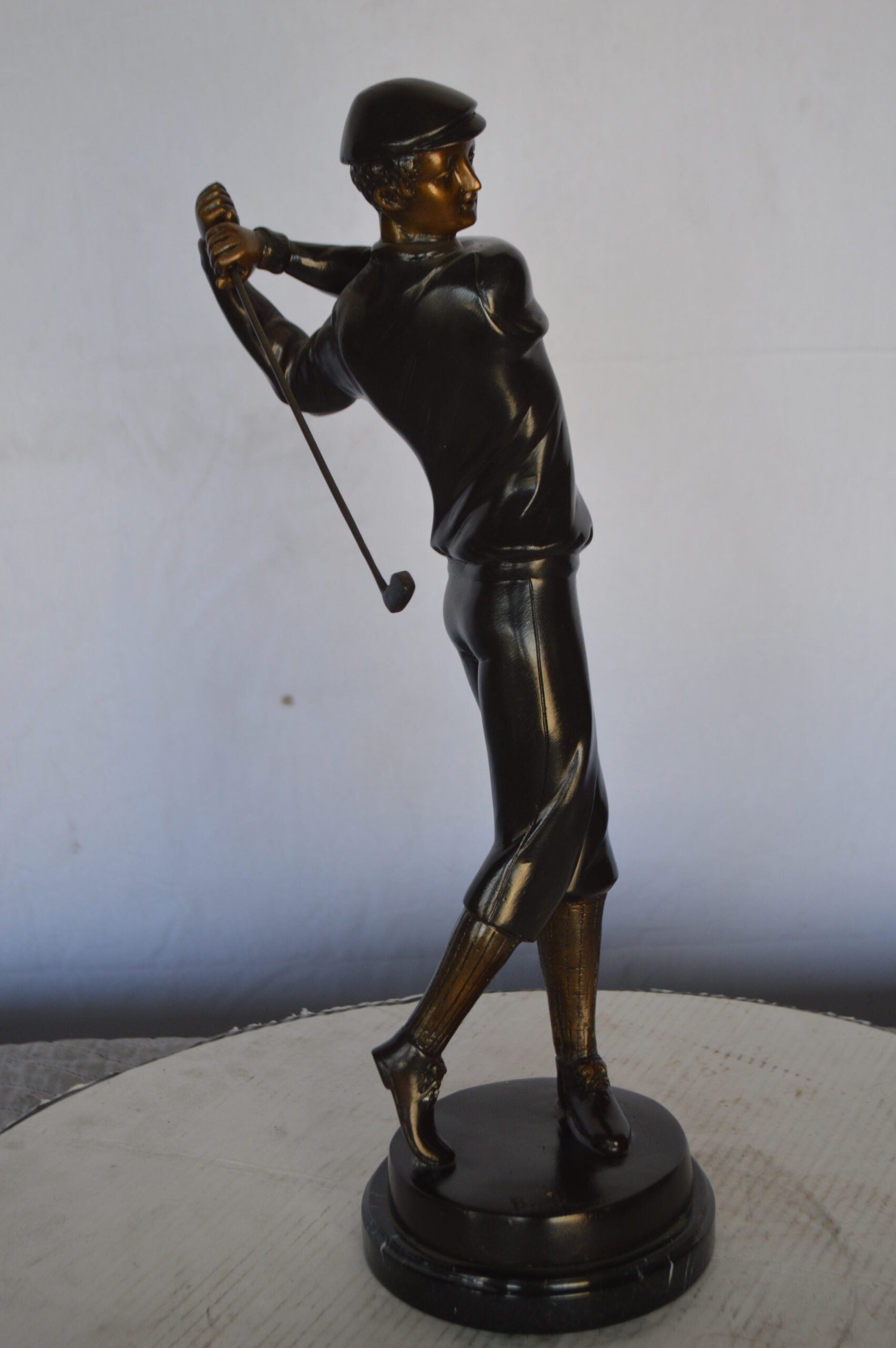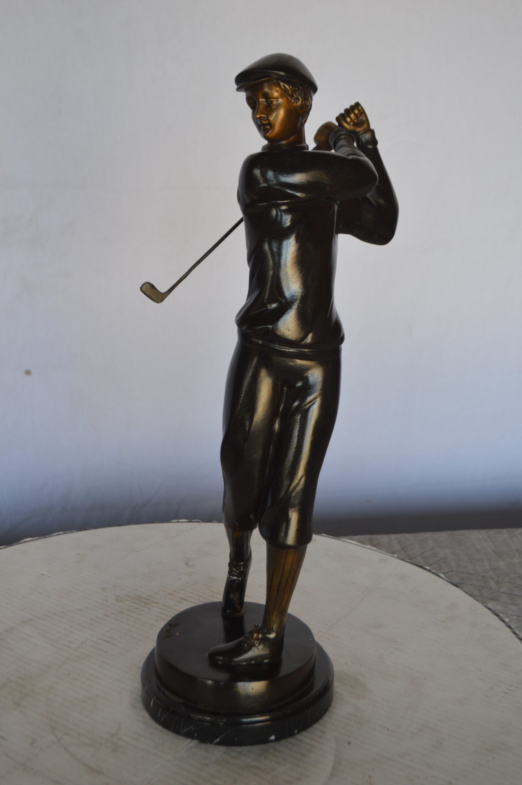 Young Golfer Bronze Statue mounted on a Marble Base - Size: 8"L x 6"W x 19"H.