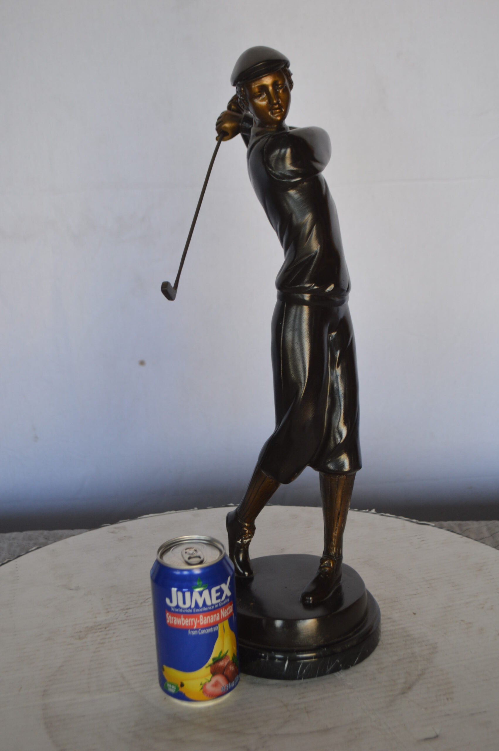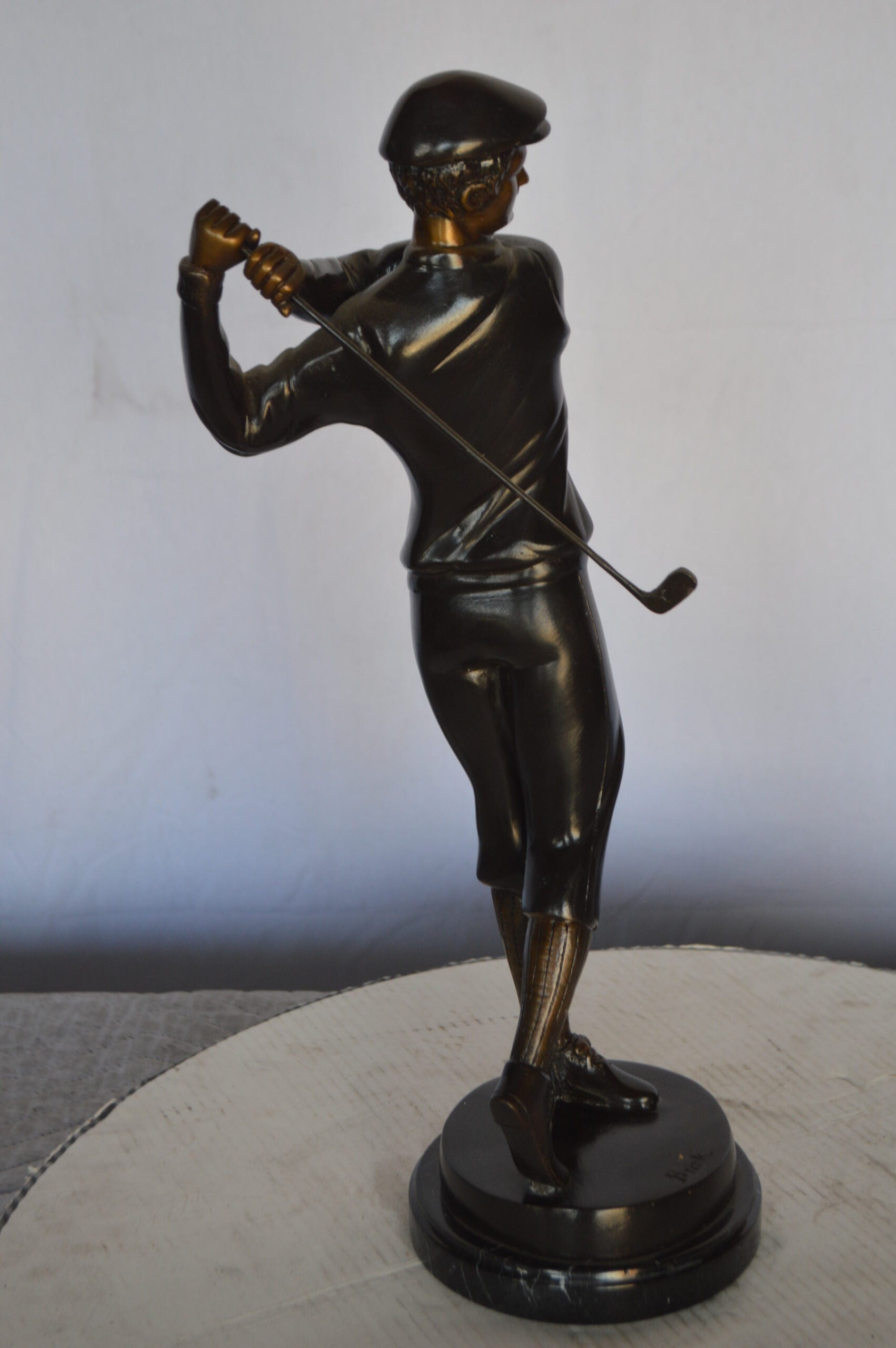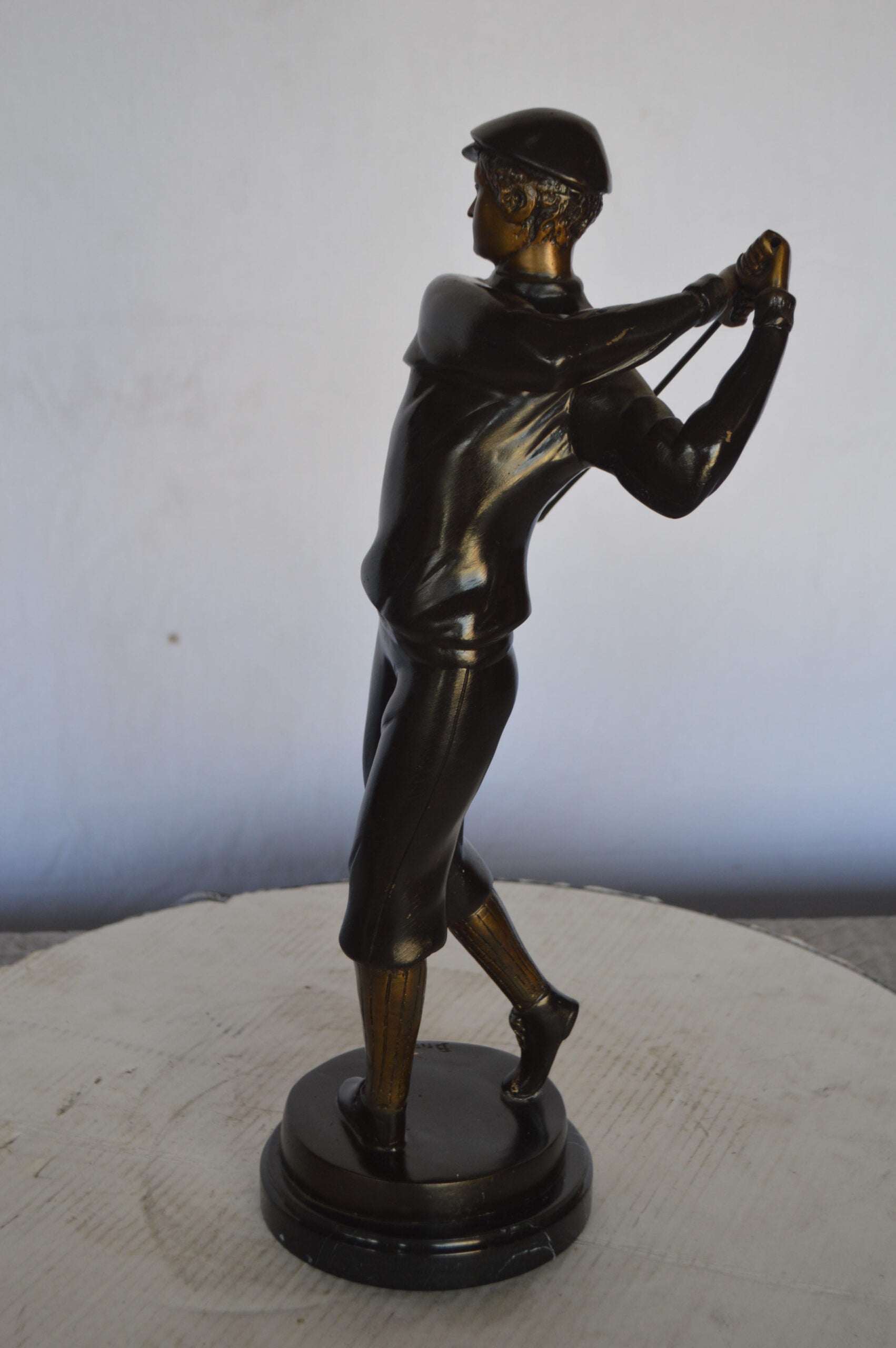 Young Golfer Bronze Statue mounted on a Marble Base - Size: 8"L x 6"W x 19"H.