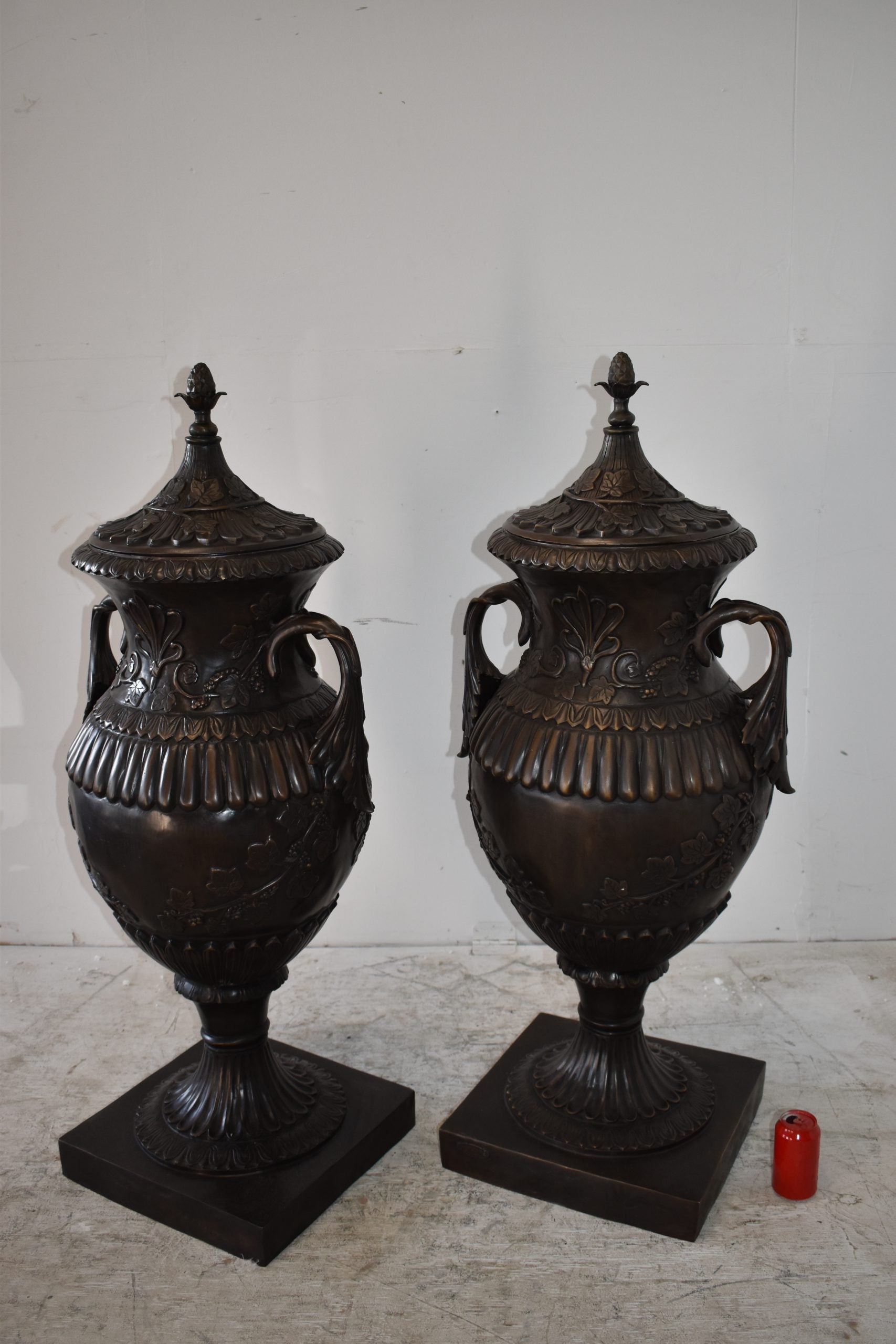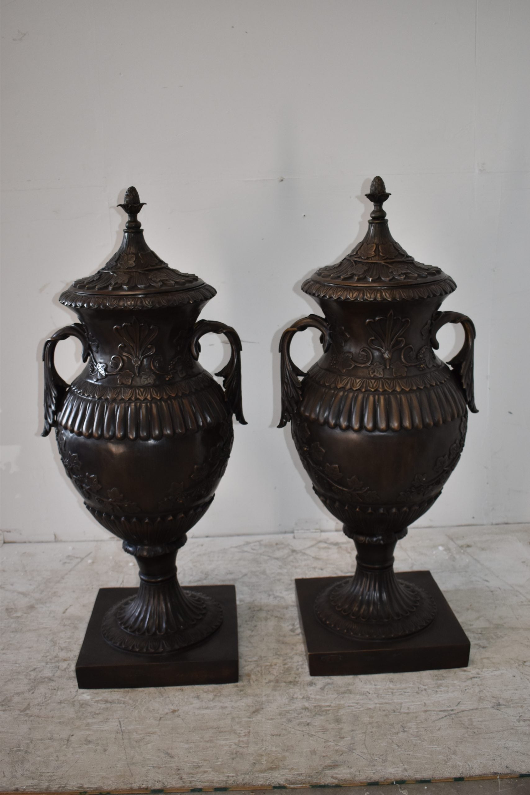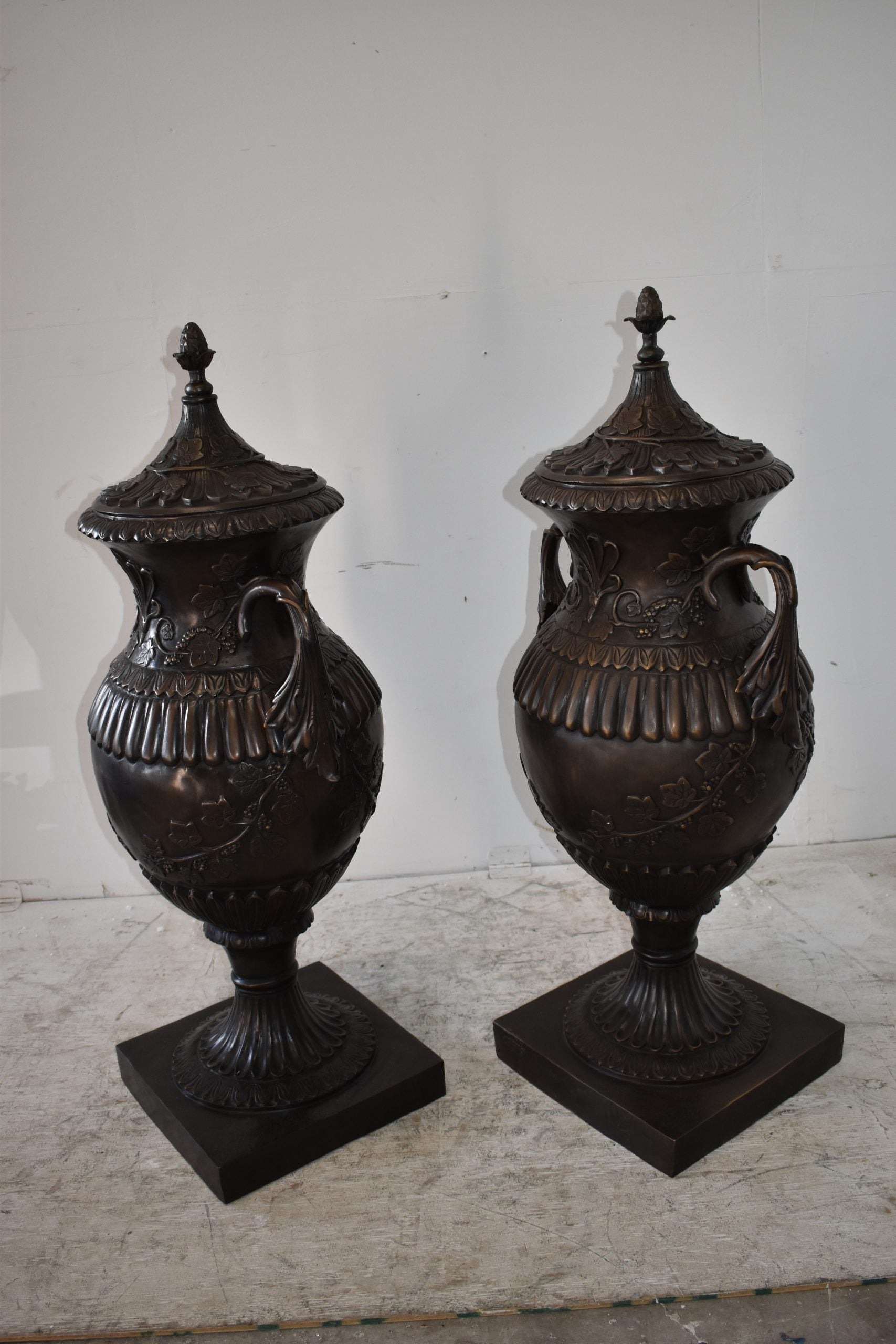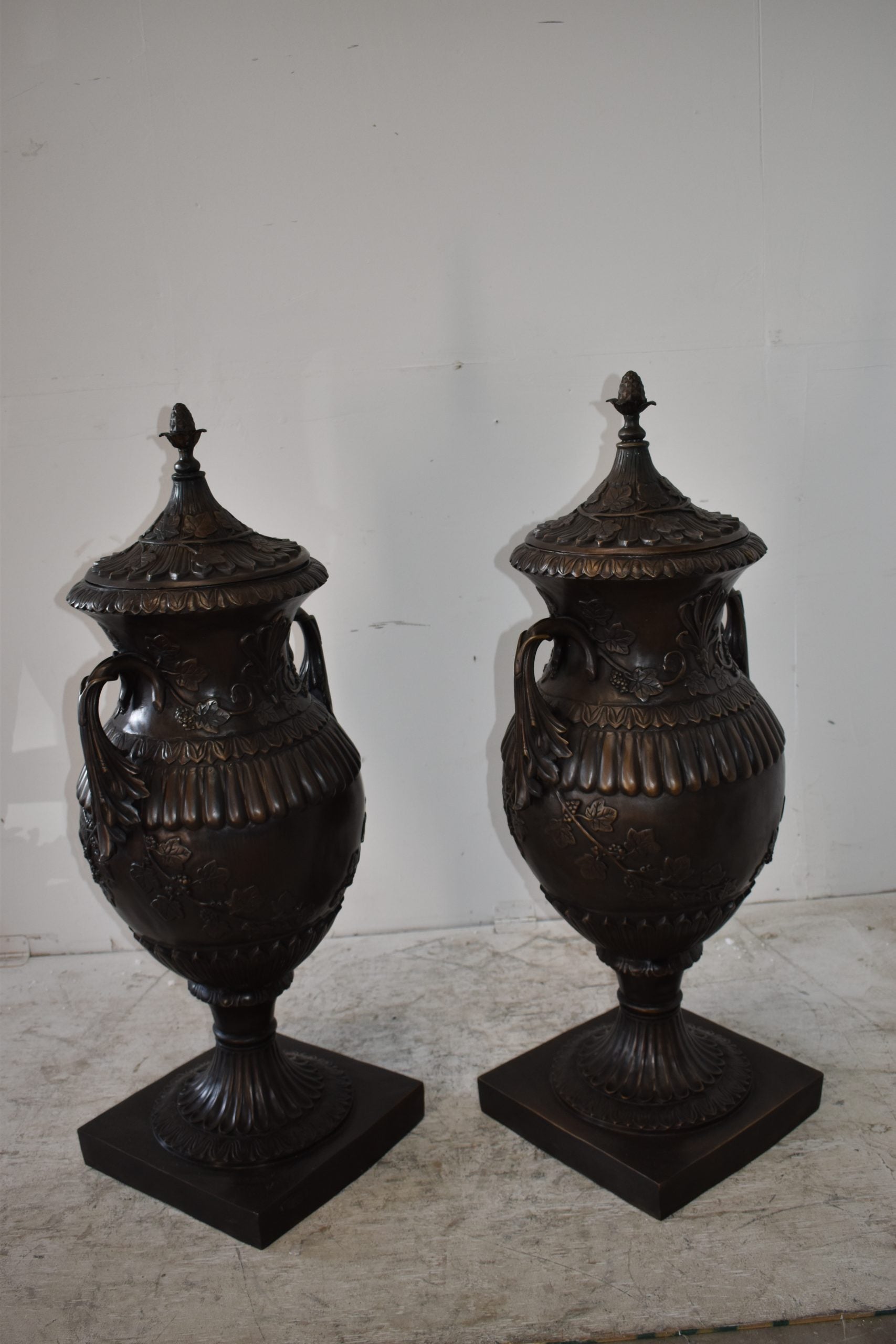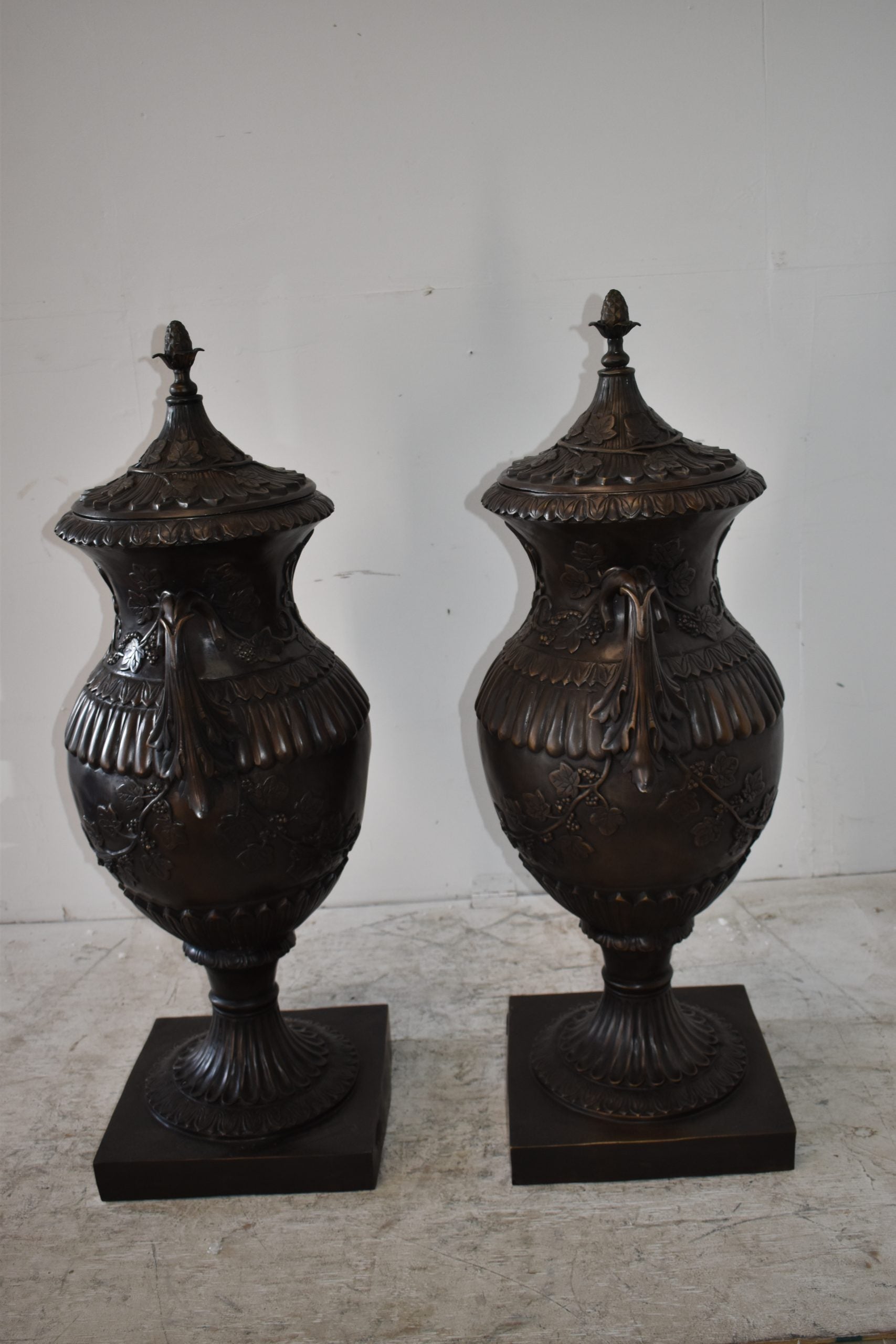 A Pair Of Urns or Vases Made of Pure Bronze Size: 21" x 18" x 47"H