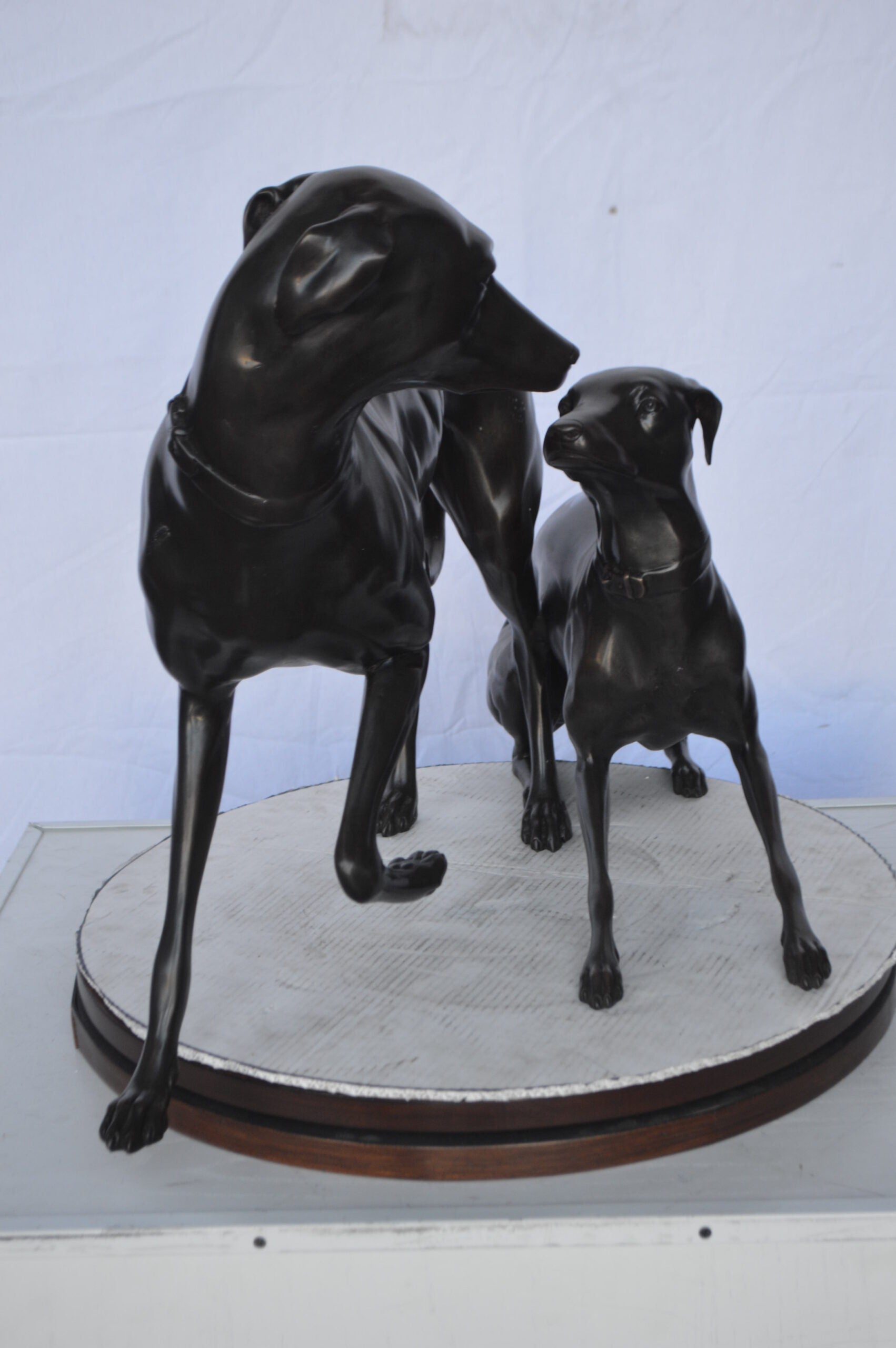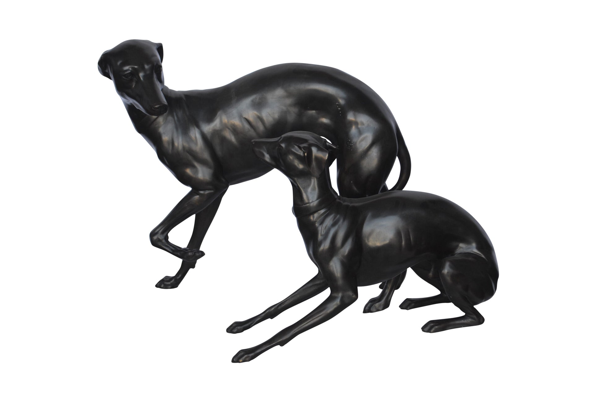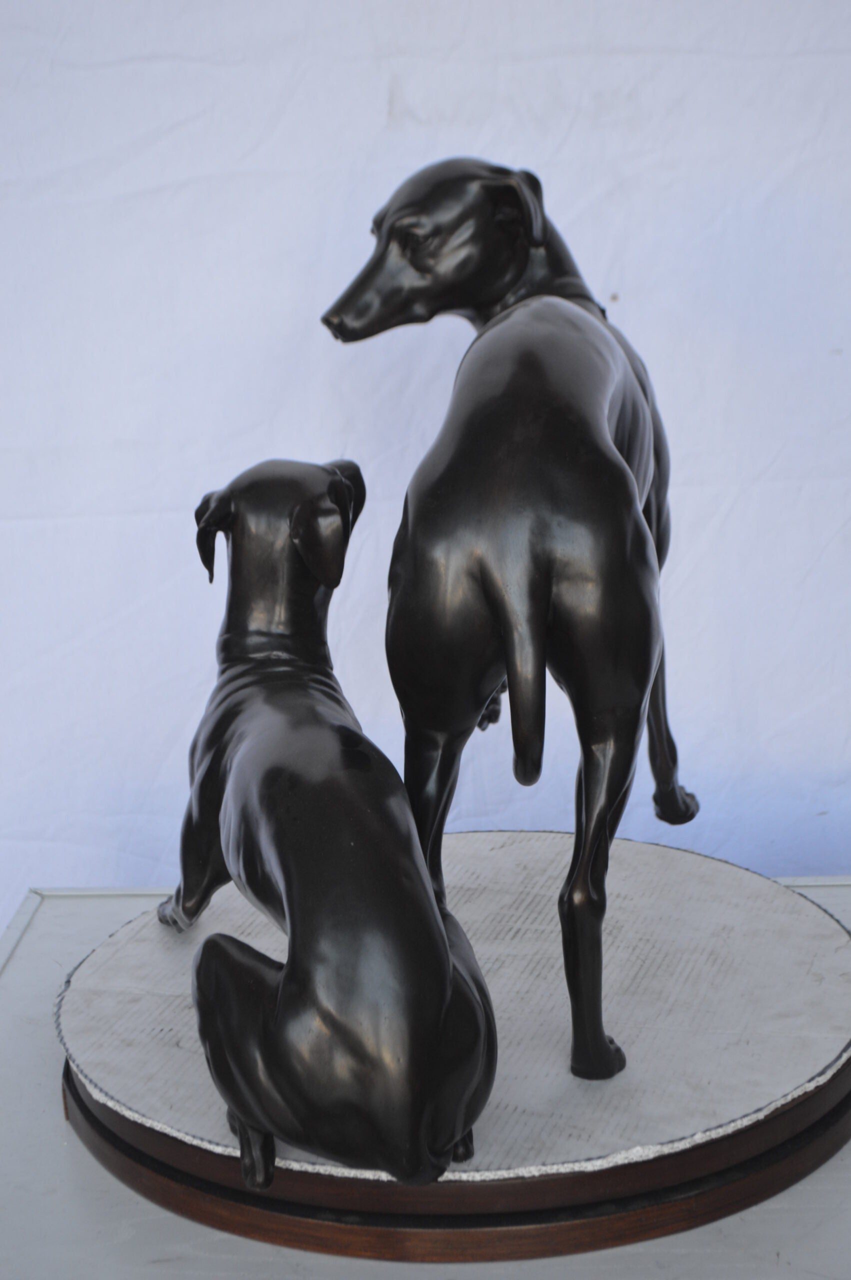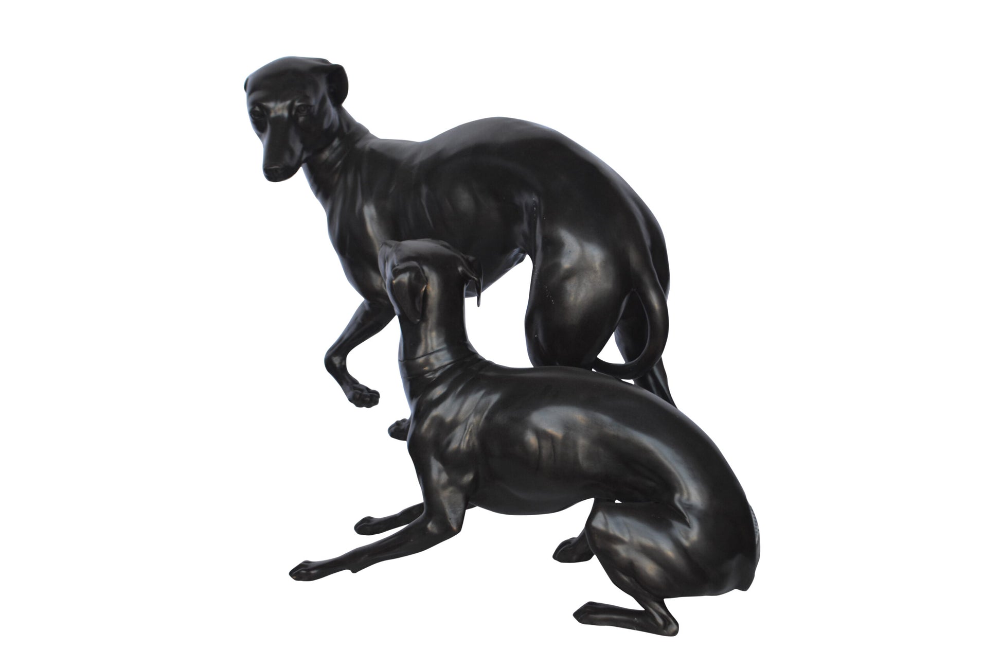 A pair of Whippet Dogs Bronze Statue - Size: 32"L x 17"W x 23"H.