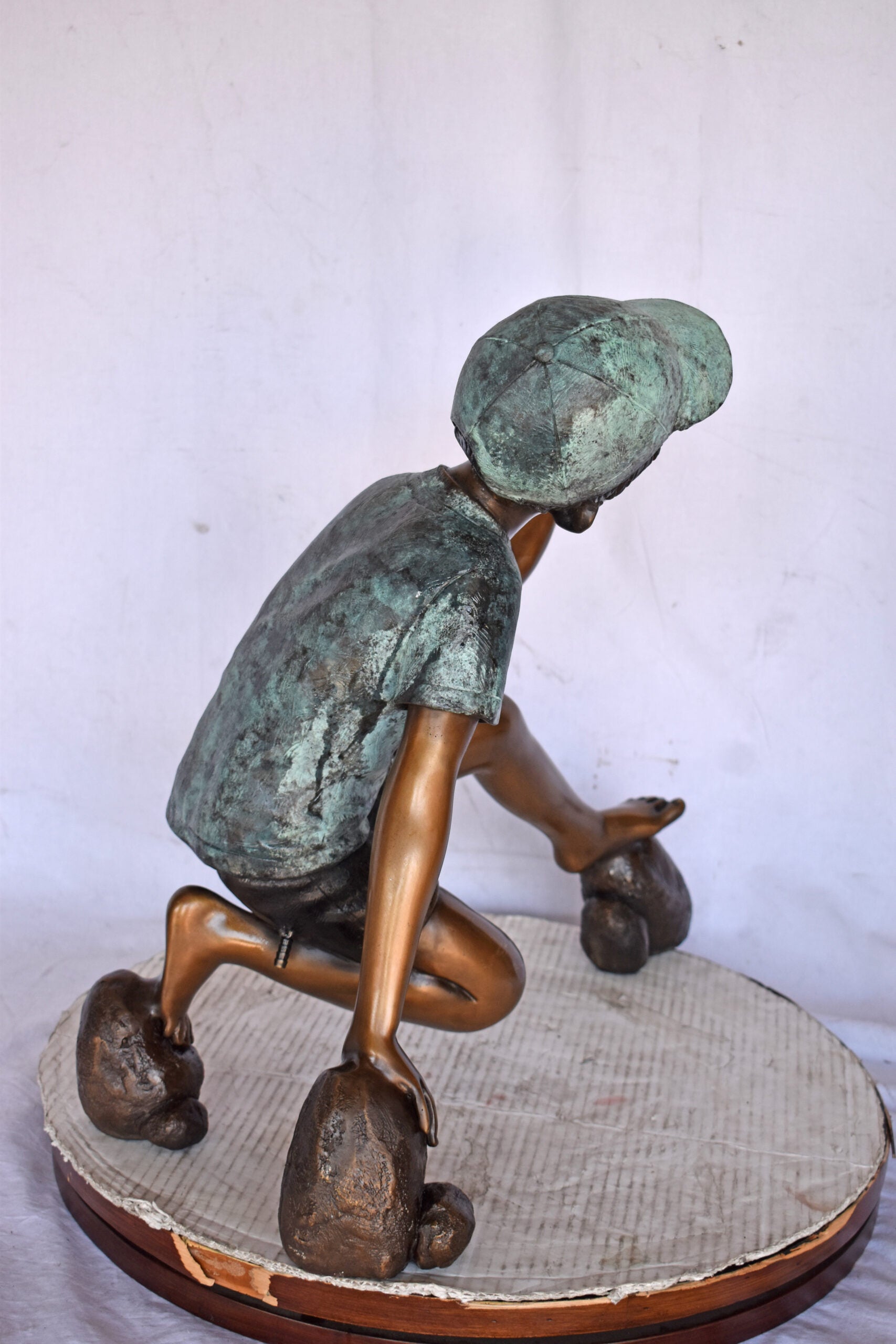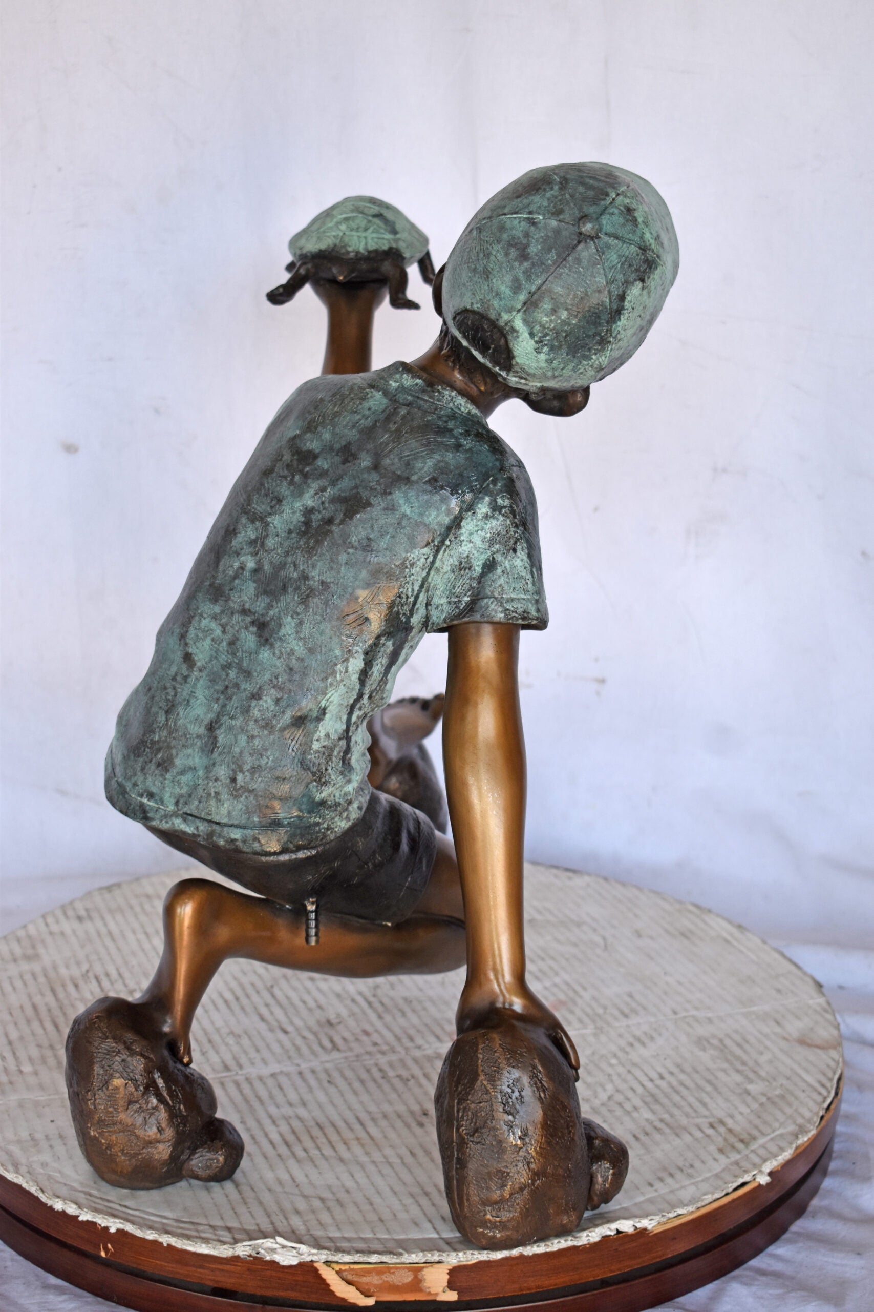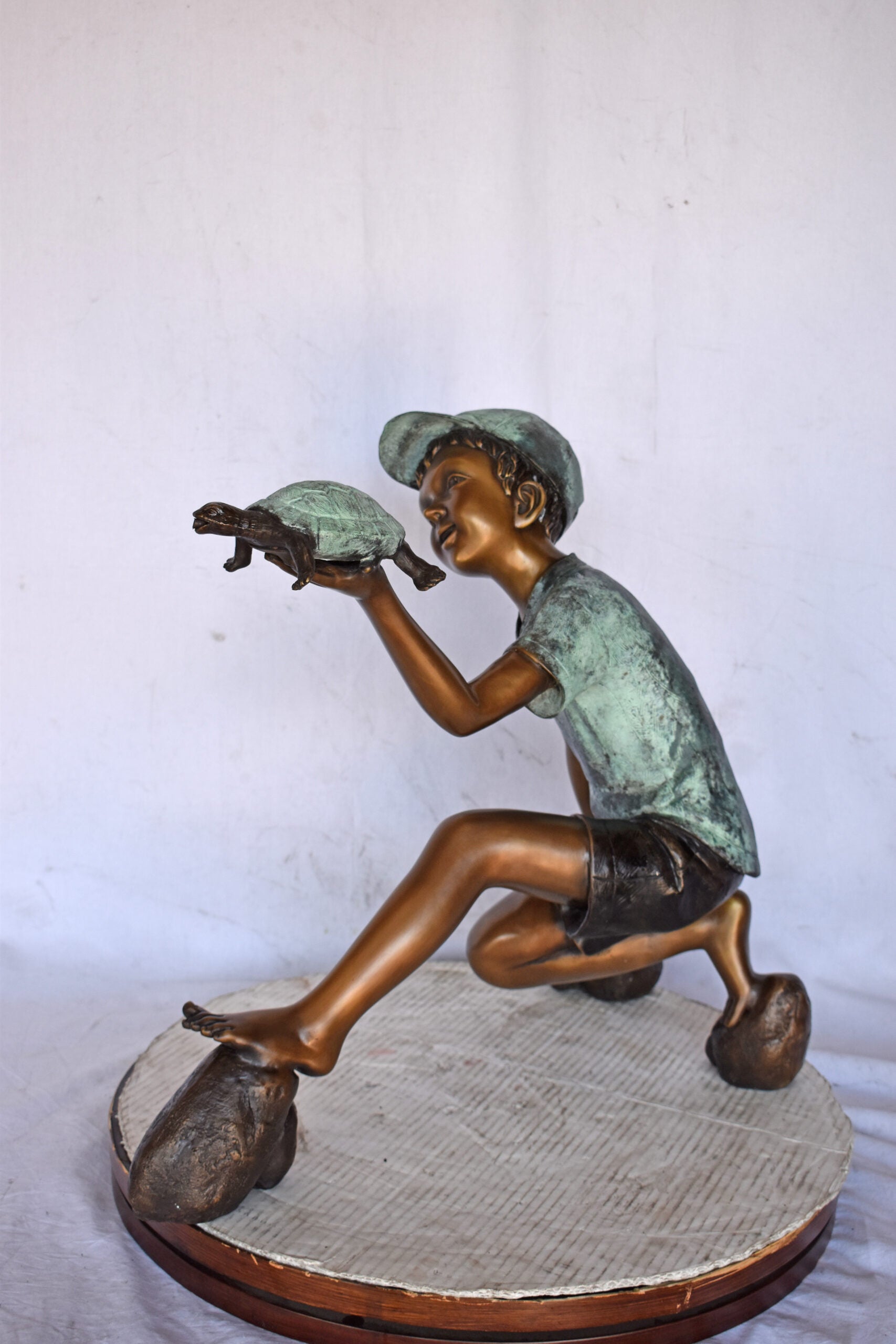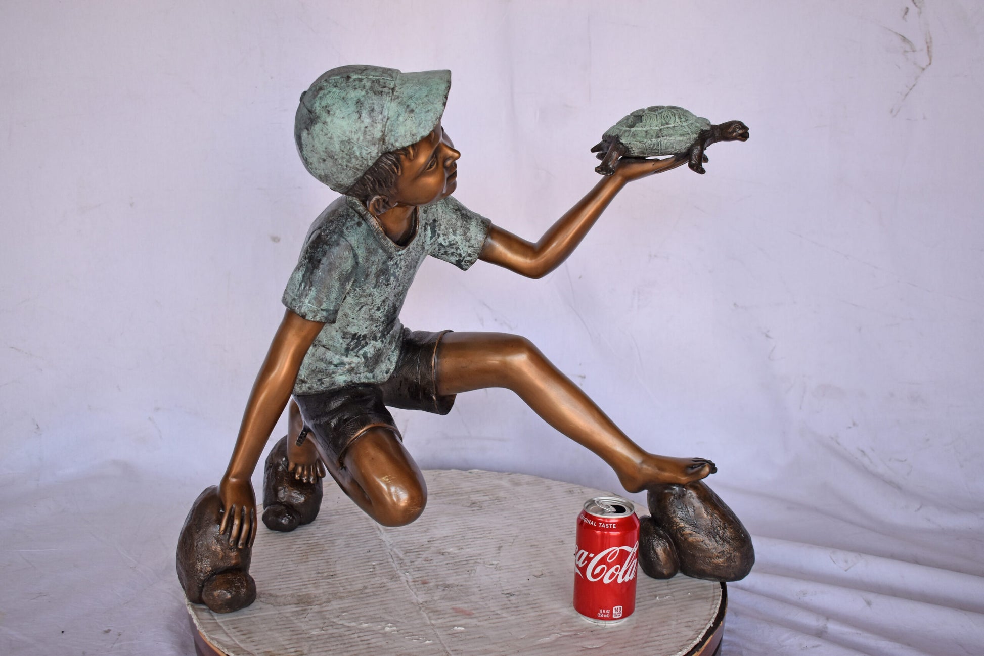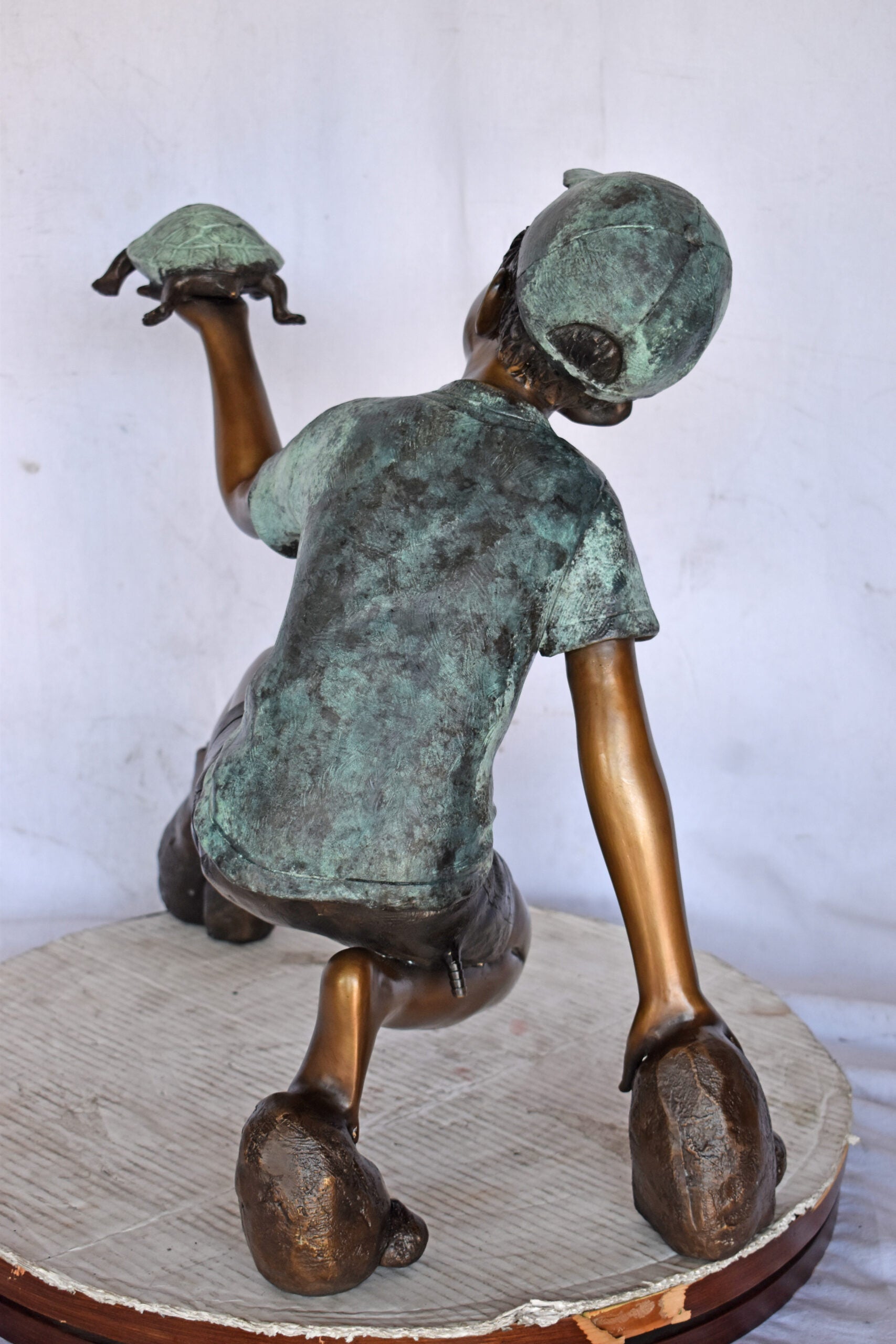 Adventurous Boy Holds a turtle bronze statue fountain-Size 22" x 11" x 23"H