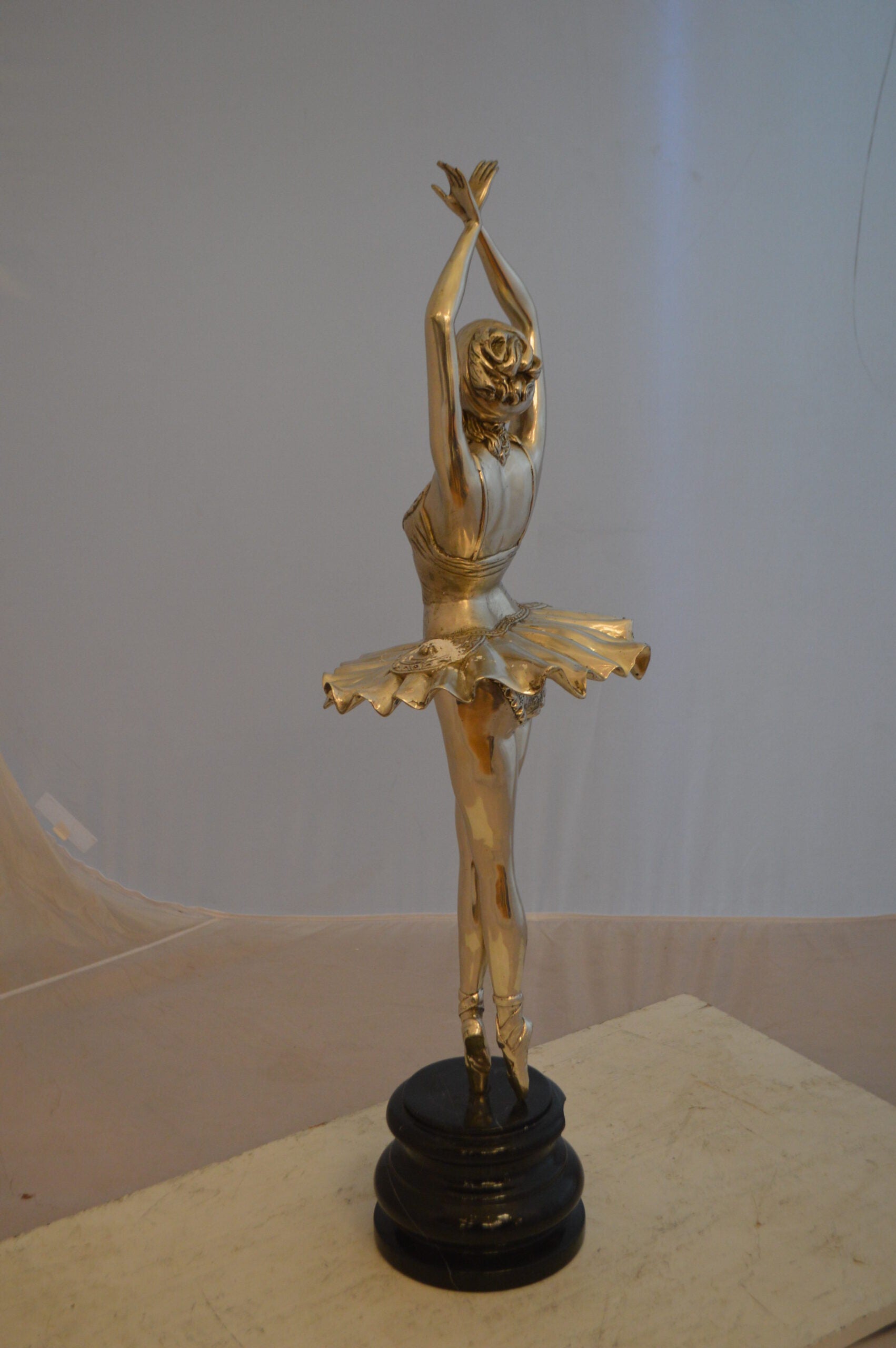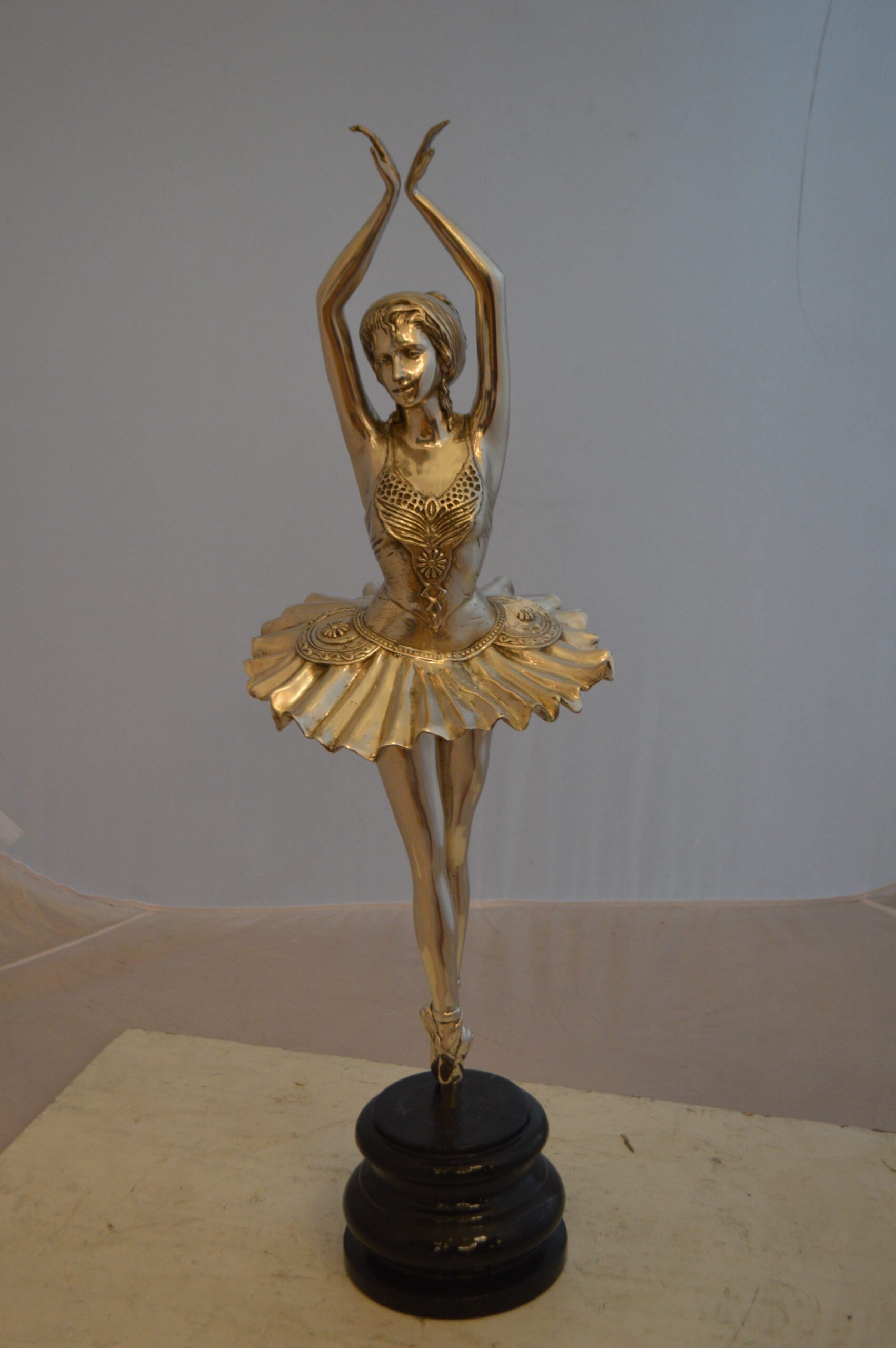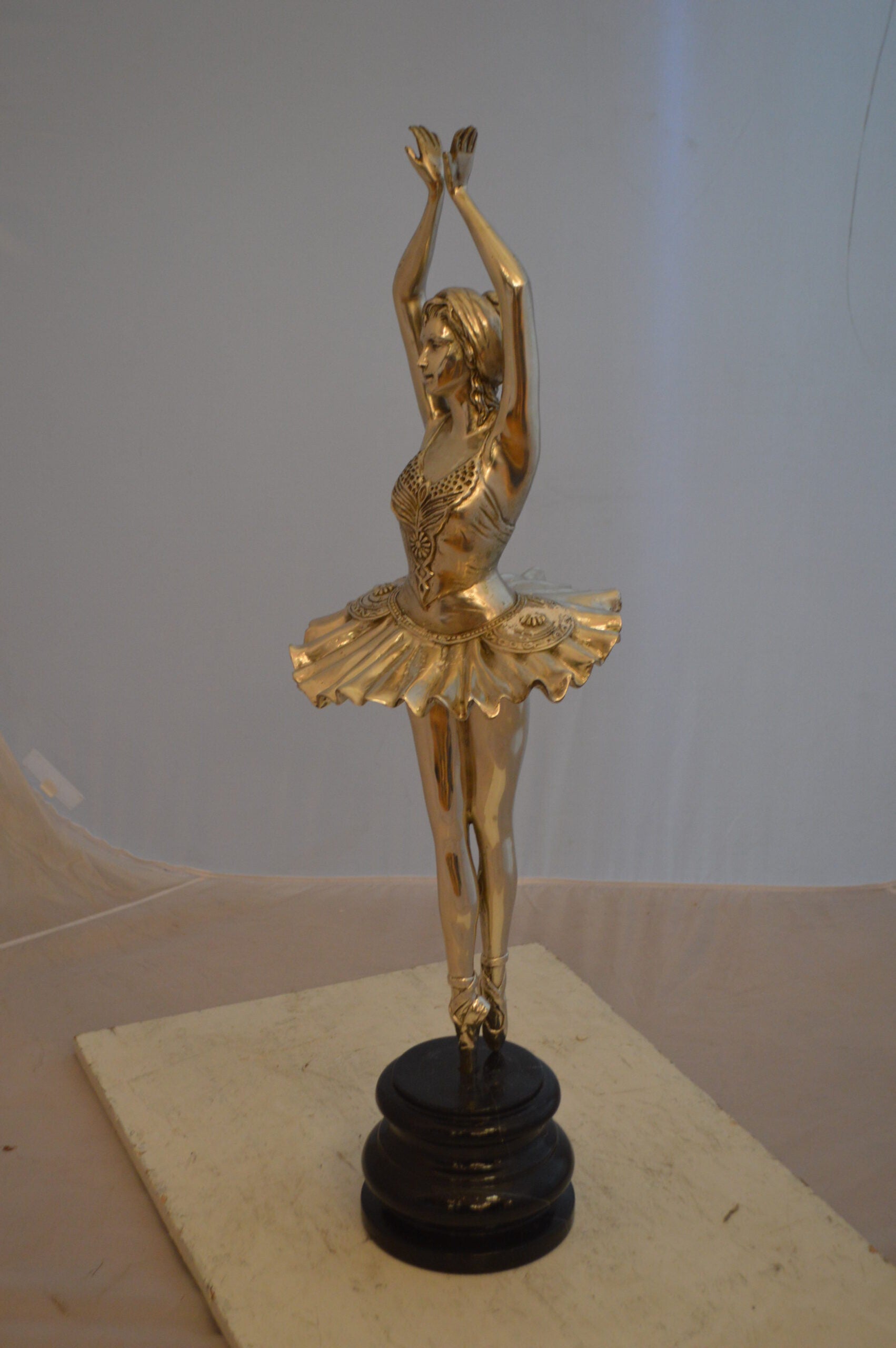 Ballerina Bronze Statue With Silver Finish - Size: 10"L x 10"W x 35"H.