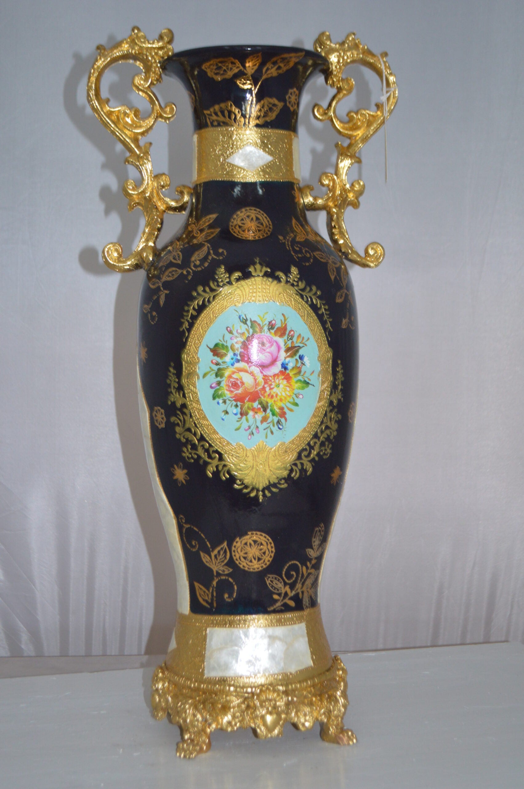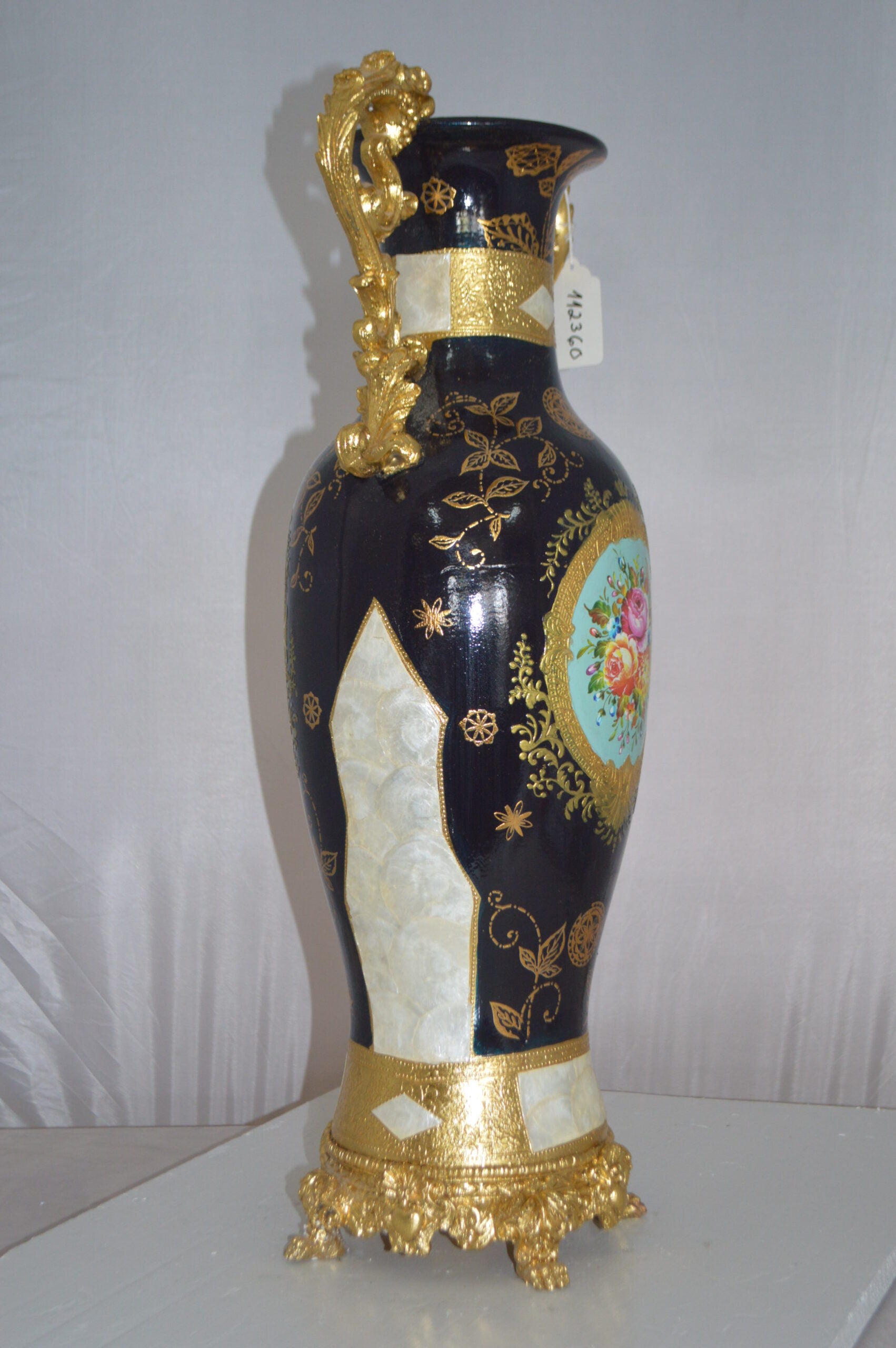 Decoration Vase Blue and Gold - Size: 13"L x 9"W x 28"H.