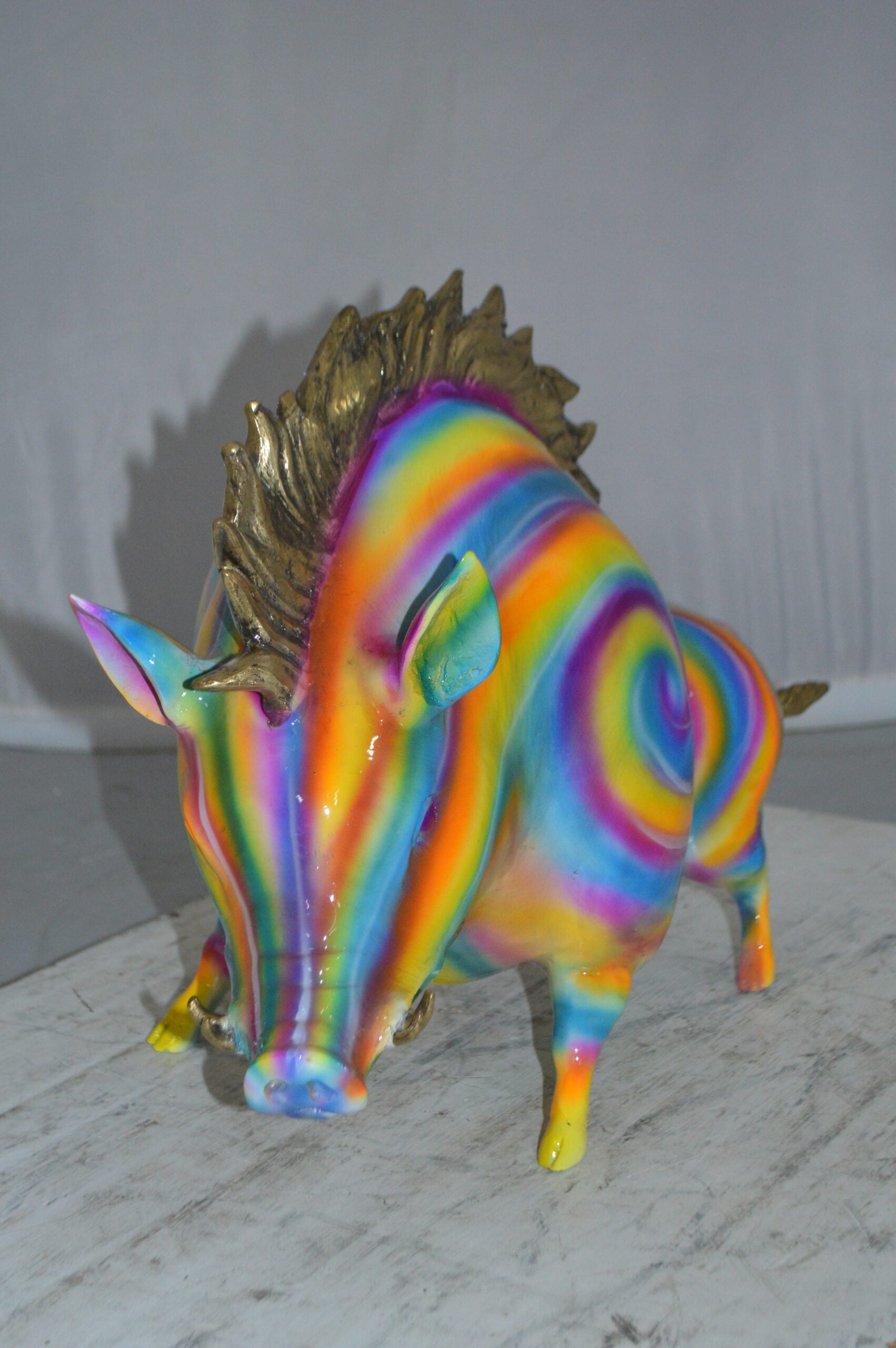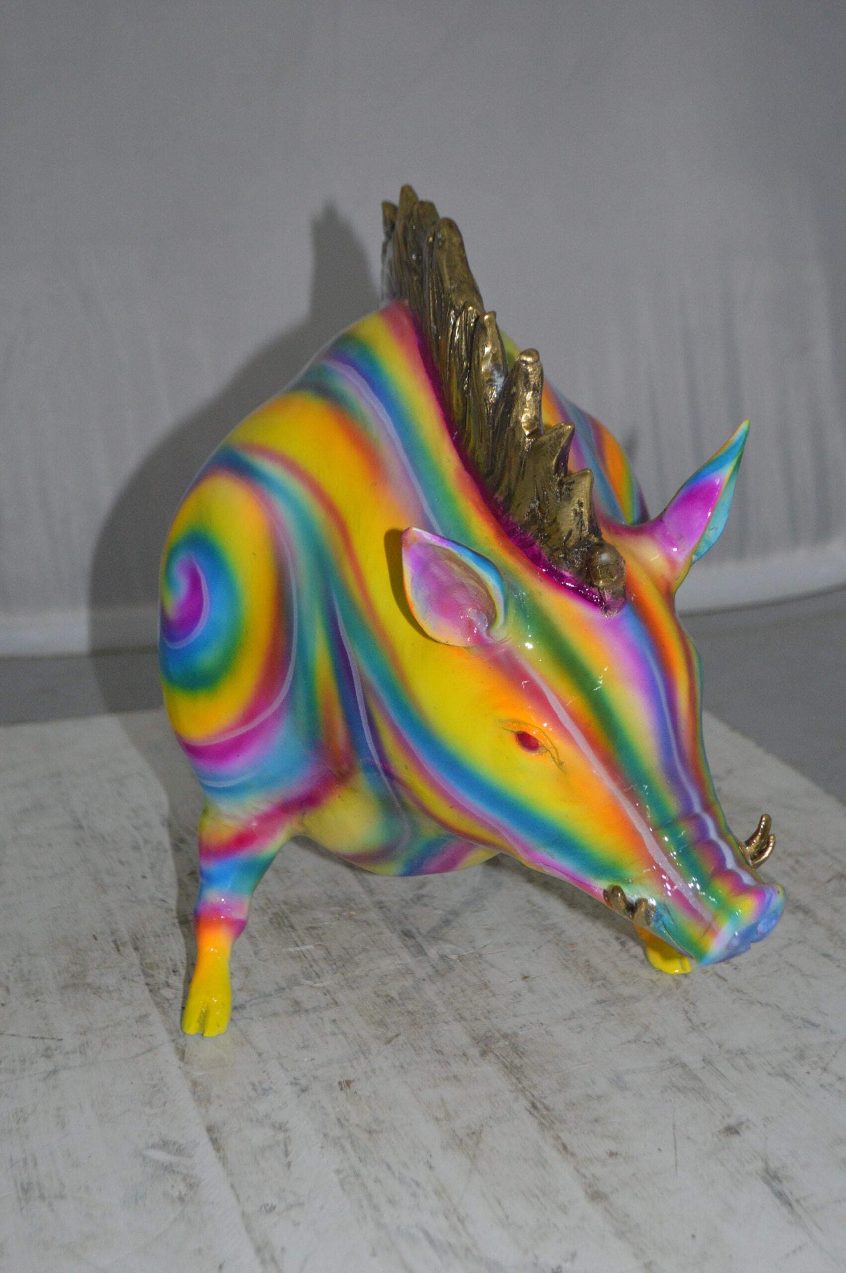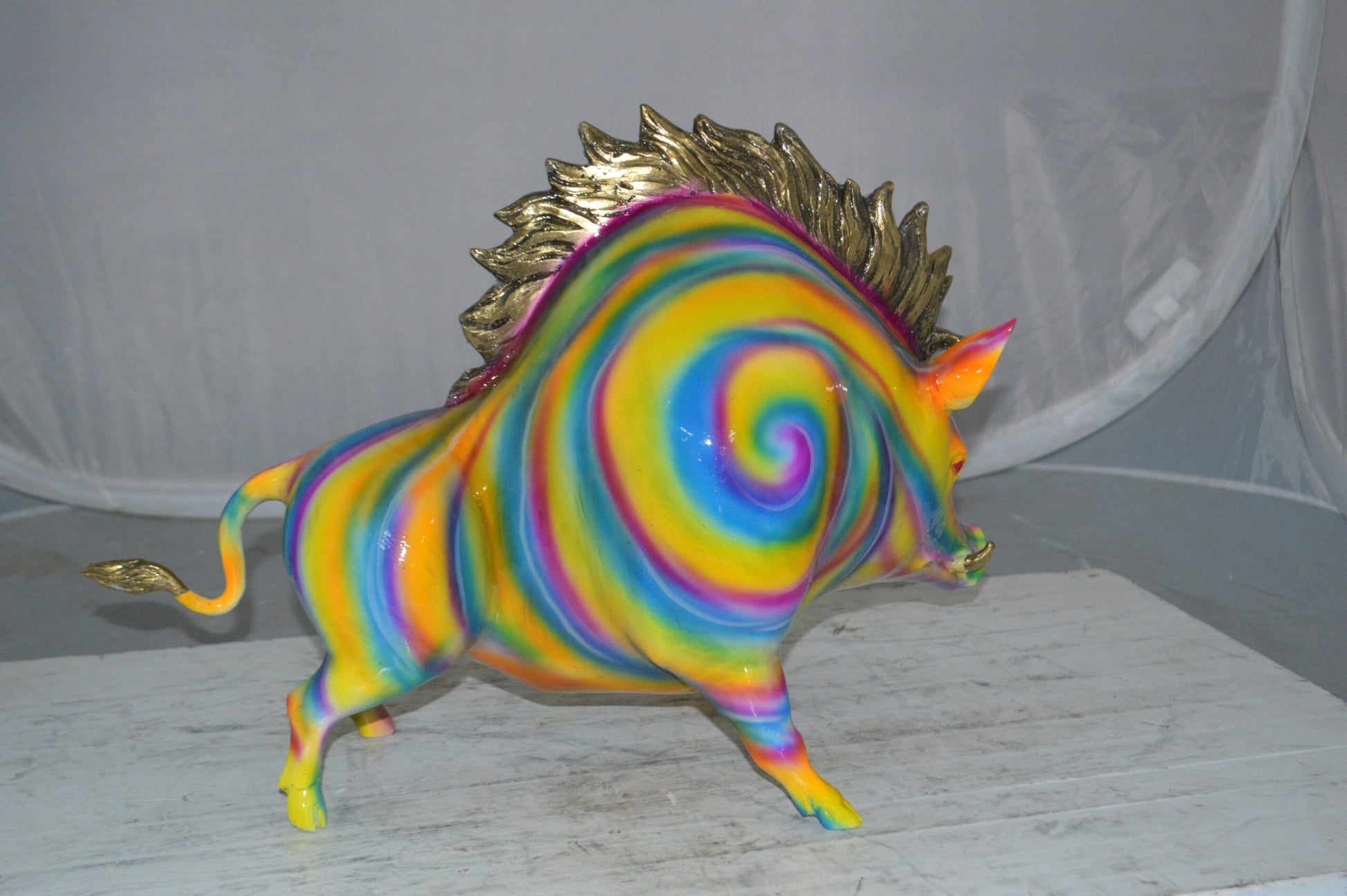 Decorate your home with this beautiful modern multi-colored Boar Bronze Statue. These decorative animals will become an extraordinary focal point to any kitchen, Livingroom or patio! We sell a whole line of this style of modern art. You can be sure they will be a conversation starter and the topic of much appraised comments in your home. Size: 22"L x 9"W x 15"H. Weight is: 15Lb