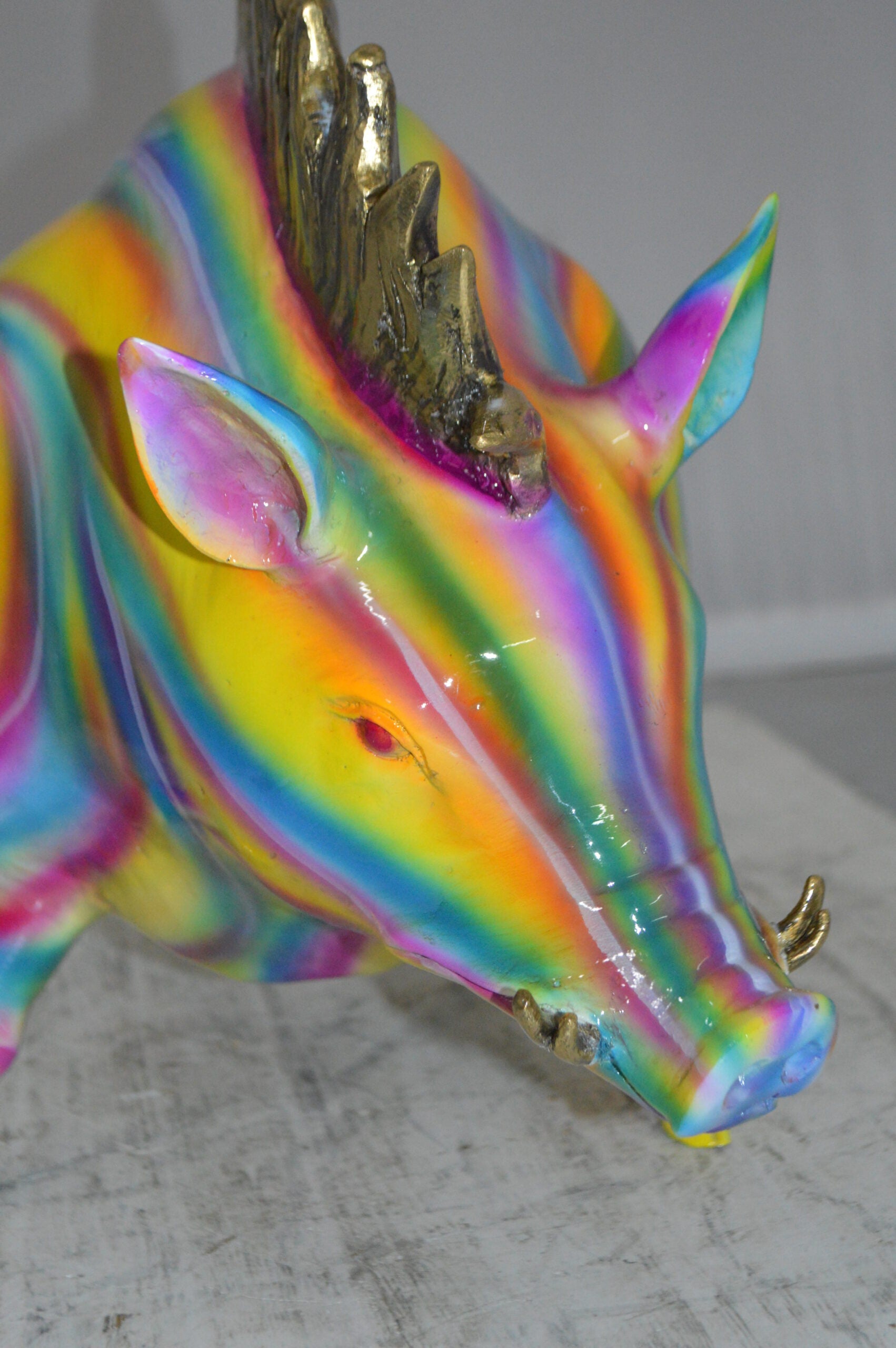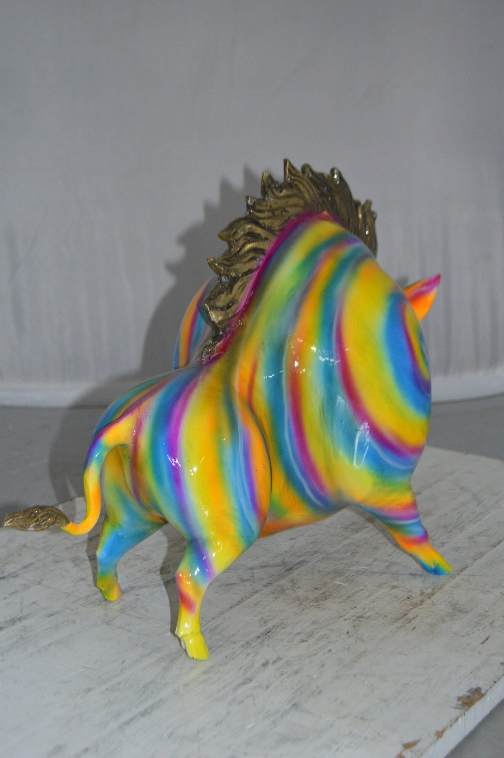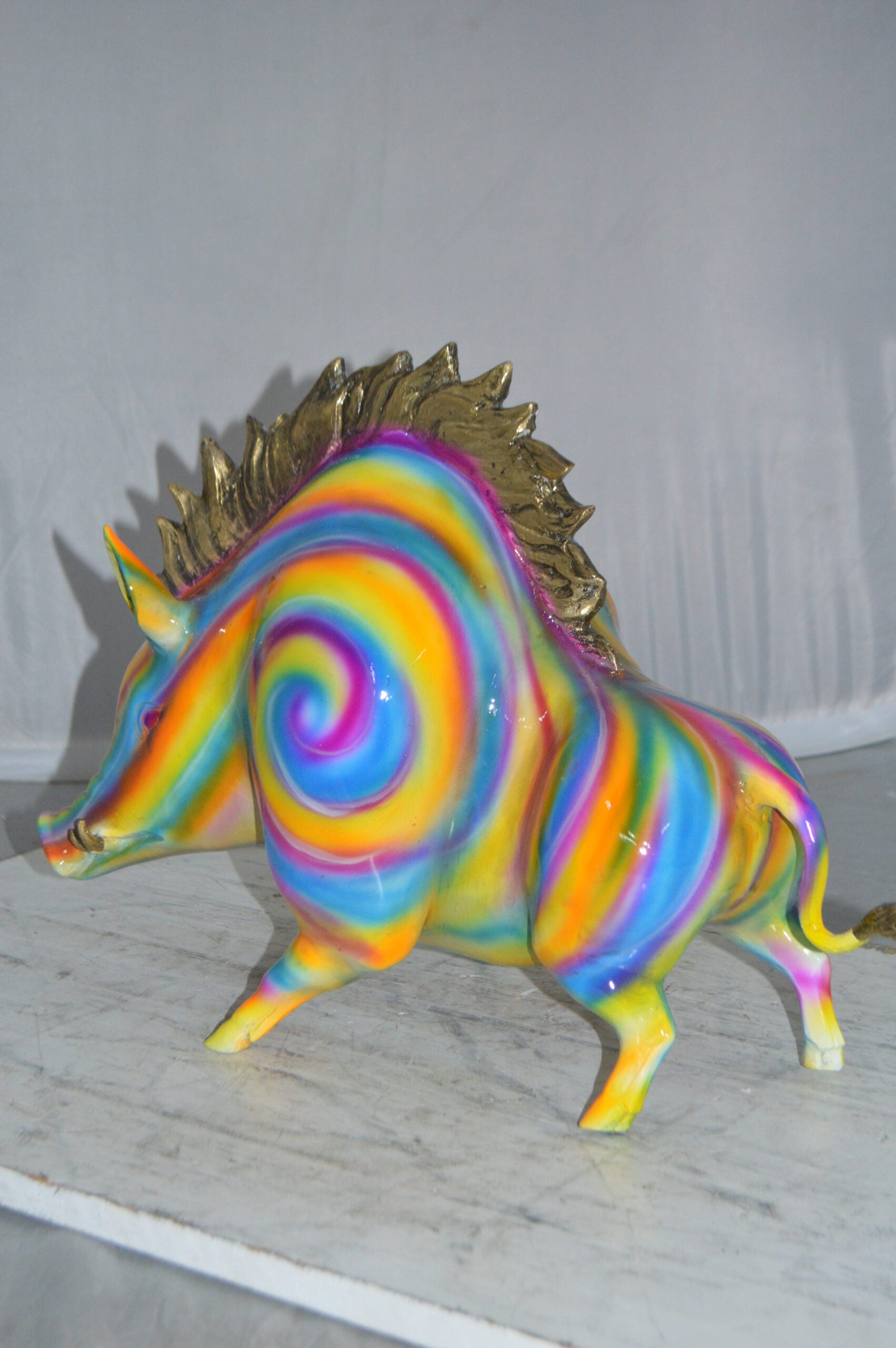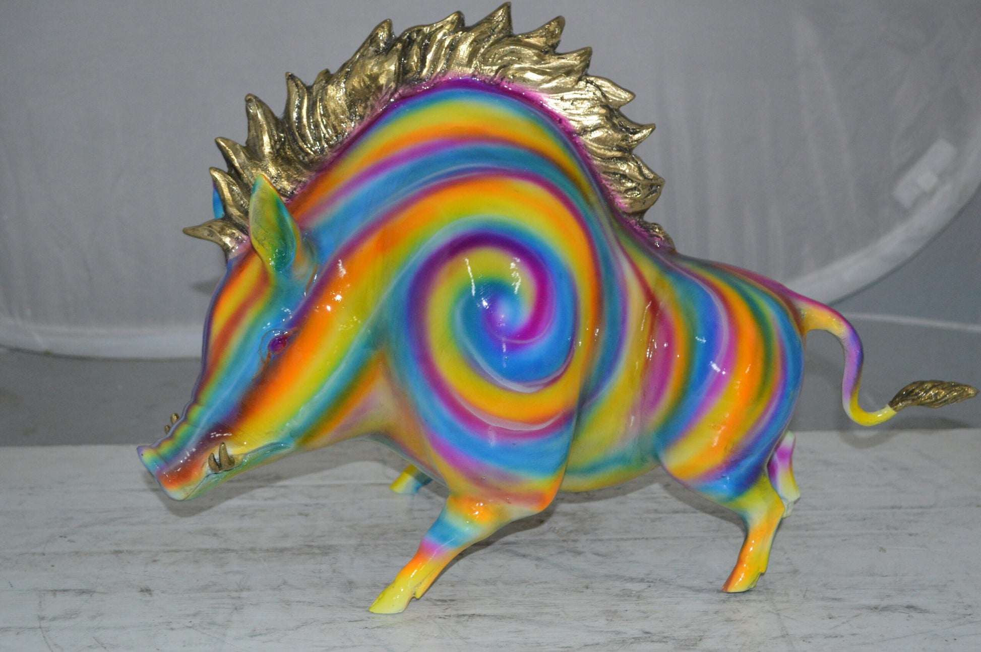 Decorate your home with this beautiful modern multi-colored Boar Bronze Statue. These decorative animals will become an extraordinary focal point to any kitchen, Livingroom or patio! We sell a whole line of this style of modern art. You can be sure they will be a conversation starter and the topic of much appraised comments in your home. Size: 22"L x 9"W x 15"H. Weight is: 15Lb