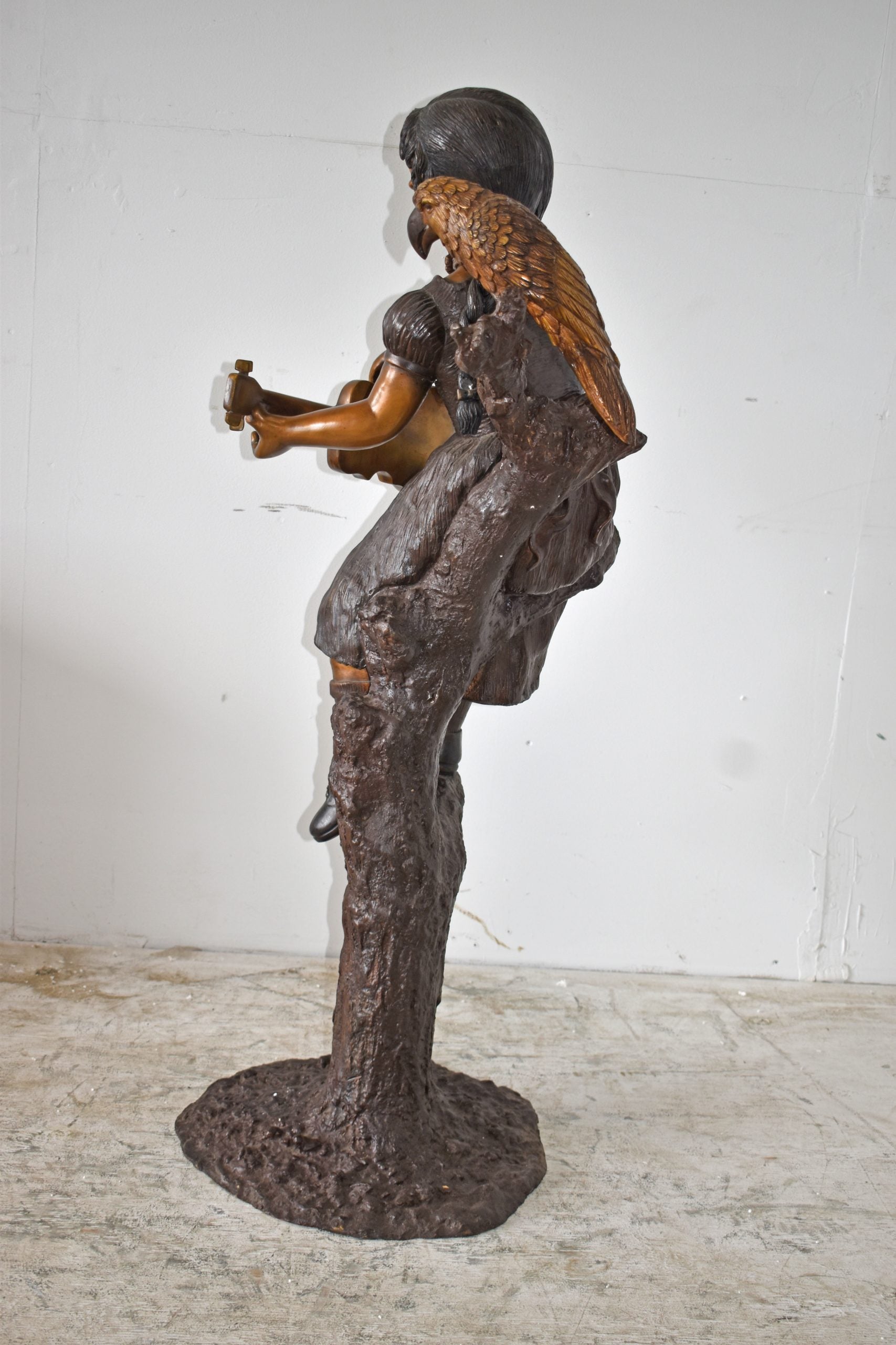 Girl on a Tree Playing the Ukulele with a Parrot Bronze Statue 25" x 23" x 50"H