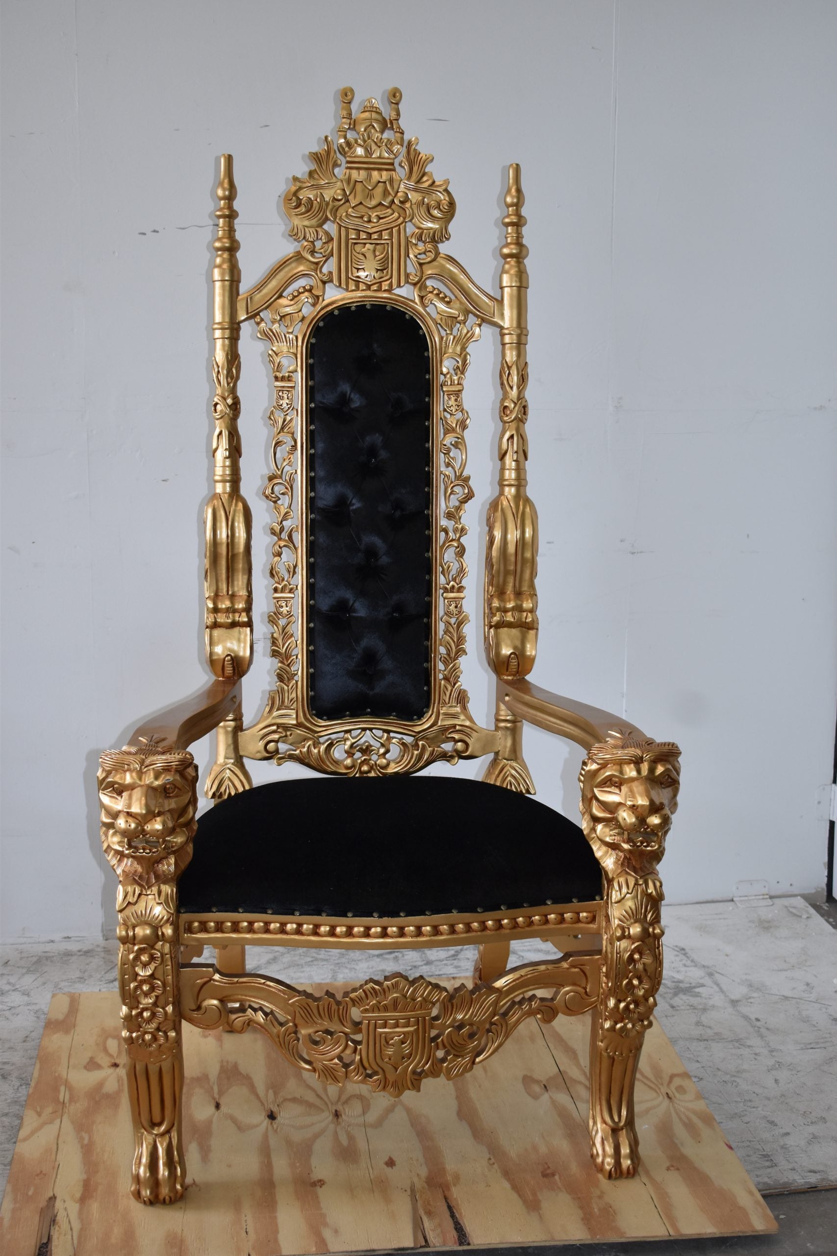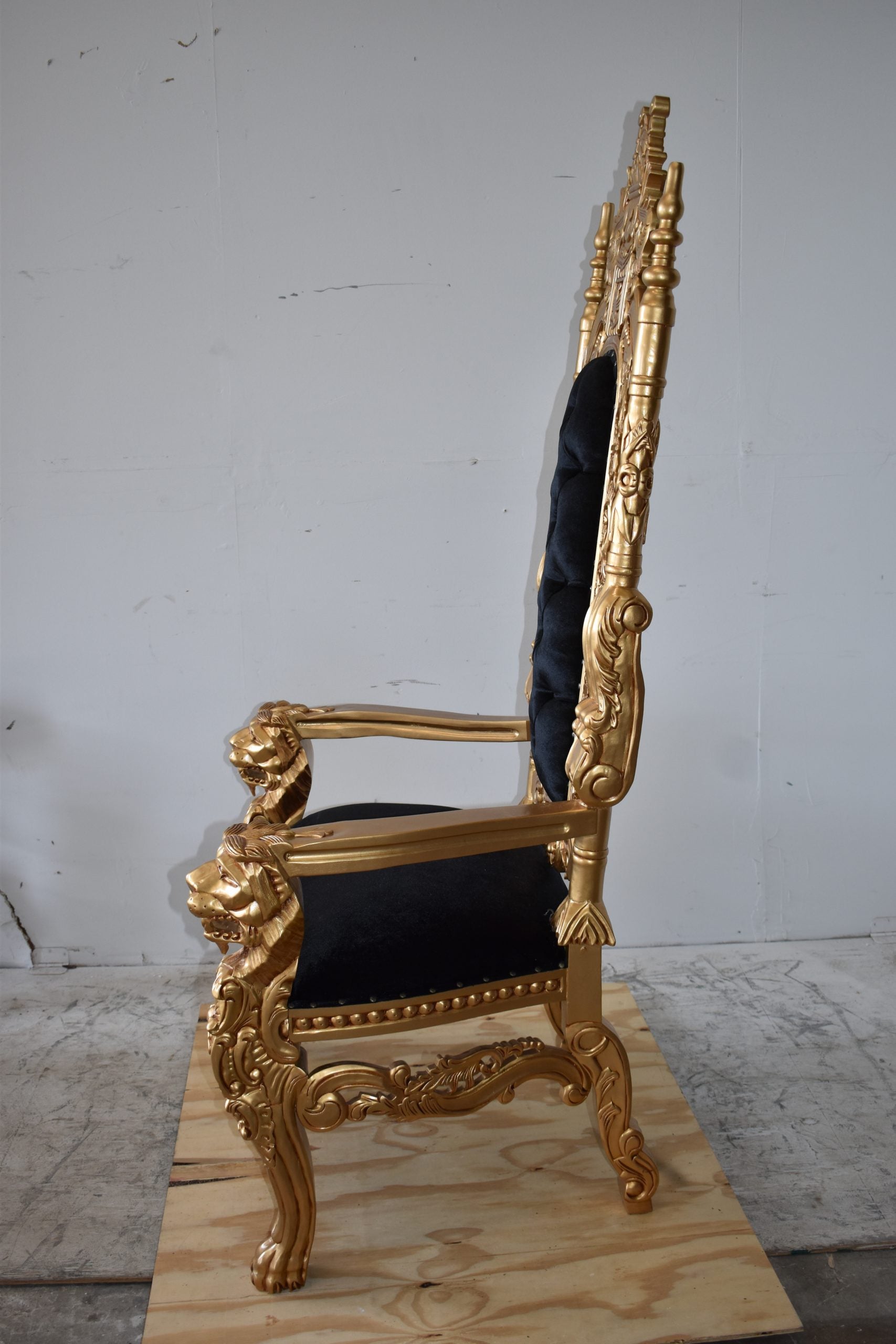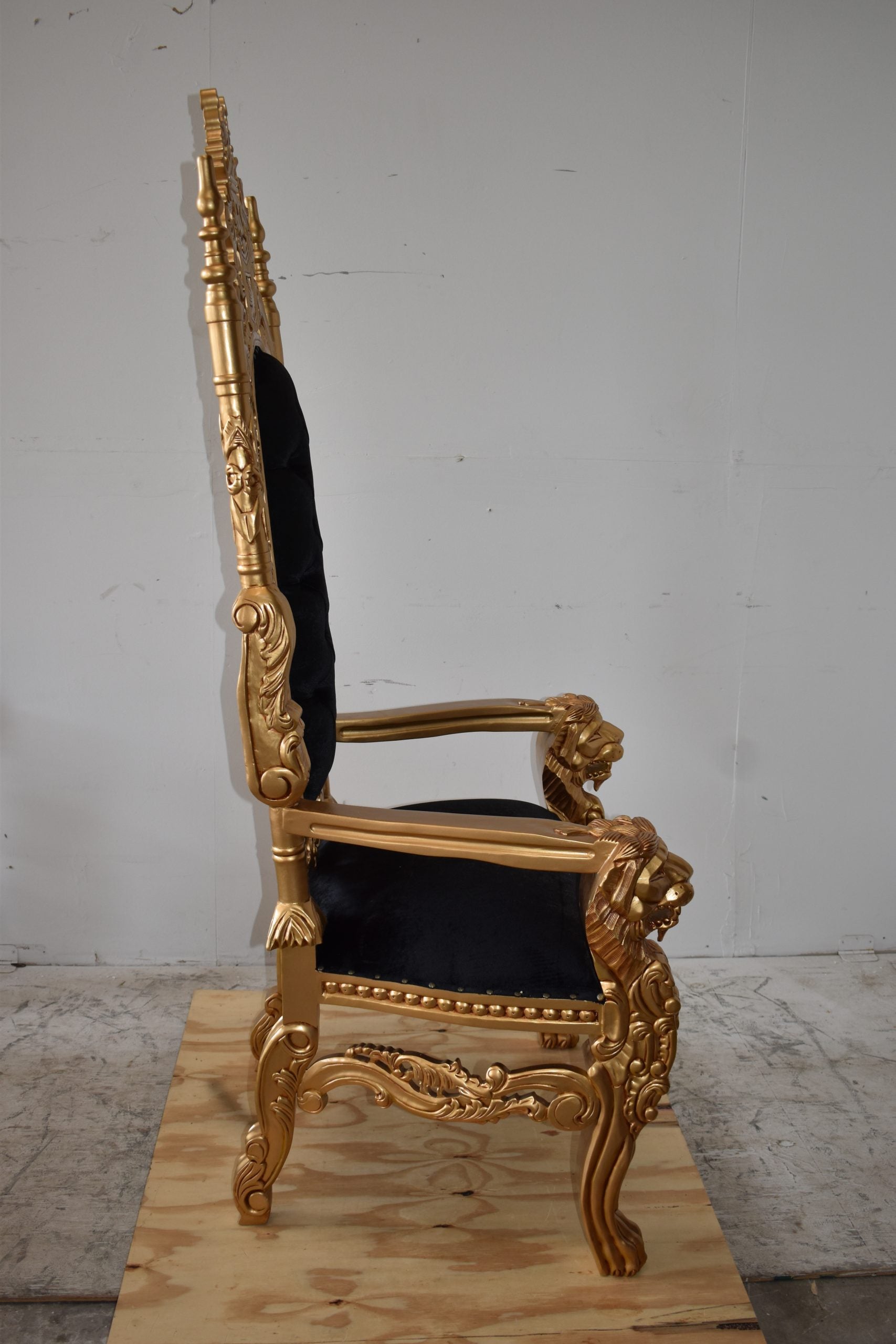 Gold and Black Fabric Lion Chair Size: 70" x 36" x 26"H