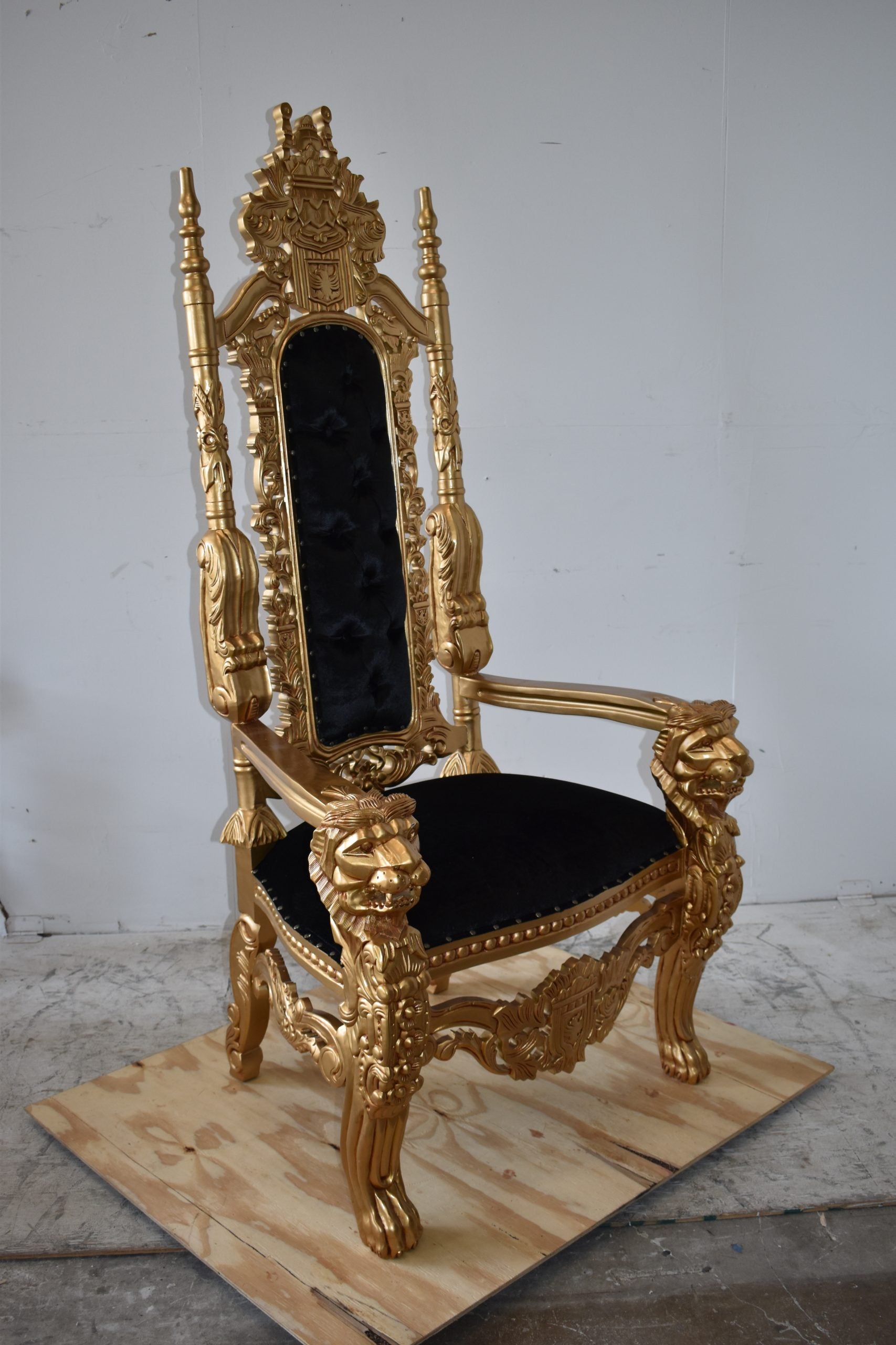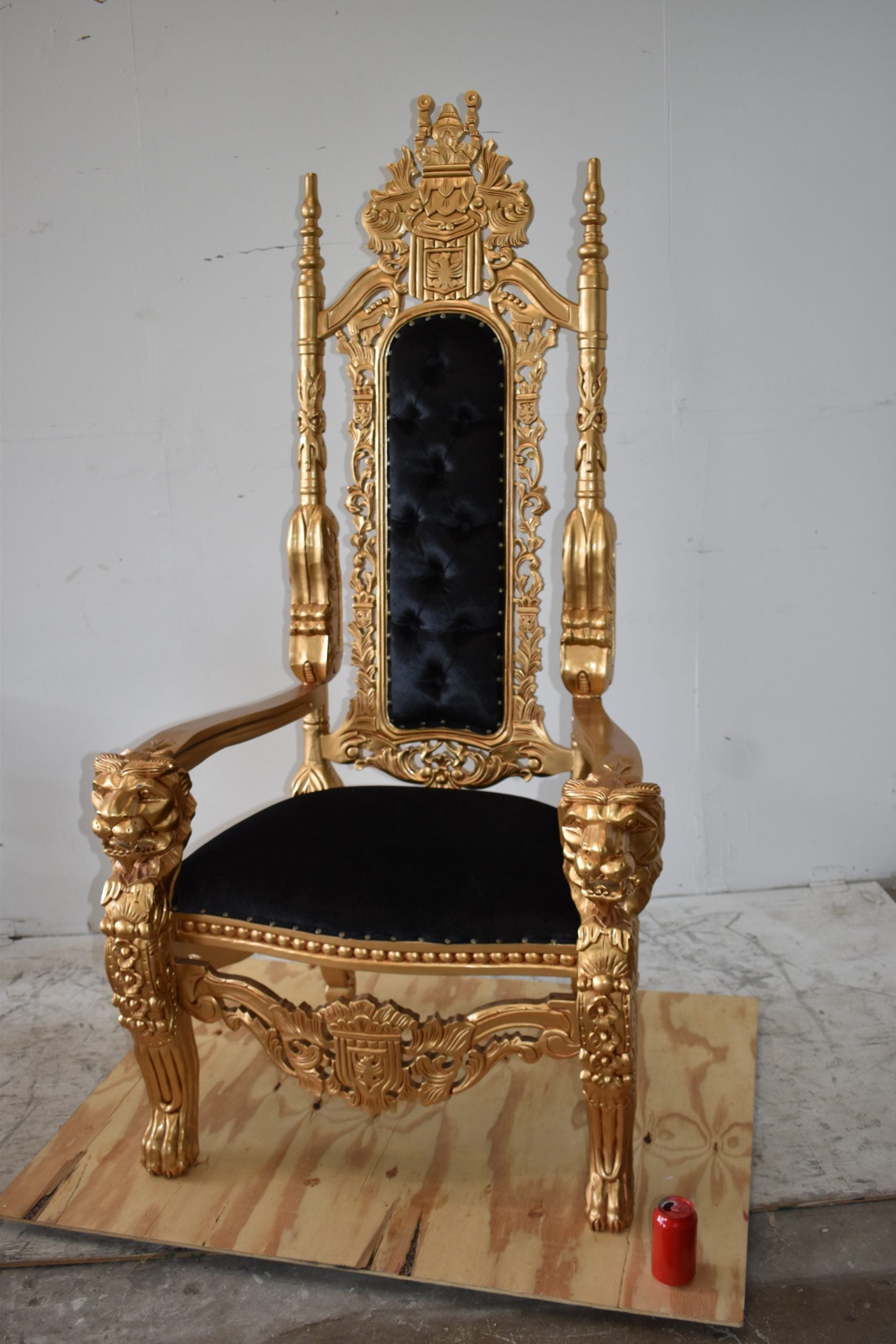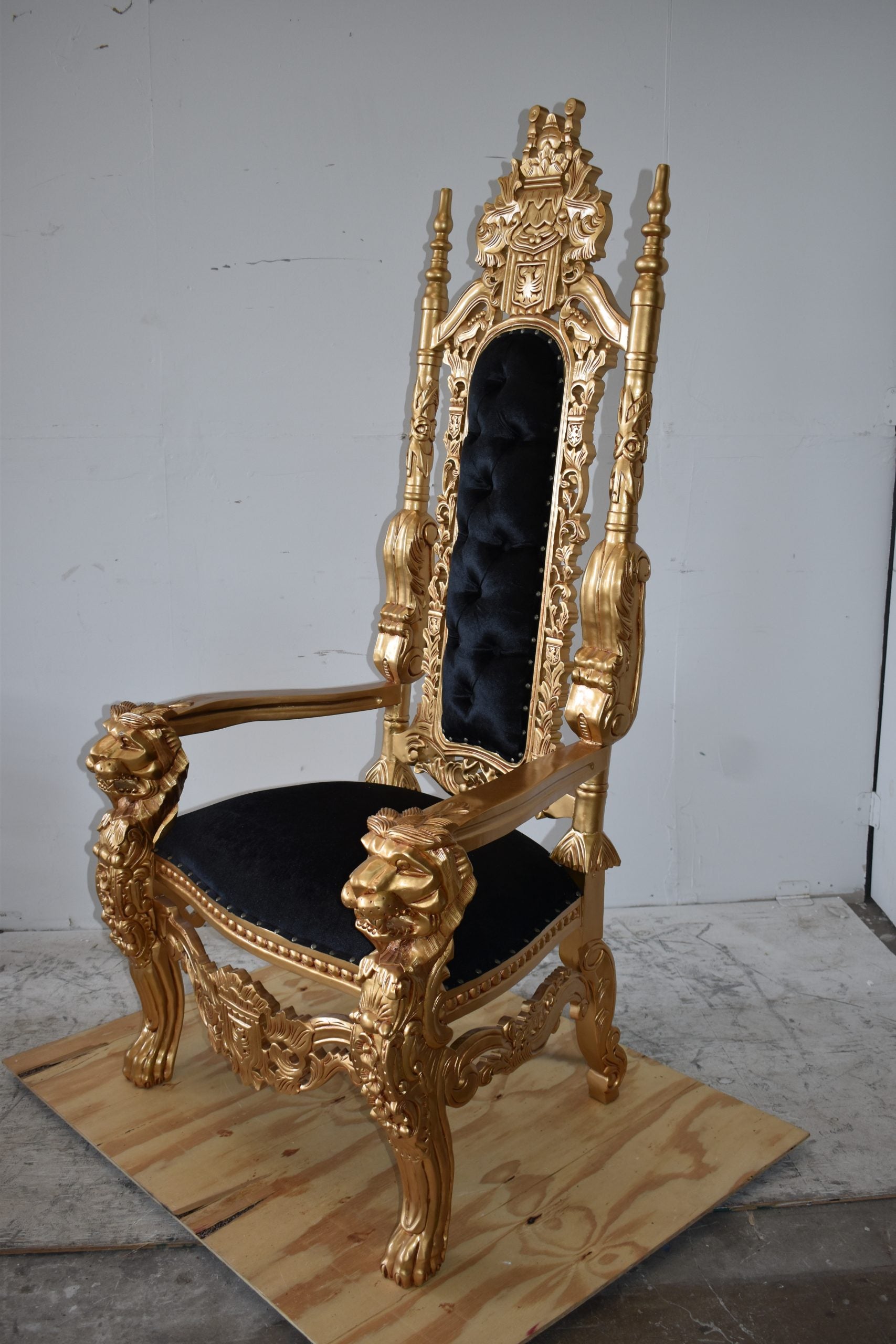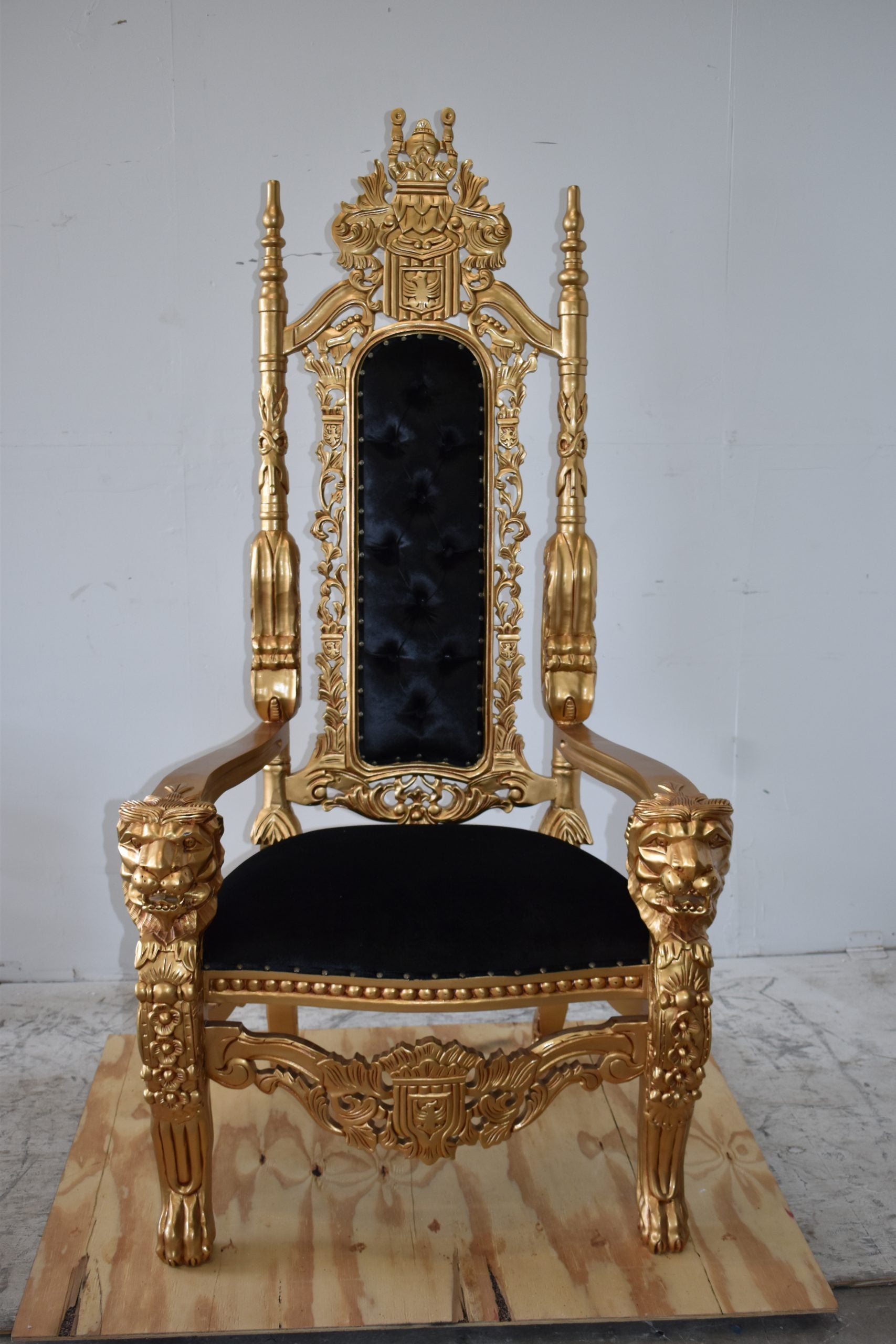 Gold and Black Fabric Lion Chair Size: 70" x 36" x 26"H