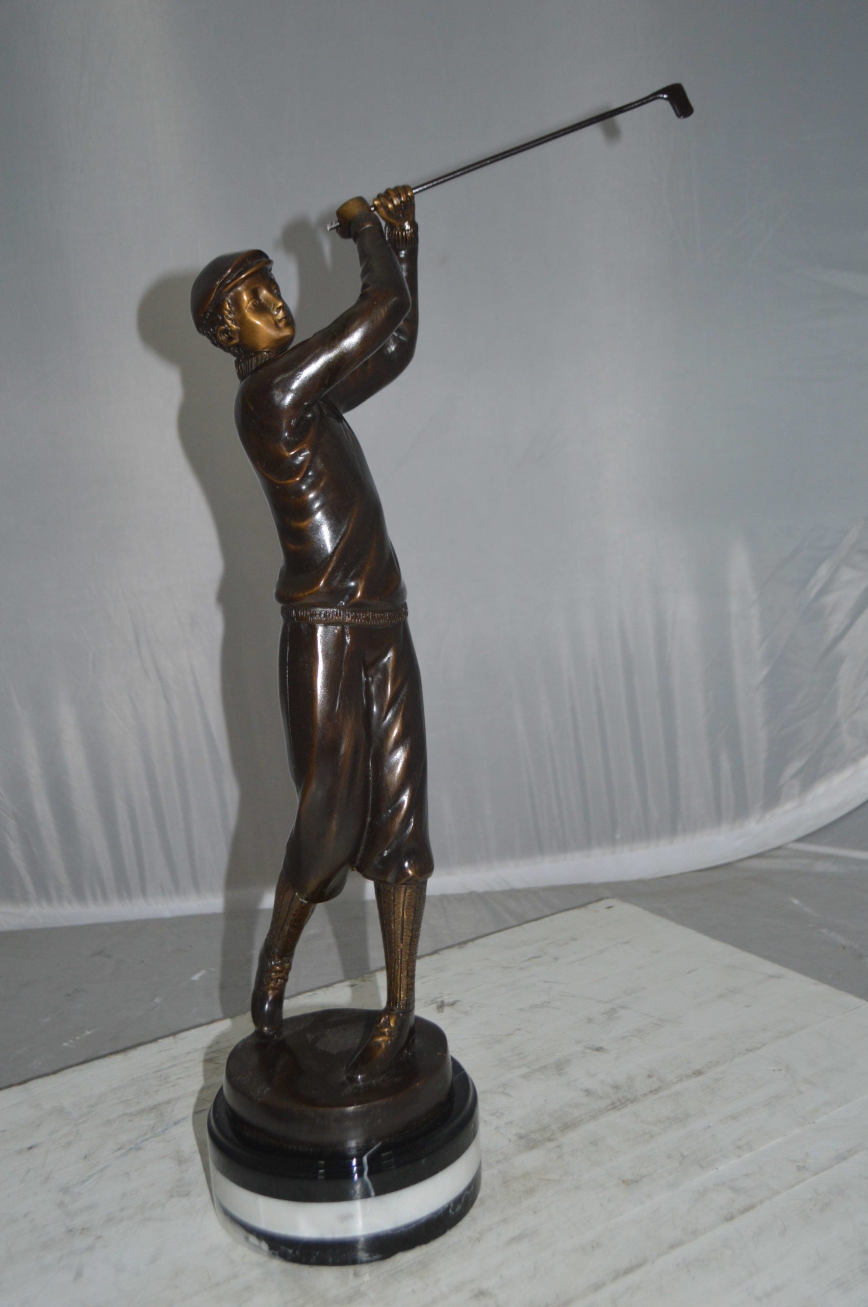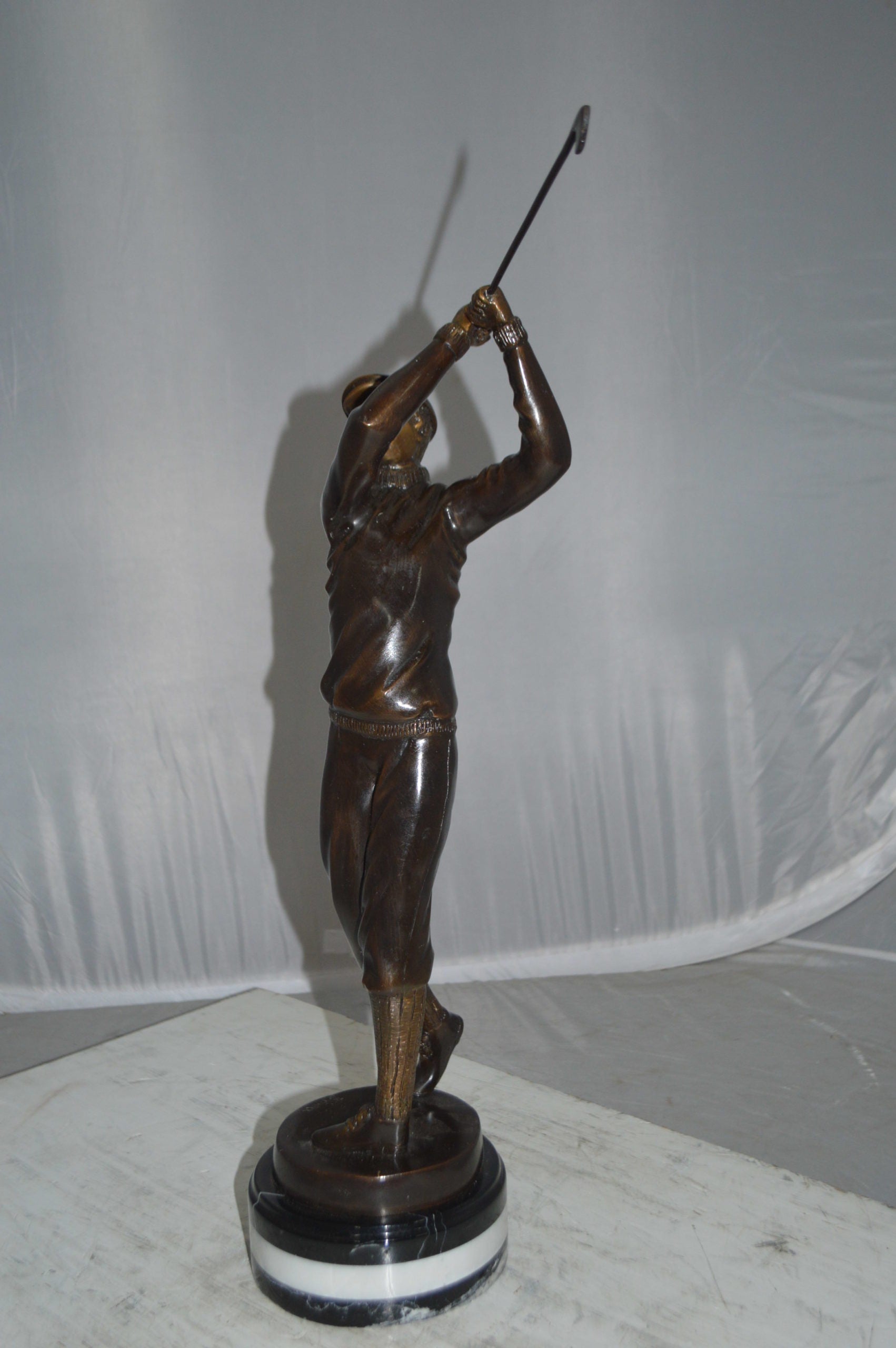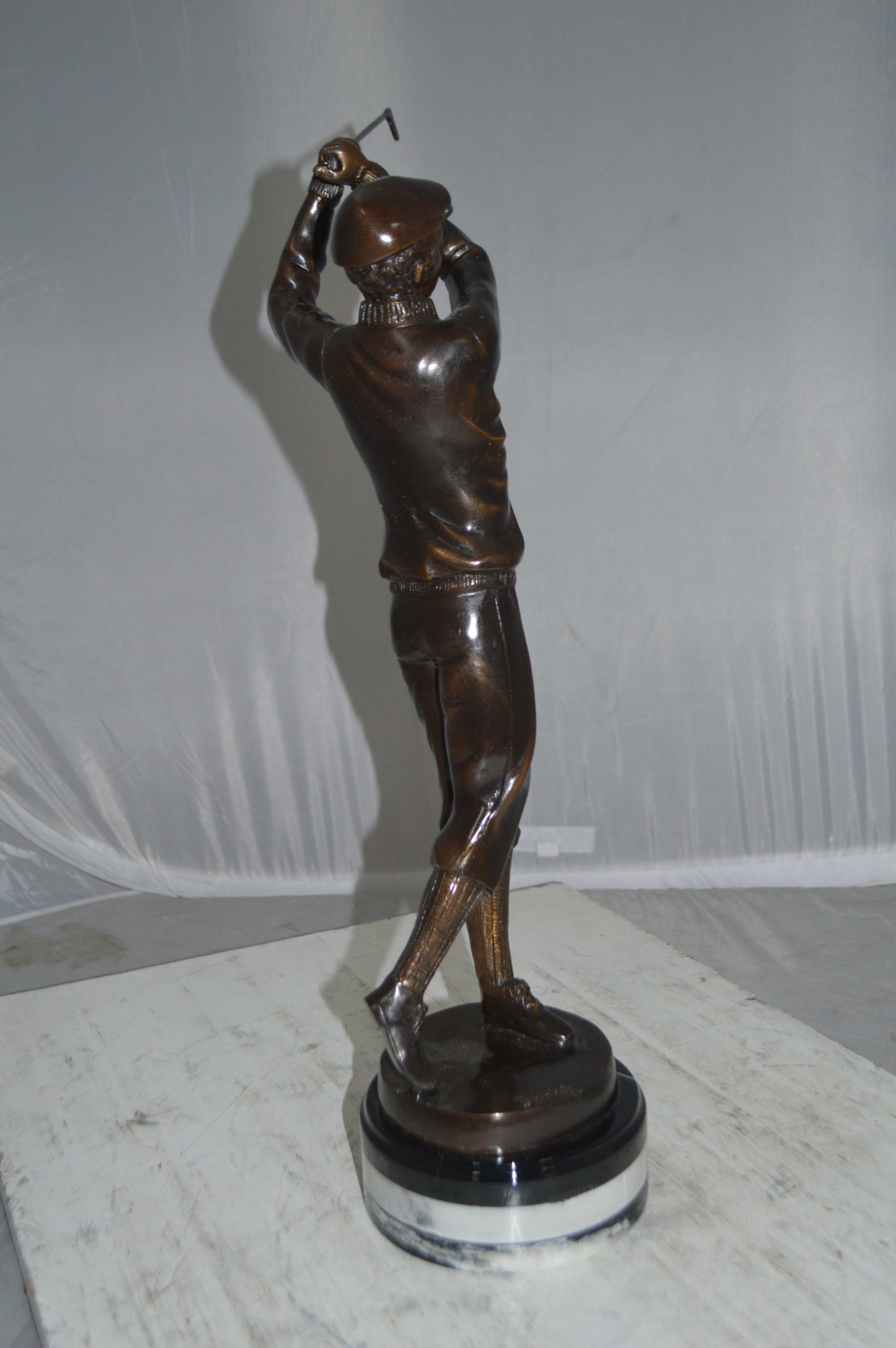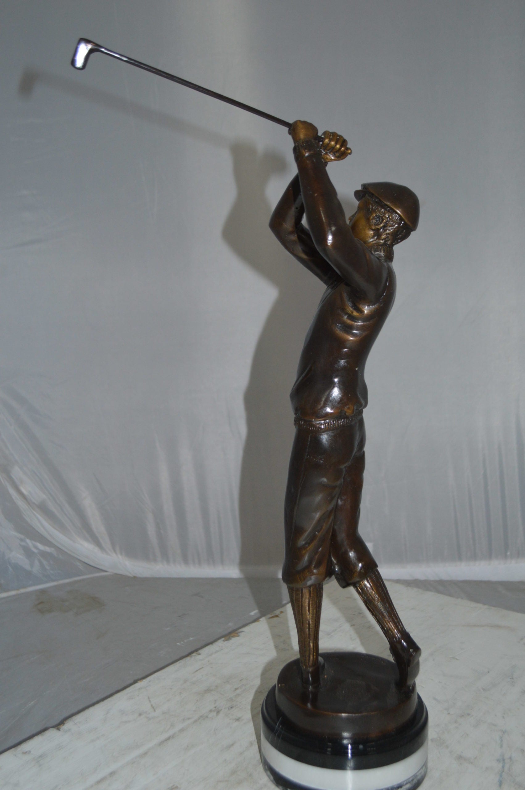 Golfer on Marble Bronze Statue - Size: 8"L x 8"W x 22"H.
