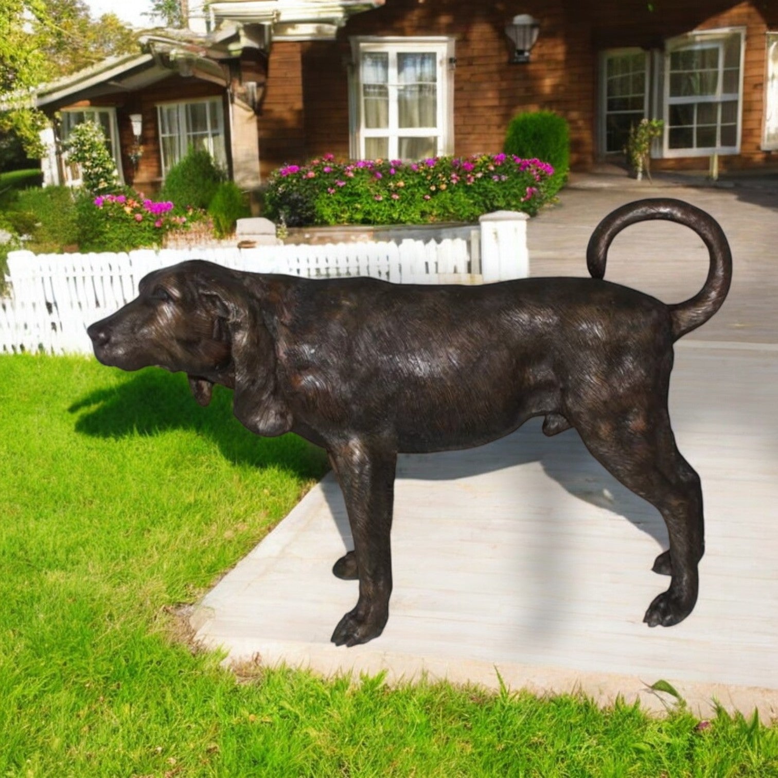This life-like Large Hound Dog Bronze Sculpture produced by the “Lost Wax” casting method, measures 38 inches in length and would be an eye catching accent for any park or garden or Livingroom. A great dog gift for dog fans. Size: 38"L x 12"W x 26"H. Weight is: 49Lb