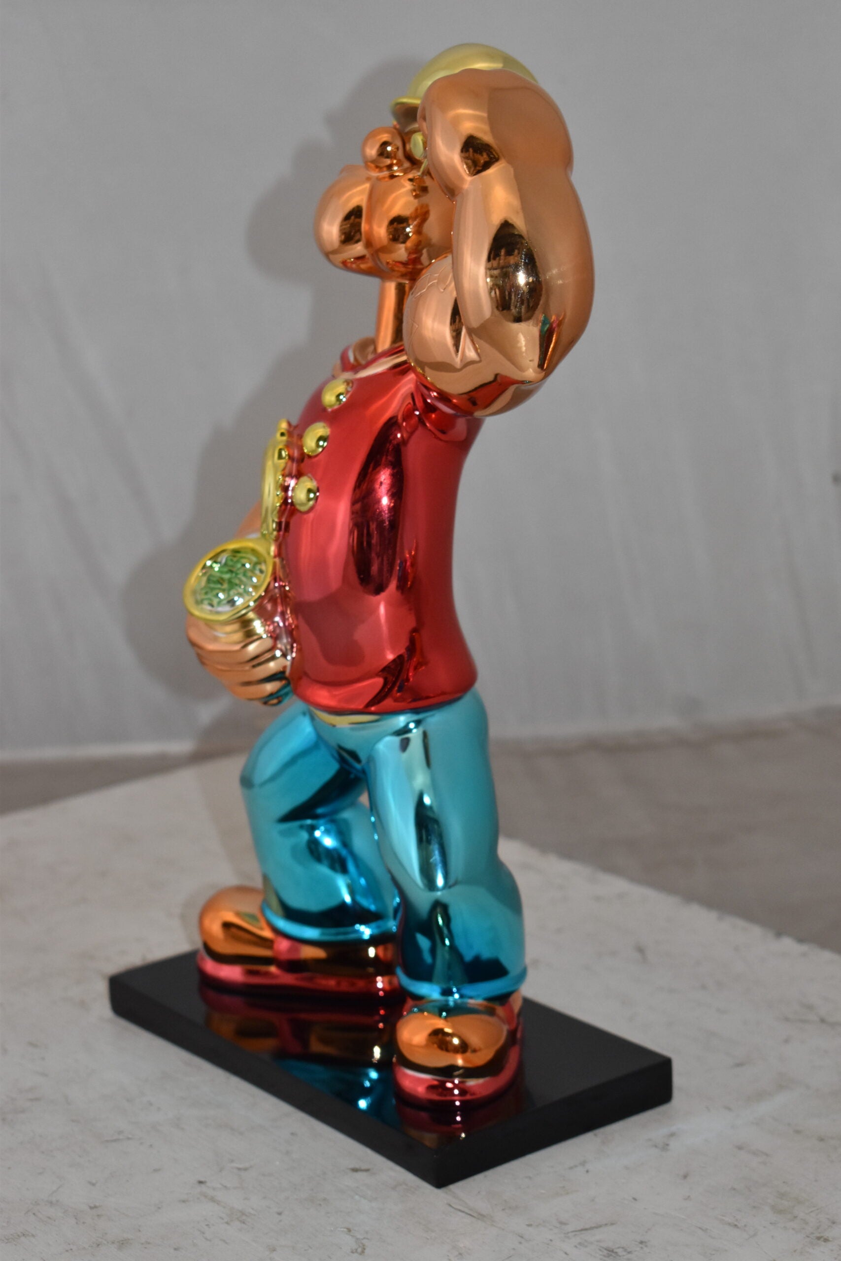 Bring this playful resin statue into your next home or room to display vibrancy and humor to your guests. This fictional and iconic character is not only detailed with a red sailor top, but also shows emotion in both his facial features and stance. It is sure to be admired by your guests and brighten any room. Size: 11"L x 6"W x 17"H. Weight is: 11Lb