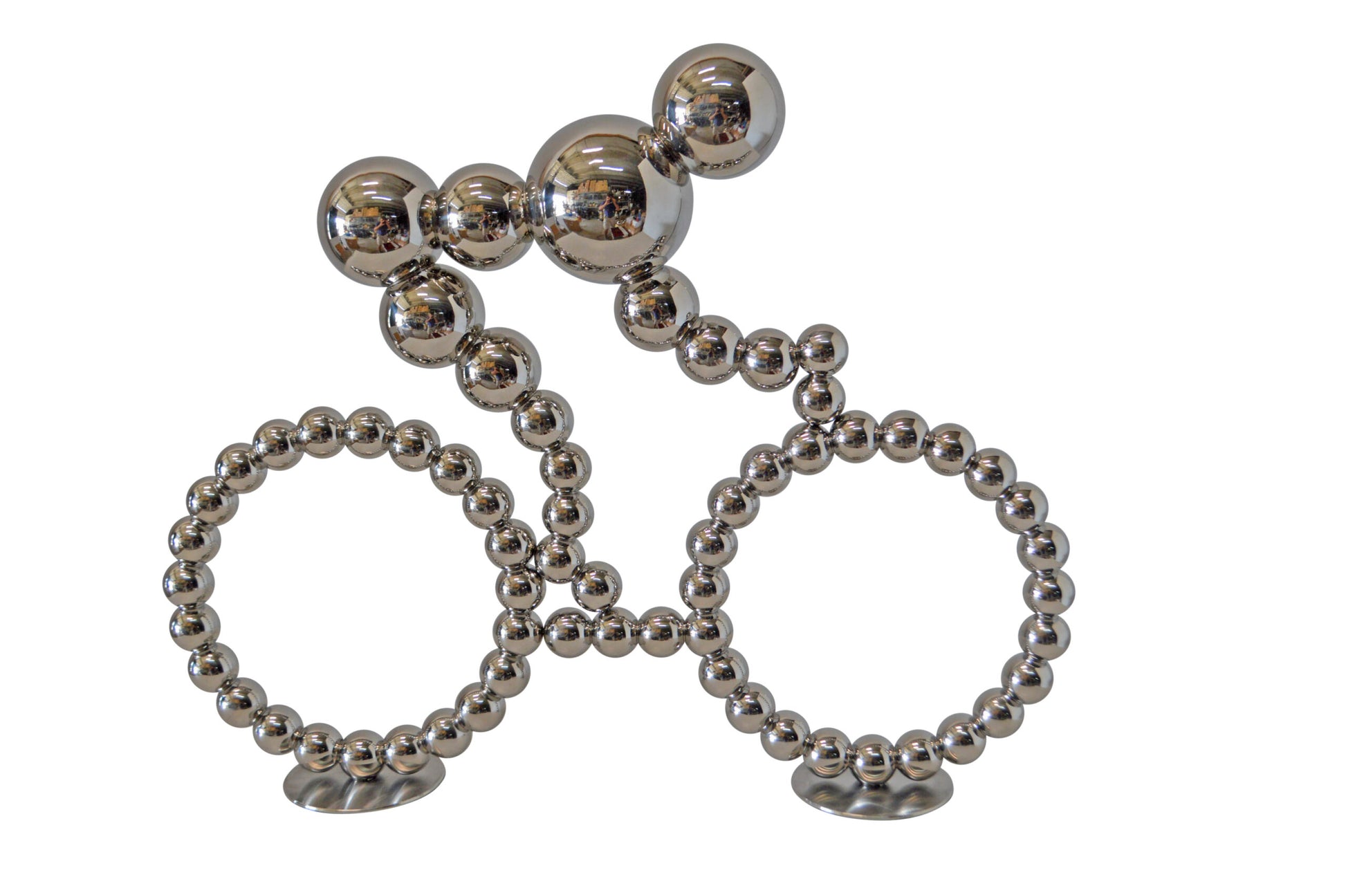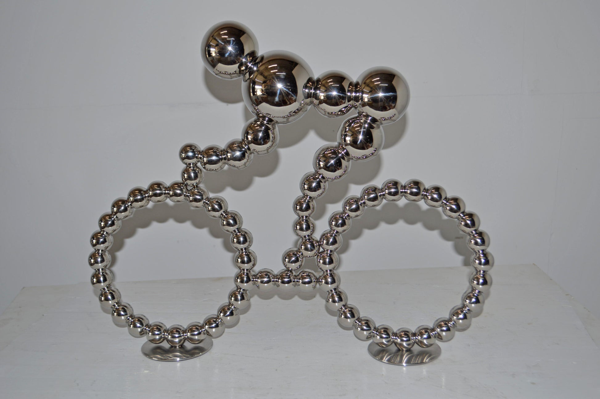 Modern Art Rider on His Bicycle Chrome Statue - Size: 22"L x 4"W x 17"H.